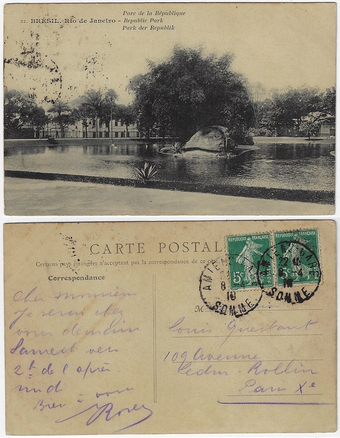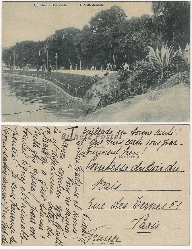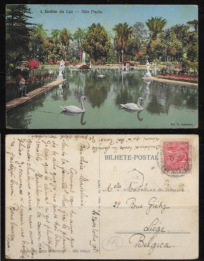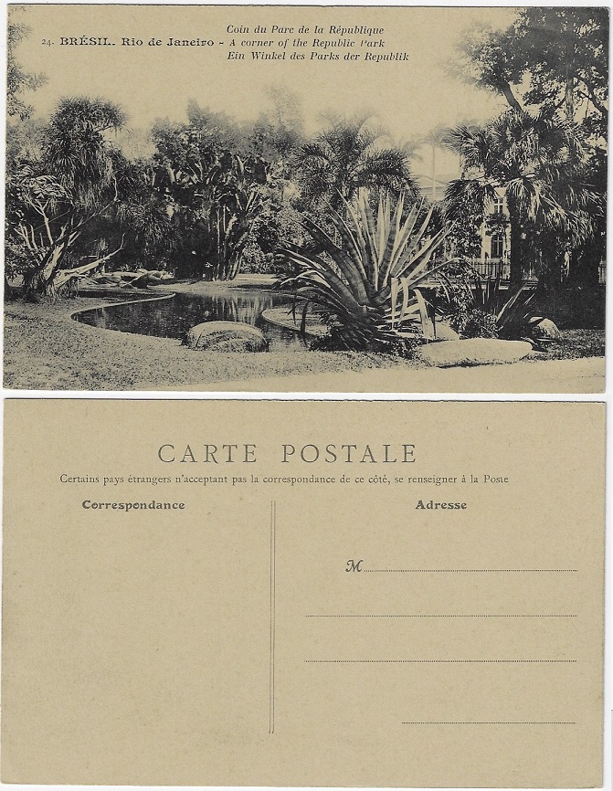| 79898 | BA, 1924, cartão postal com foto colorizada do Parque Duque de Caxias, em Salvador, Editor Joaquim Ribeiro, enviado para Bologna / Itália | 30,00 | Foto |