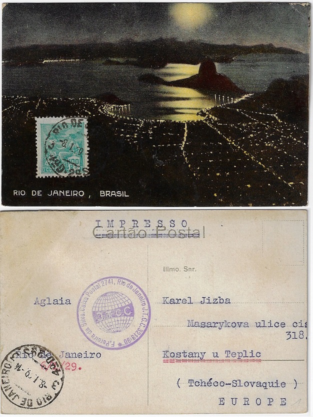 | 80472 | MG, 1933, cartão postal com foto preto e branco de vista central de Cambuquira, enviado de Cambuquira (20/3) para Rio de Janeiro (21/3), porteado com selo Vovó 100 Réis | 30,00 | Foto |