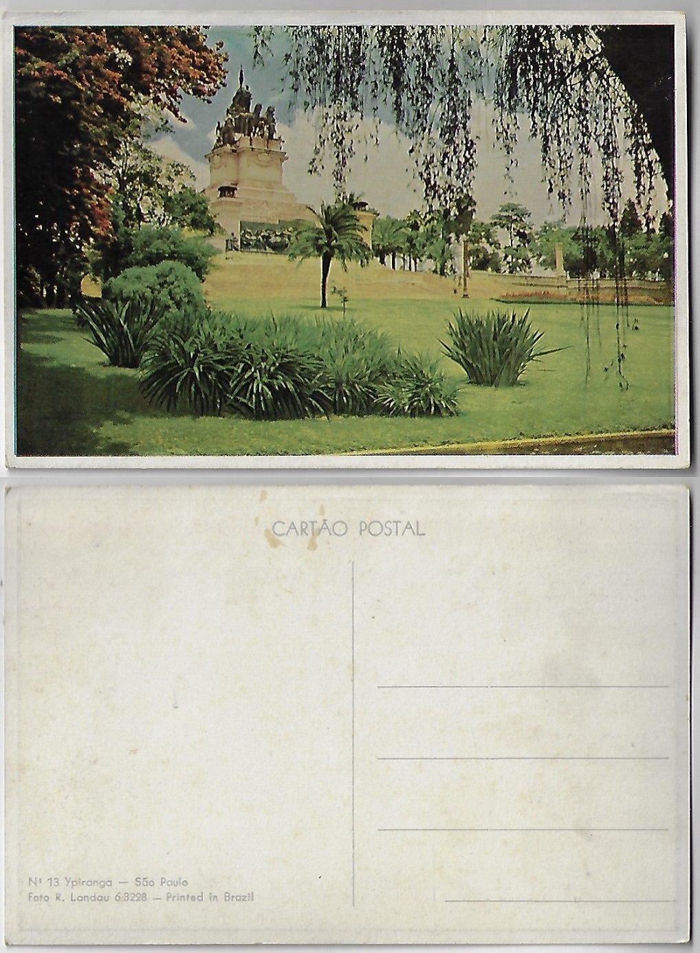 | 37023 | SP, 1950s, Cartão Postal com foto colorizada do Monumento do Ipiranga, Editor Foto Landau, nº 13, sem uso | 5,00 | Foto |