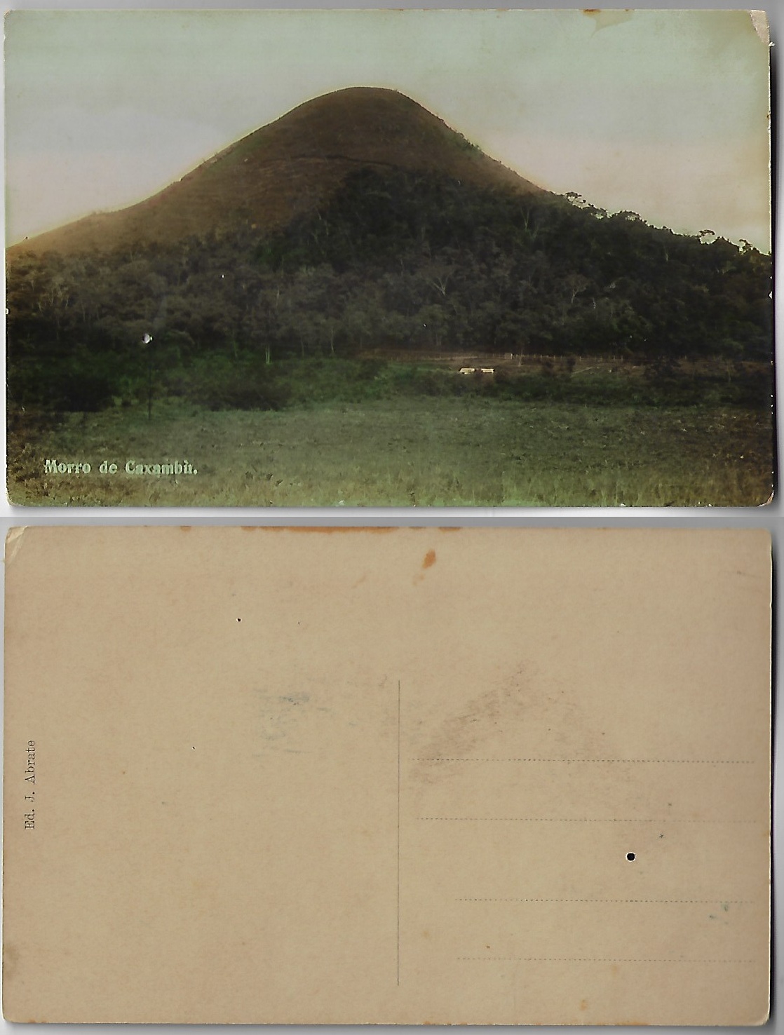 | 46229 | MG, 1920s, cartão postal com foto colorizada do Morro de Caxambu, Editor Abrate, sem uso, furo de cupim | 10,00 | Foto |