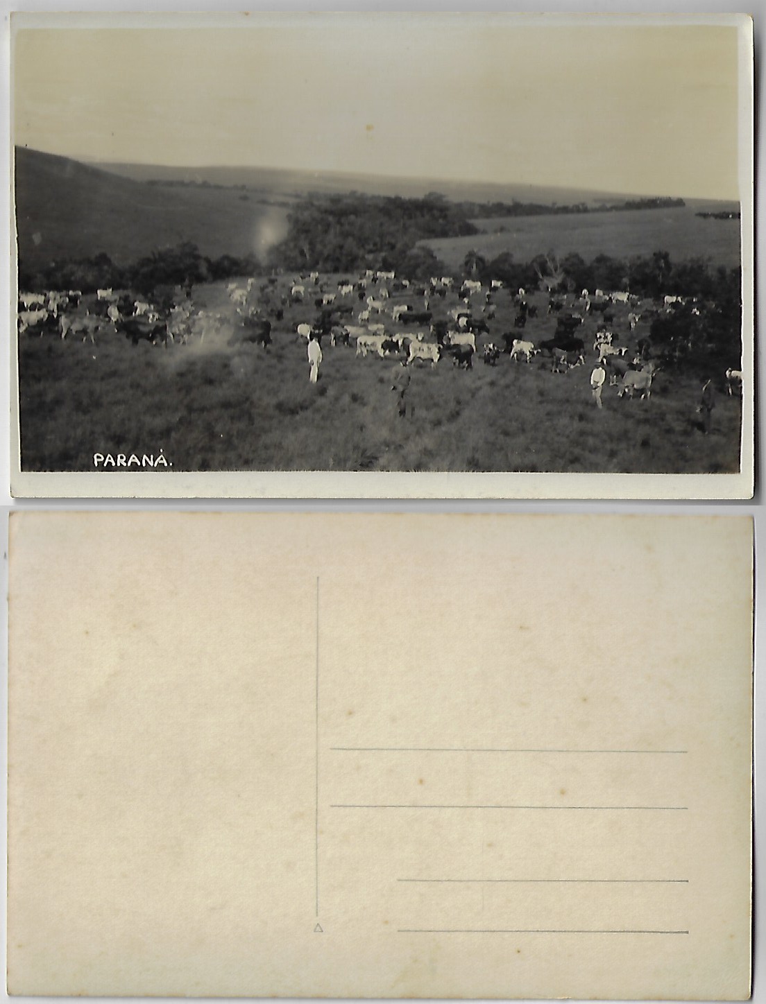 | 76417 | Diversos, 1940s, cartão postal com foto preto e branco de Reprodutores das Raças de Gado Zebu: Guzerá e Gir, Fazenda Bella Vistas, papel fotográfico Azo, sem uso | 10,00 | Foto |