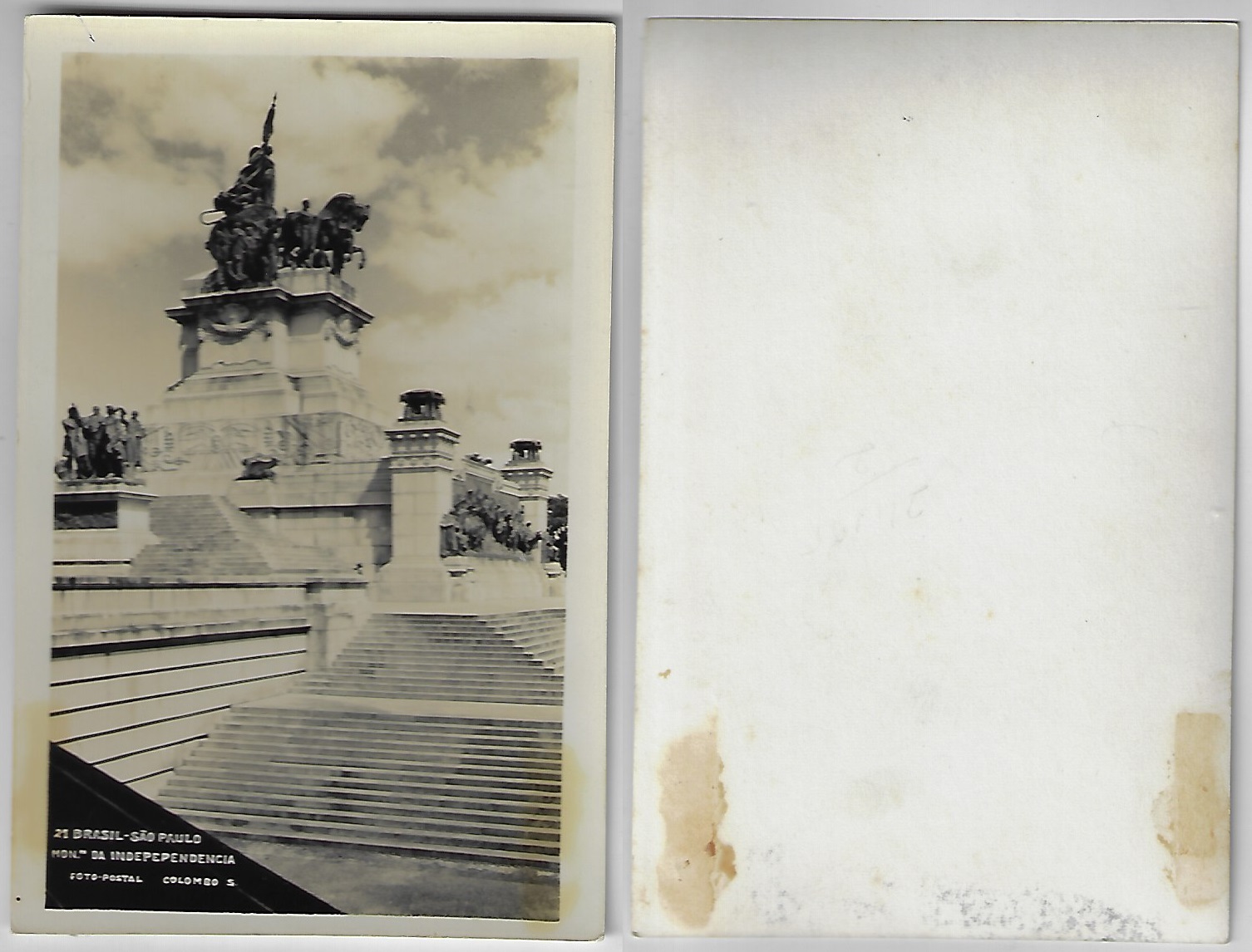 | 78176 | SP, 1930s, fotoostal preto e branco do Monumento da Independência, Editor Colombo, nº 21, sem uso | 10,00 | Foto |