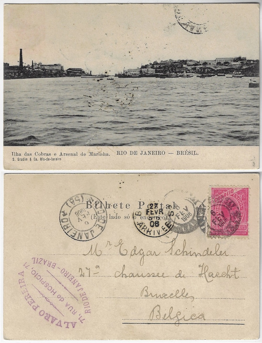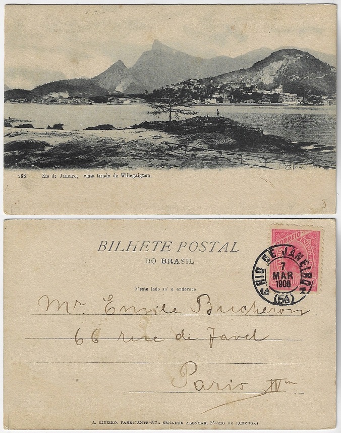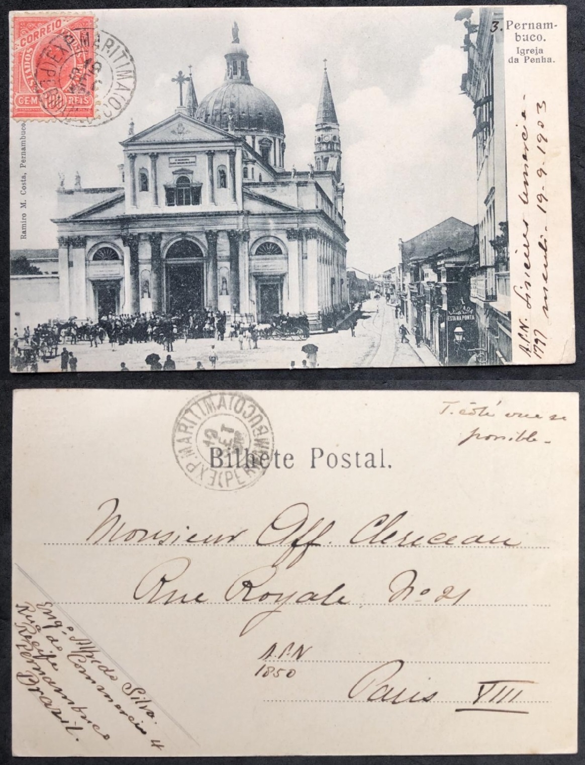 | 69658 | MG, 1906, Cartão Postal com foto monocromática da Igreja Dona Isabel, em Caxambu, enviado de Caxambu (10/4) para Rio de Janeiro, porteado com selo Madrugada 50 Réis, carimbo ferroviário "Ambulante Rio" (11/4) | 50,00 | Foto |