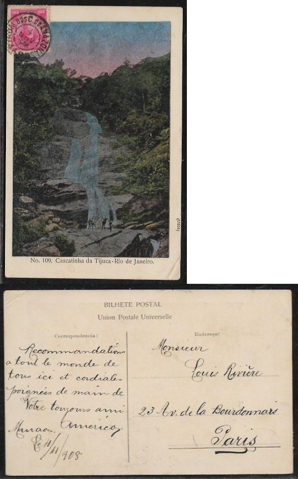 | 48999 | MG, 1910s, Cartão Postal com foto monocromática da Catarata Arrudos, Editor Mission Brésilienne de Propagande, sem uso | 30,00 | Foto |