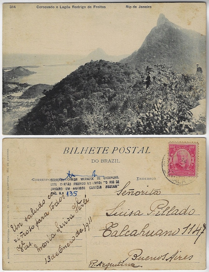| 84345 | CE, 1904, cartão postal com foto colorizada do Açude de Quixadá, Editor Casa Plácido, enviado de Duque de Caxias / RJ para Buenos Aires / Argentina, porteado com selo Madrugada 100 Réis | 50,00 | Foto |