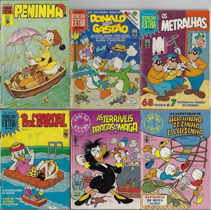 | 81436 | Brasil, 1979/1990, quadrinhos "Edição Extra", nº 102, 122, 129, 133, 193 e 194, Editora Abril, 68 a 84 páginas cada | 47,00 | Foto |