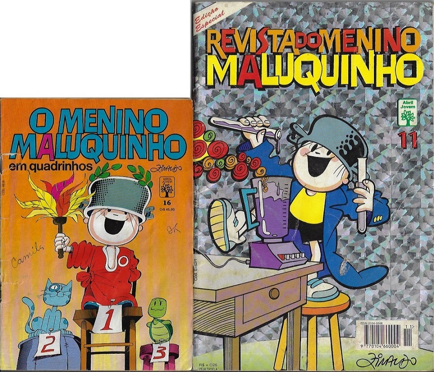 | 64671 | Brasil, 1990 e 1995, quadrinhos "Menino Maluquinho", nº 16 e 11, Editora Abril, 36 e 52 páginas, nº 11 com alguns quadrinhos coloridos a canetinha, atividades feitas a caneta e folha central solta | 20,00 | Foto |