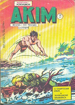 | 64680 | Brasil, 1990, quadrinhos "Akim", nº 77, Editora Noblet, 108 páginas, 2 furos de cupim mas apenas 1 atravessando a revista, 3 páginas com dados de antigo proprietário a caneta | 13,00 | Foto |