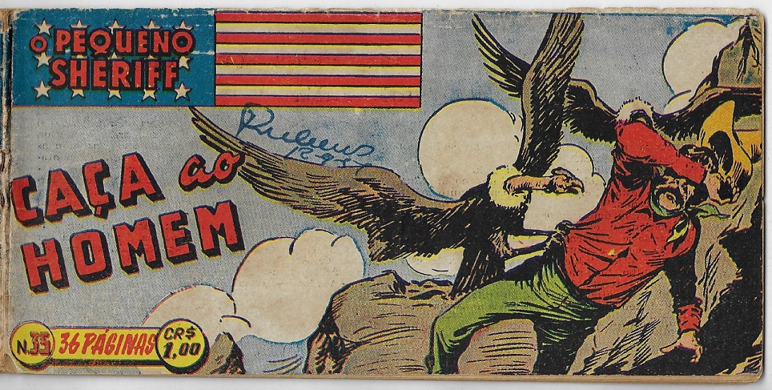 | 81618 | Brasil, 1950, quadrinhos "O Pequeno Sheriff - Caça ao Homem", nº 35, Editora Vecchi, 36 páginas, folha central solta | 30,00 | Foto |