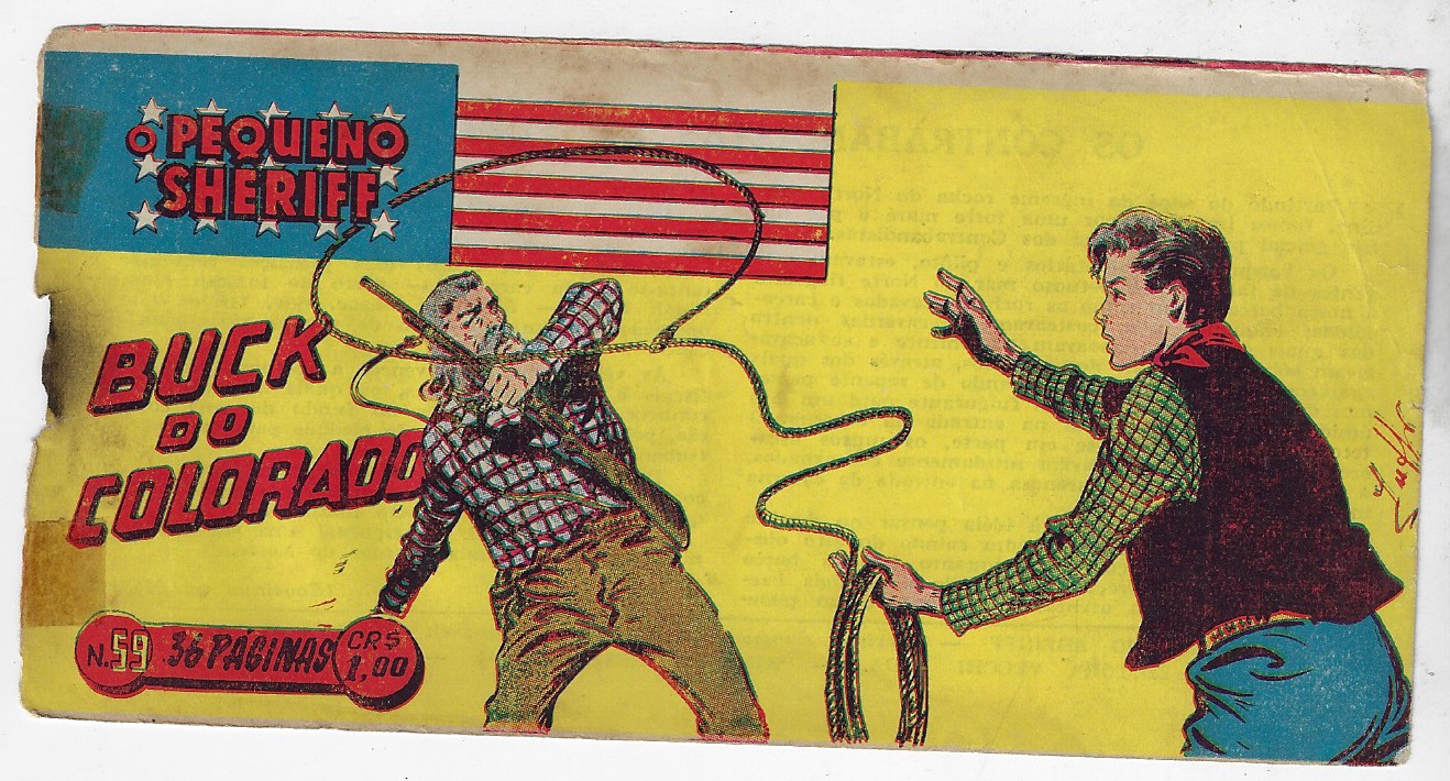 | 81640 | Brasil, 1951, quadrinhos "O Pequeno Sheriff - Buck do Colorado", nº 59, Editora Vecchi, 36 páginas, capa solta e destacada, sem os grampos | 30,00 | Foto |