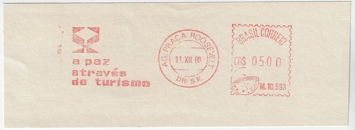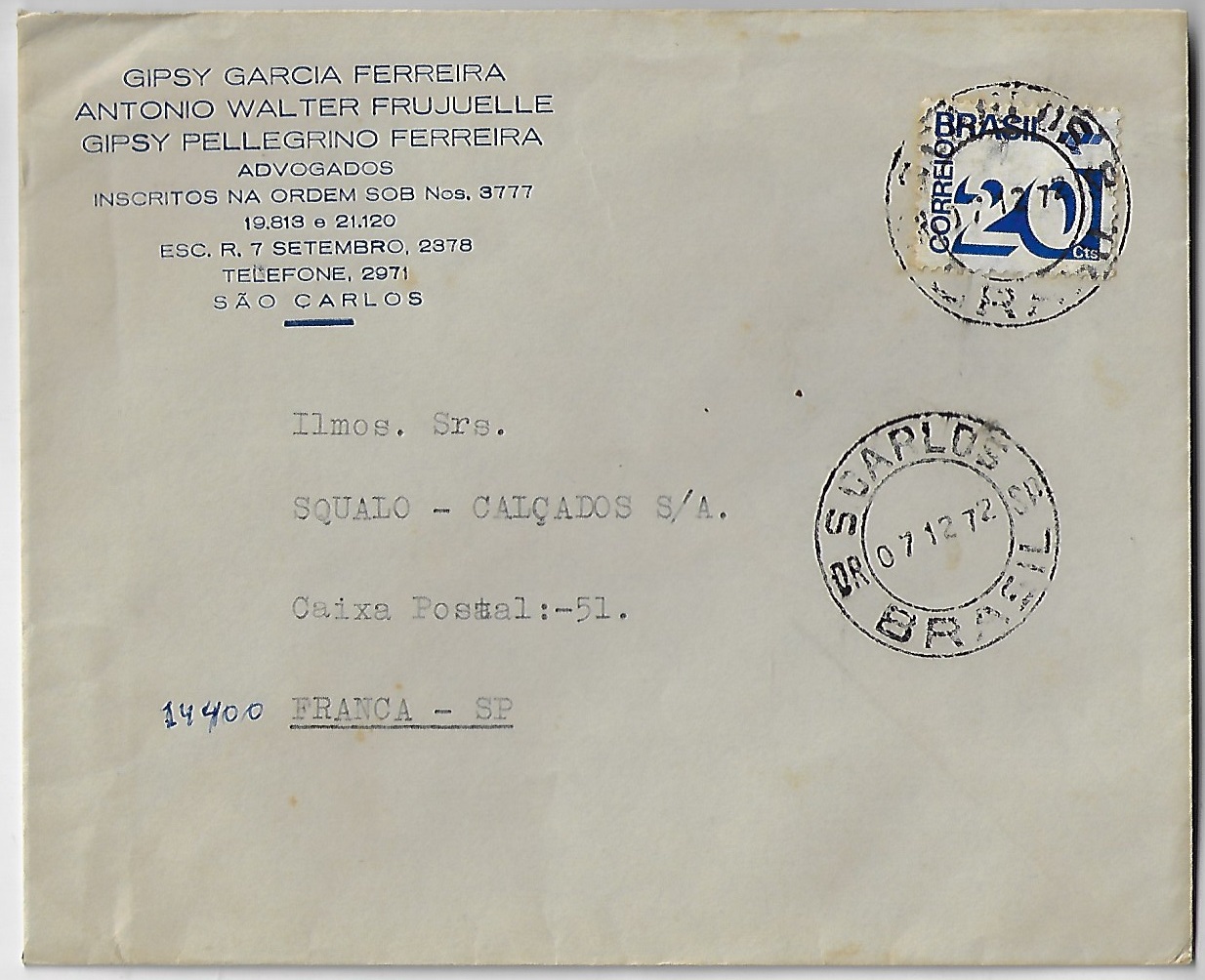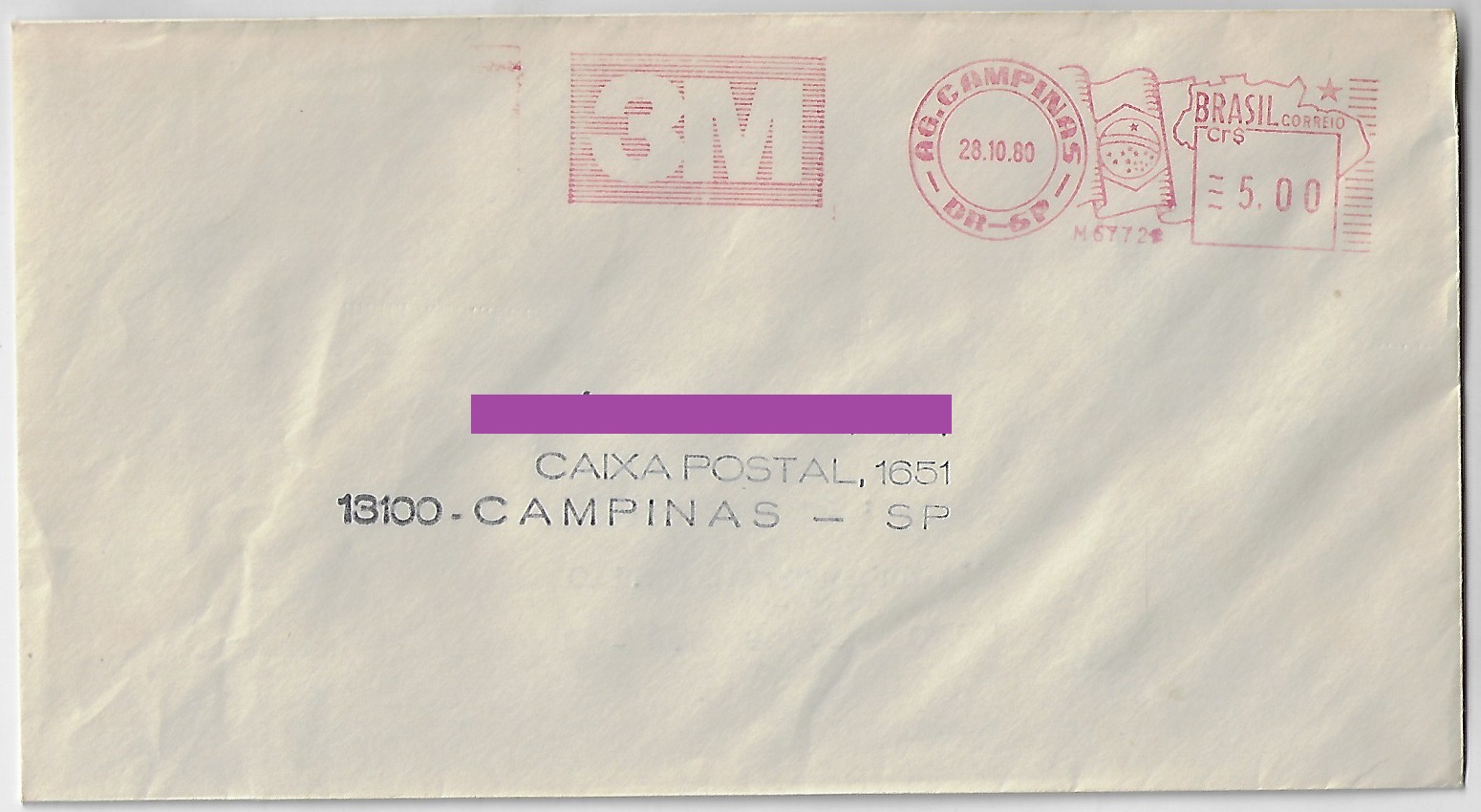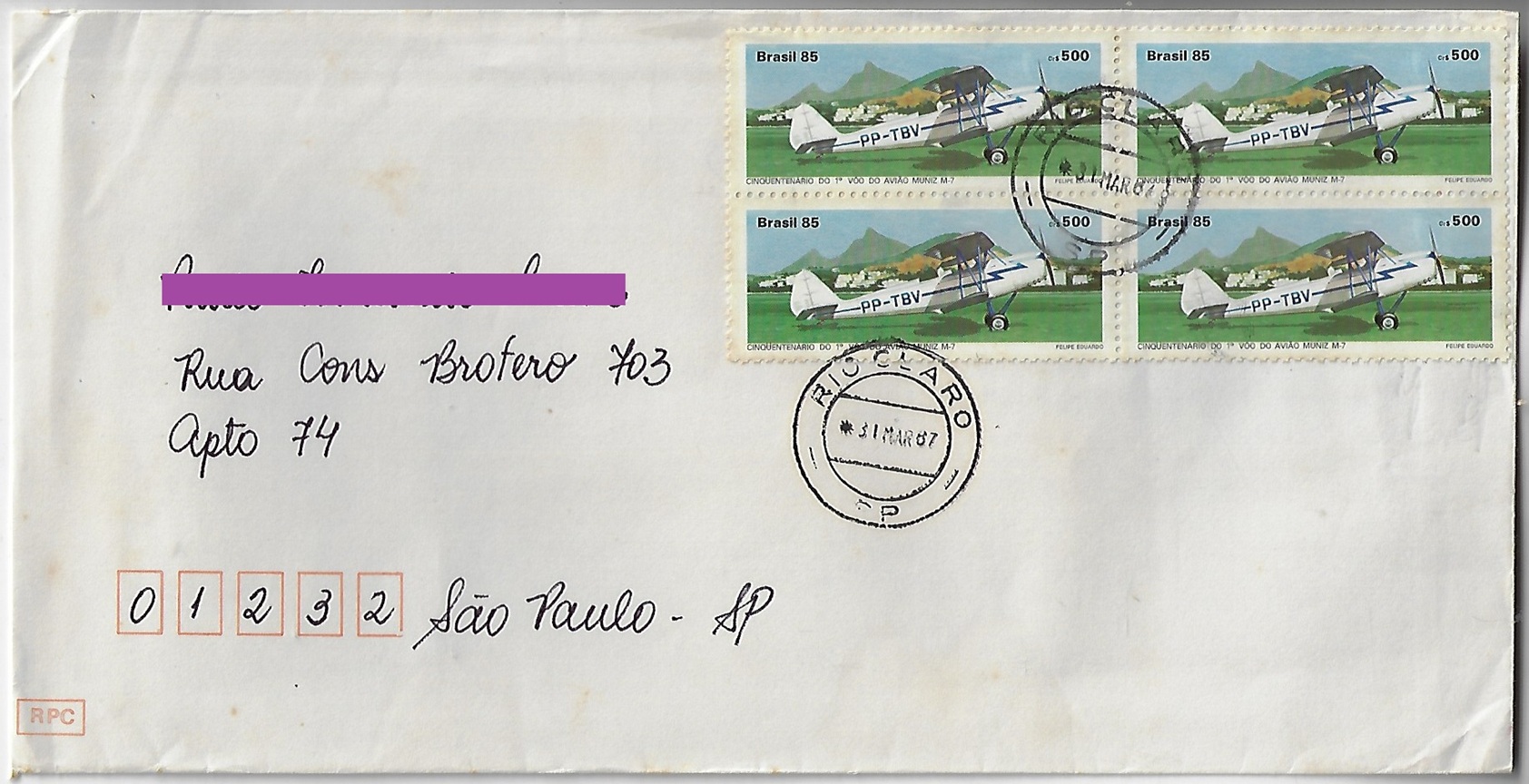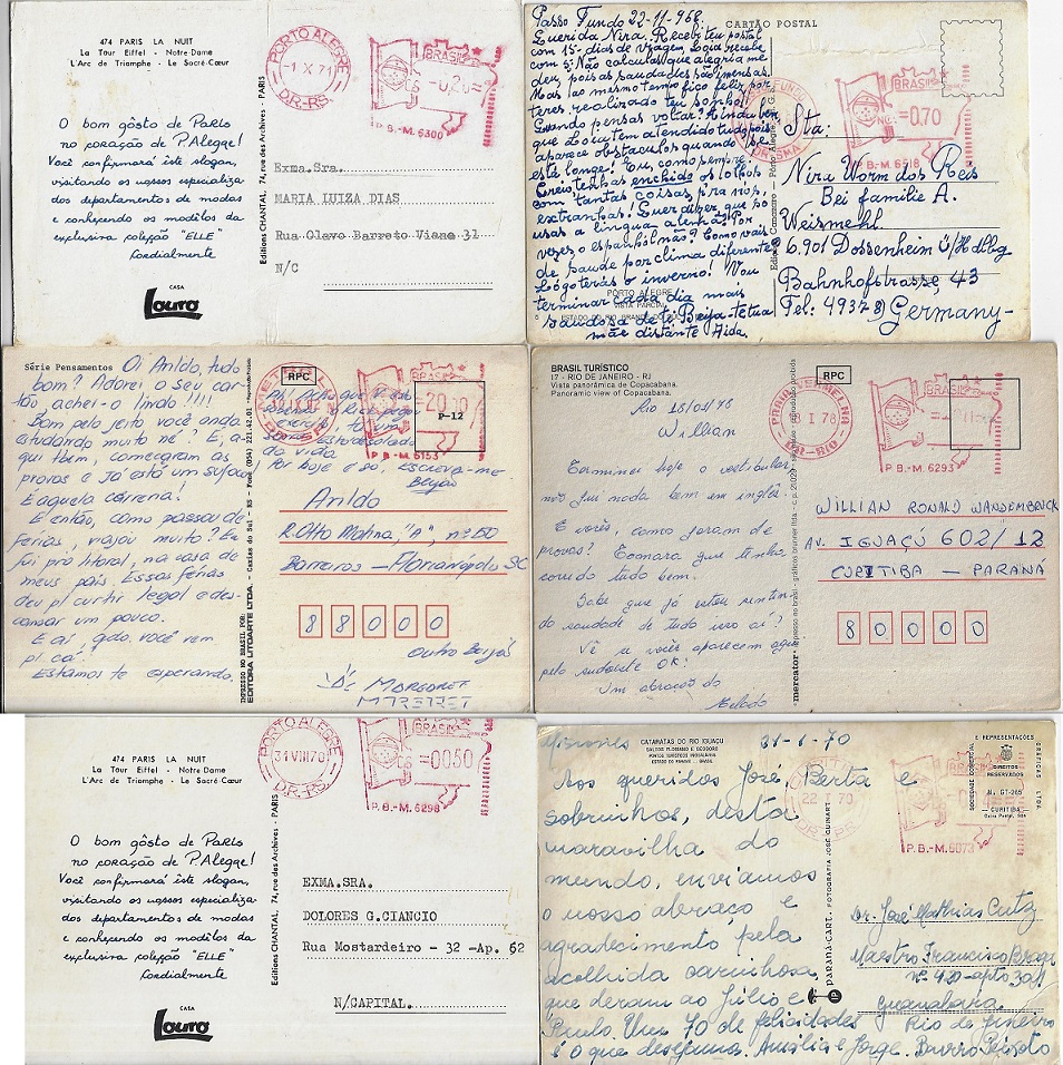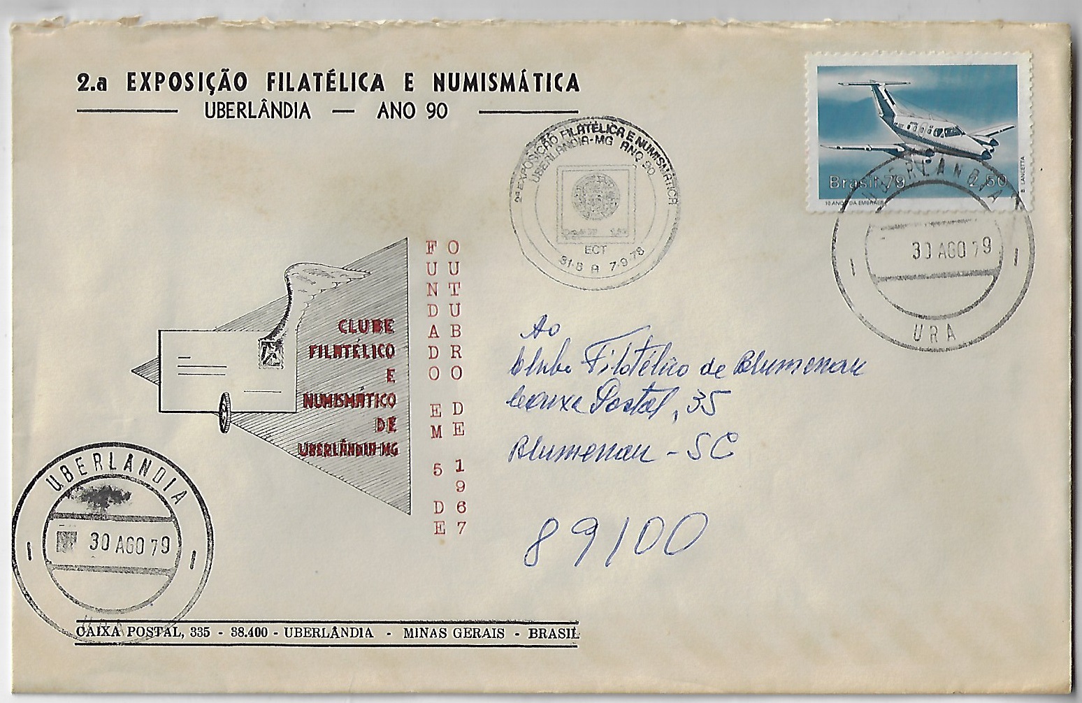 | 80884 | 2023, envelope prioritário registrado enviado de Biguaçu (21/11) para San Francisco / EUA, retornado ao remetente, marcas de triagem eletrônica na frente e no verso, 5 selos comemorativos 1ª Conferência Nacional da Juventure e 2 regulares Engraxate | 10,00 | Foto |