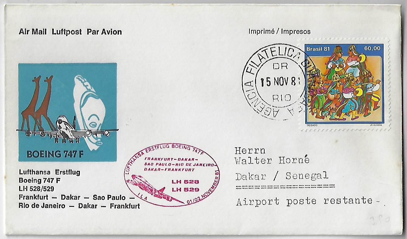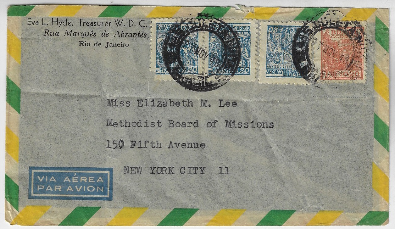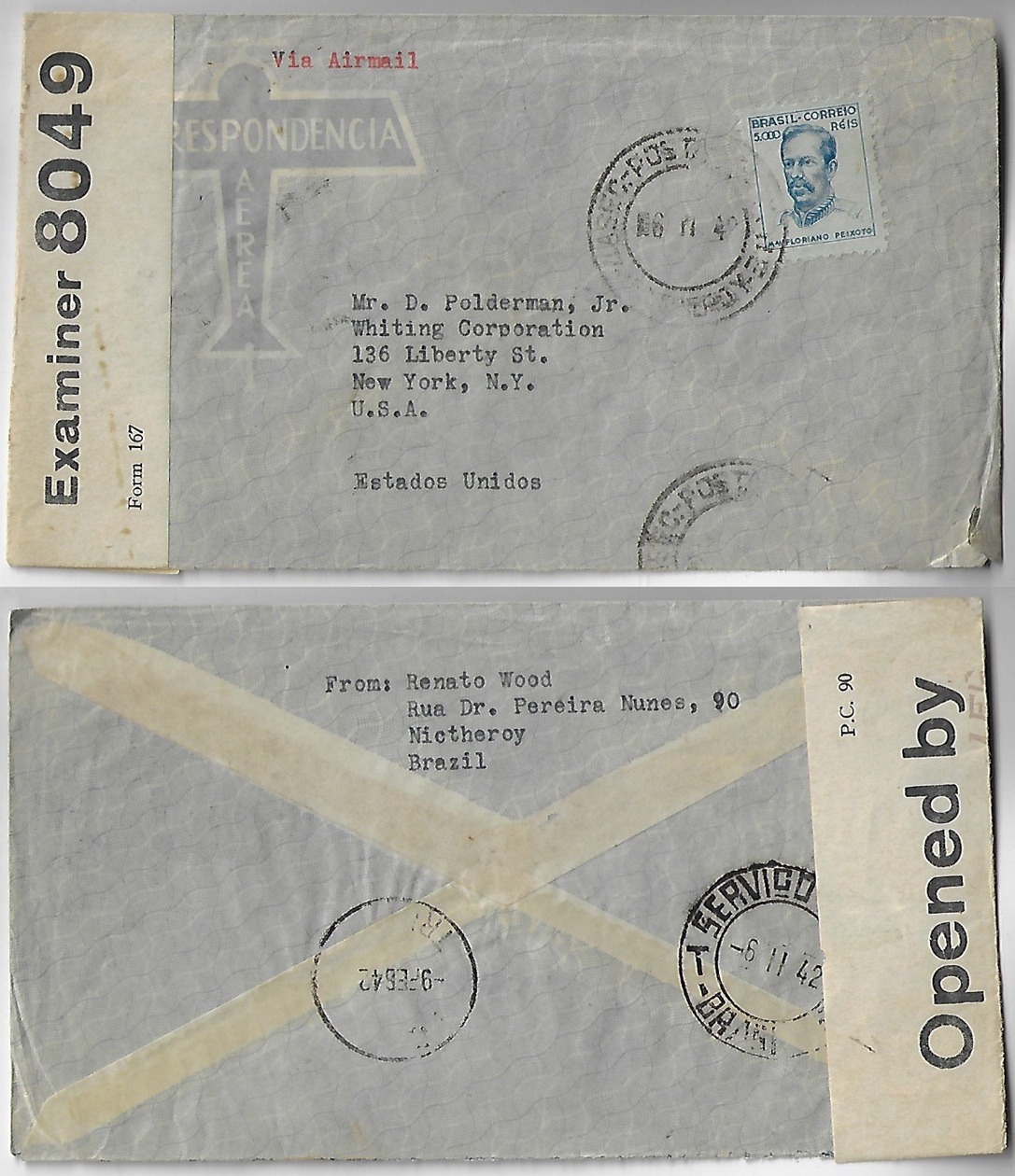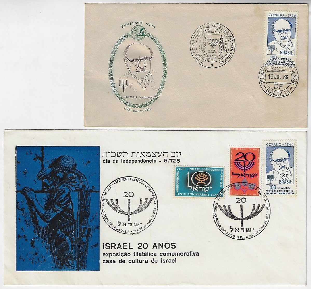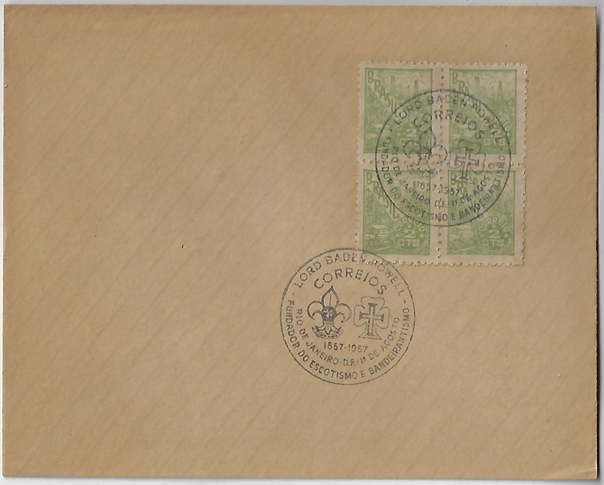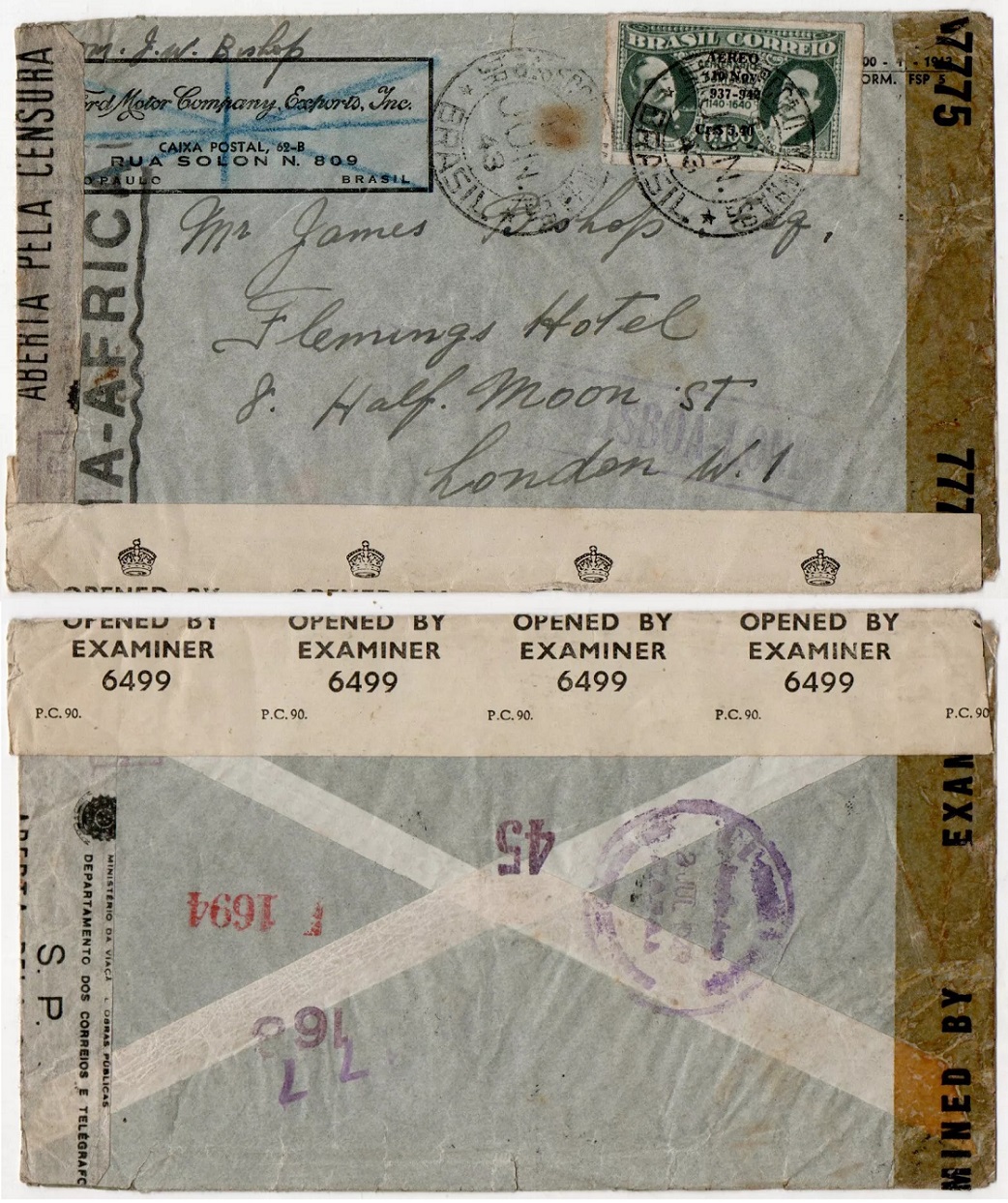 | 80884 | 2023, envelope prioritário registrado enviado de Biguaçu (21/11) para San Francisco / EUA, retornado ao remetente, marcas de triagem eletrônica na frente e no verso, 5 selos comemorativos 1ª Conferência Nacional da Juventure e 2 regulares Engraxate | 10,00 | Foto |
