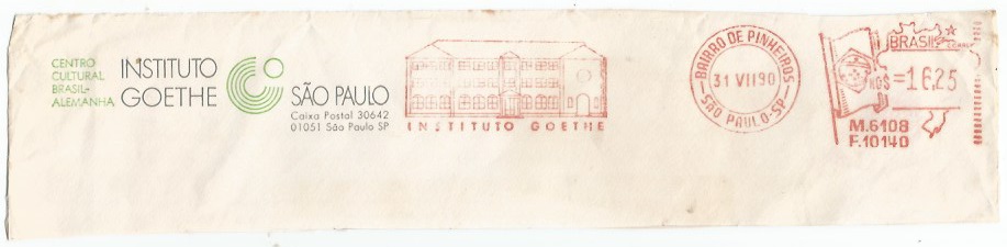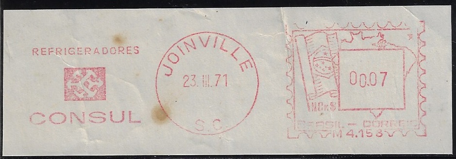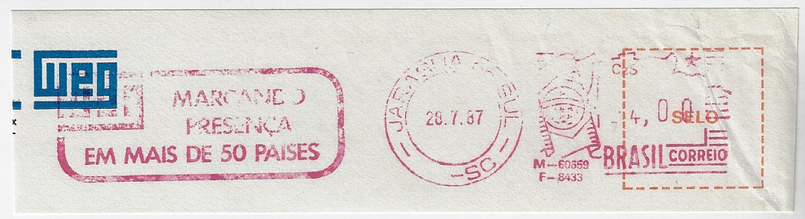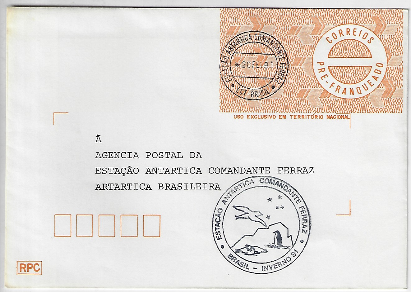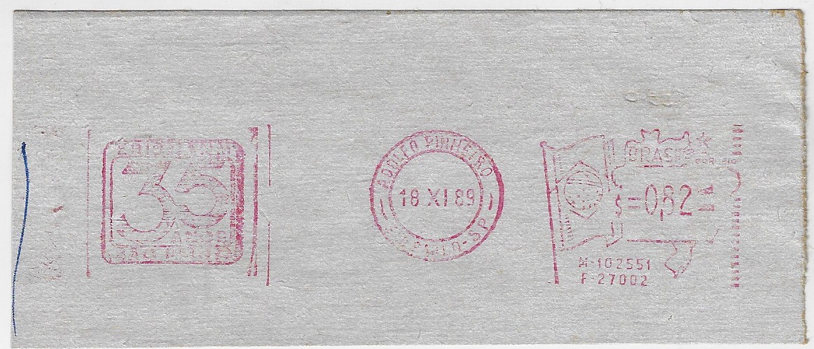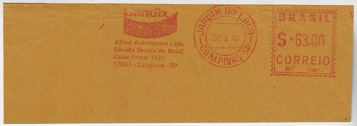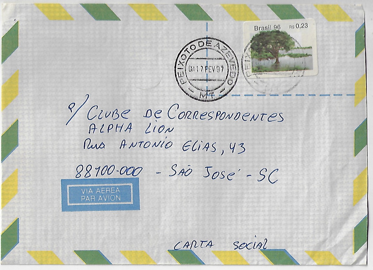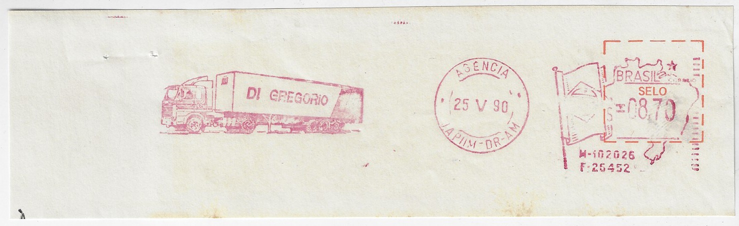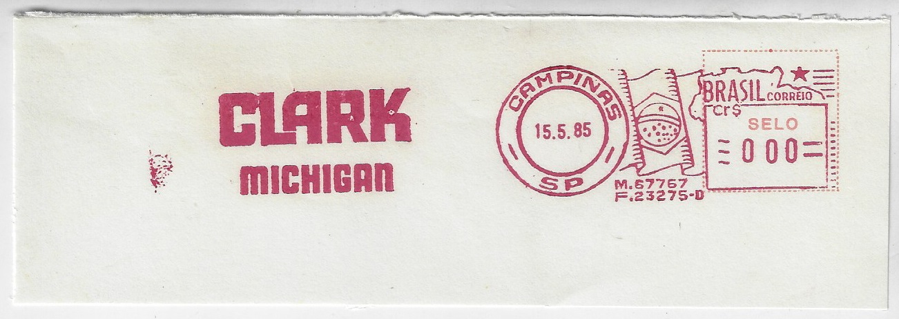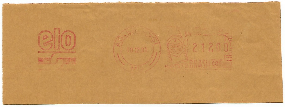 | 80019 | 2021, envelope registrado de Chinon / França (07/12) para Biguaçu, carimbo "ME" = "Mal Encaminhado" para Atalanta (21/12), porteado com autômato | 10,00 | Foto |