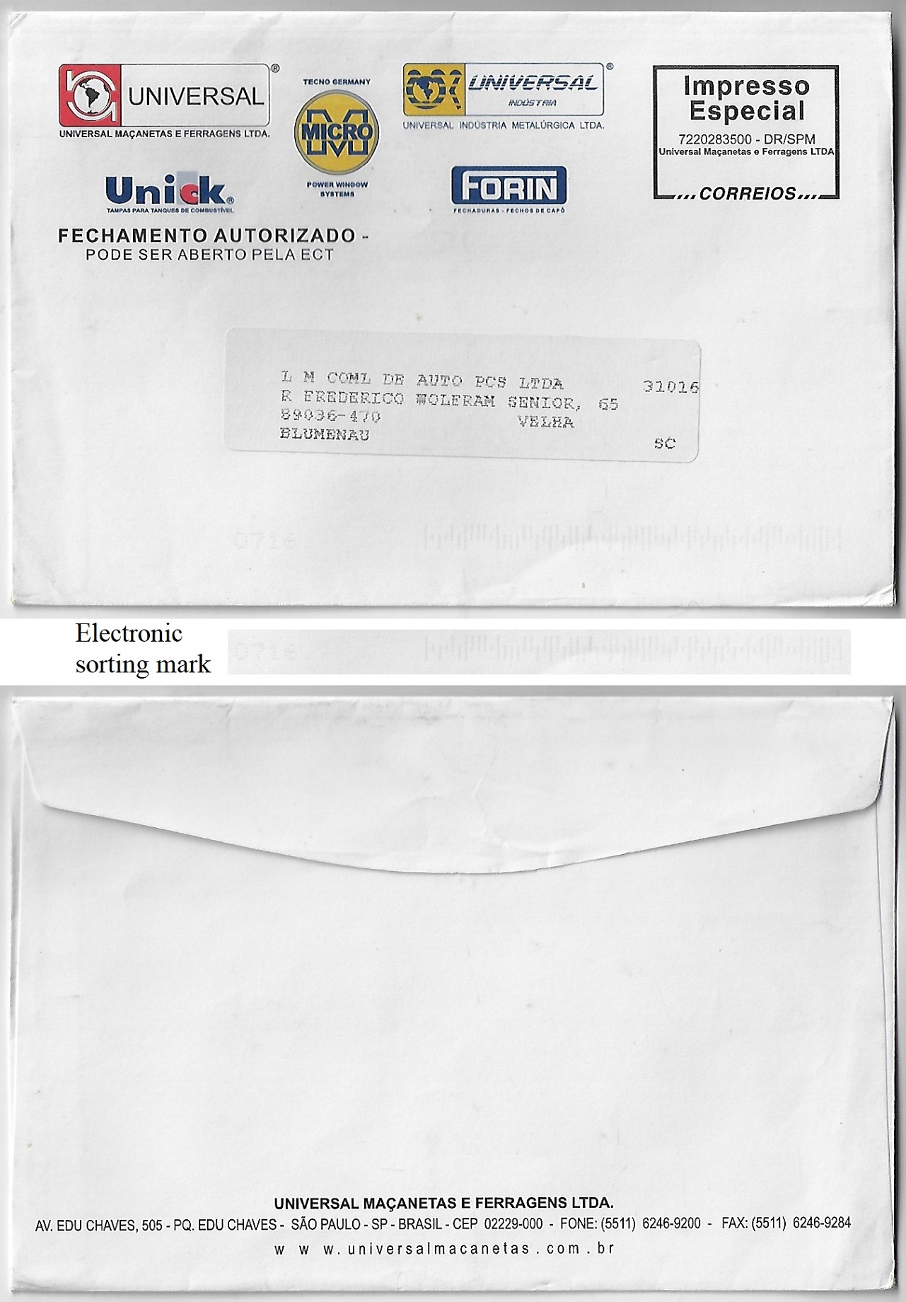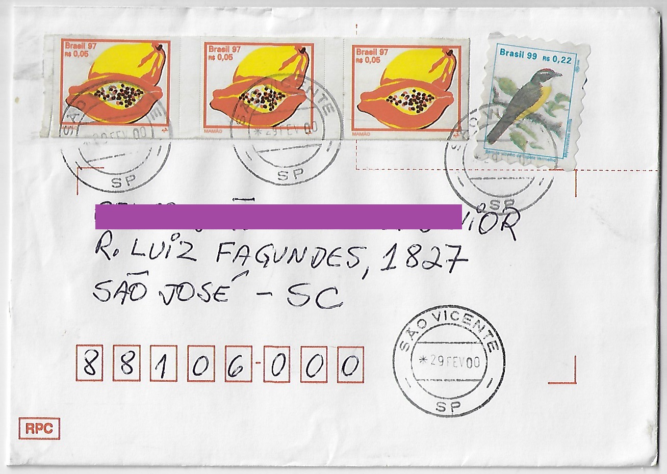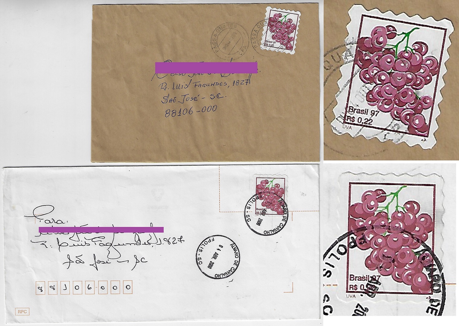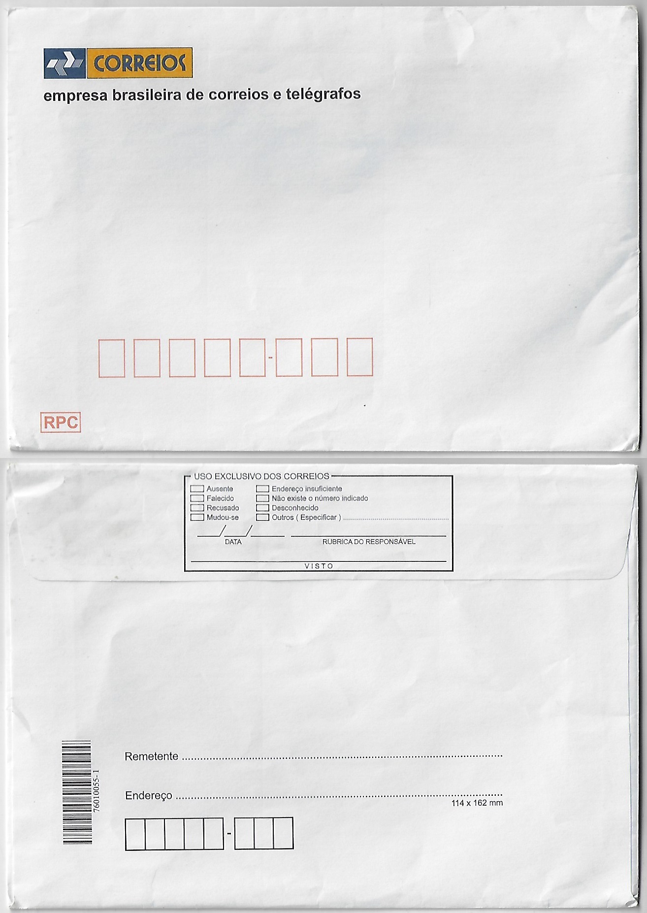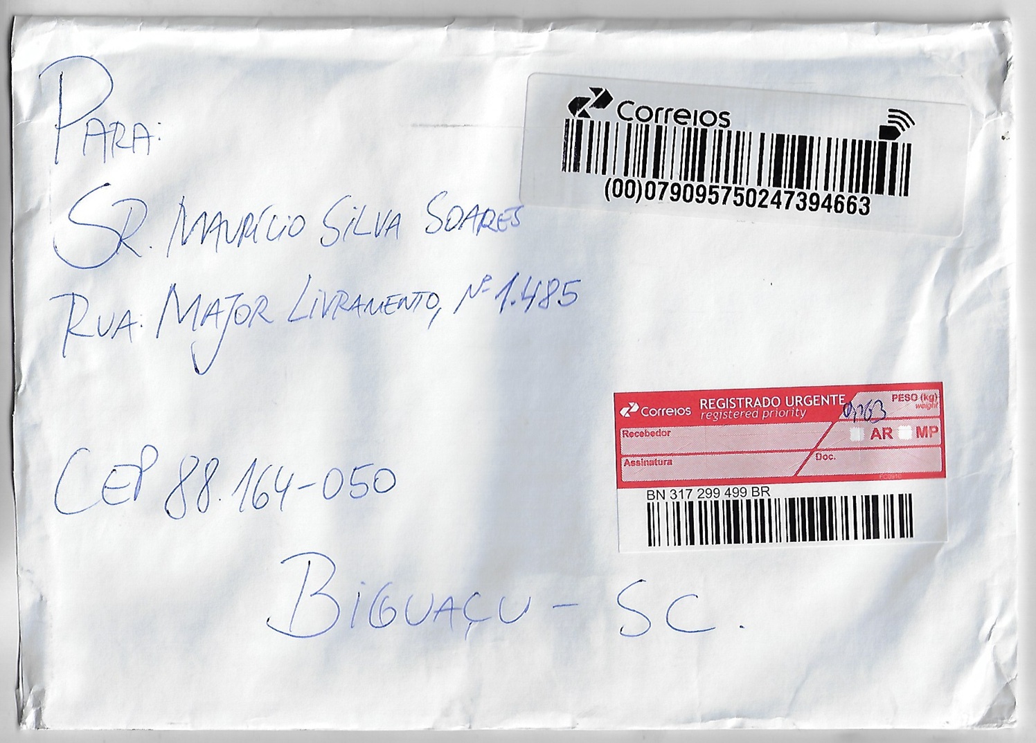| 24463 | 2025, envelope enviado de Balneário Gaivota para Biguaçu, etiqueta de registro e etiqueta de leitura por Radiofrequência | 10,00 | Foto |