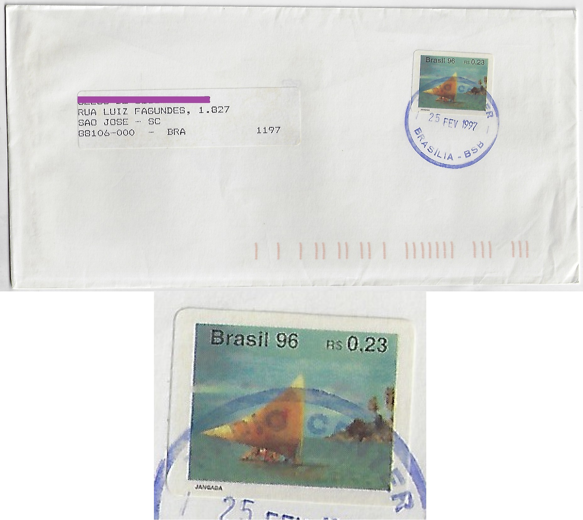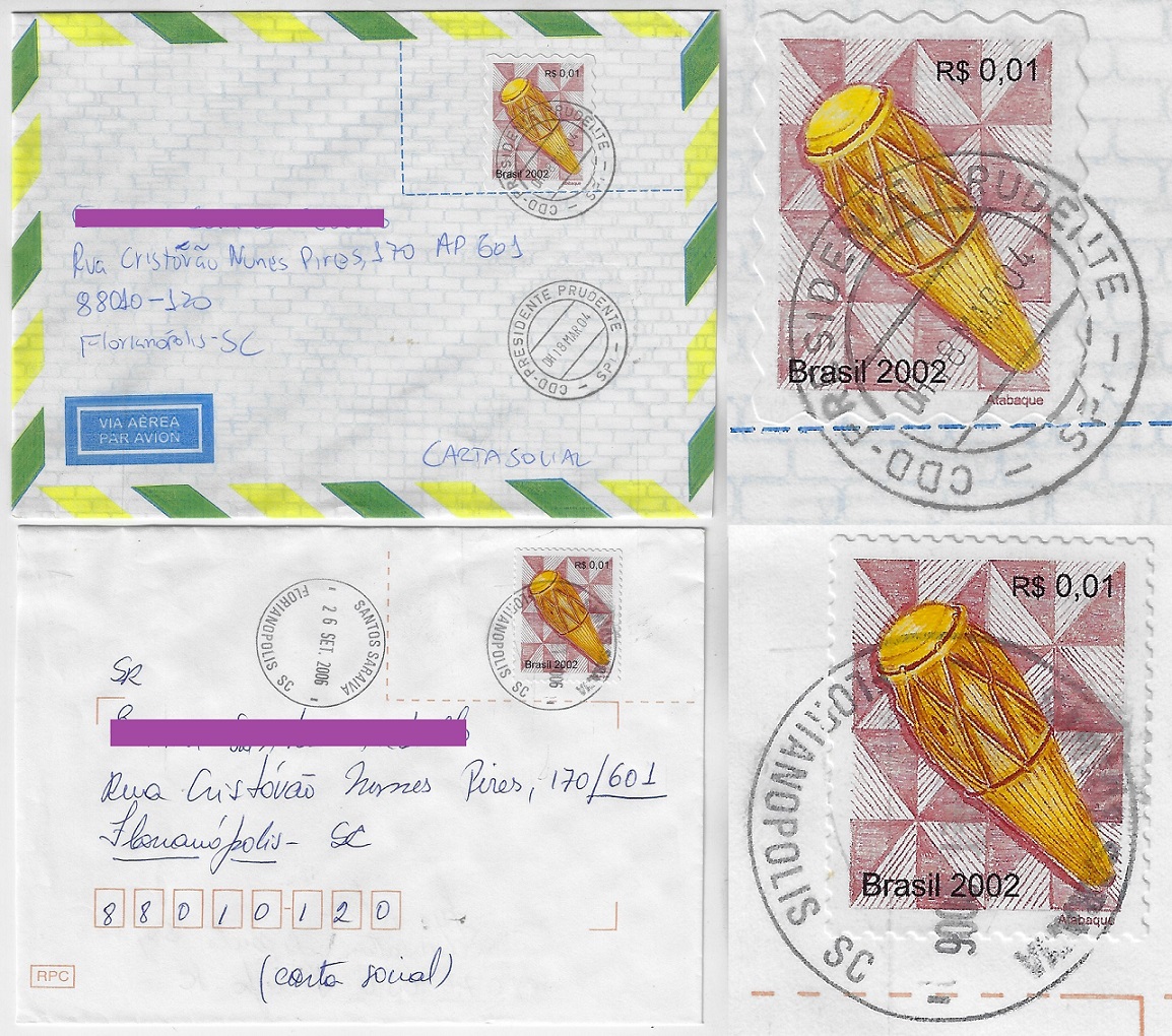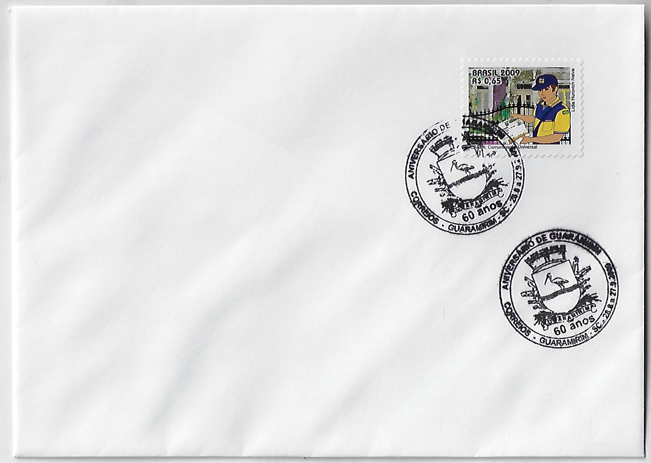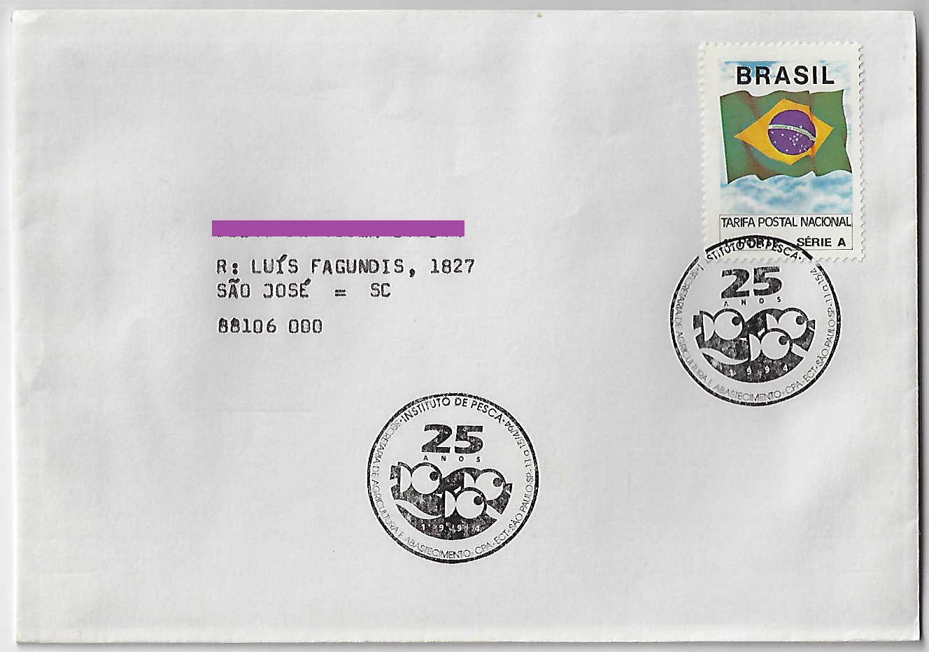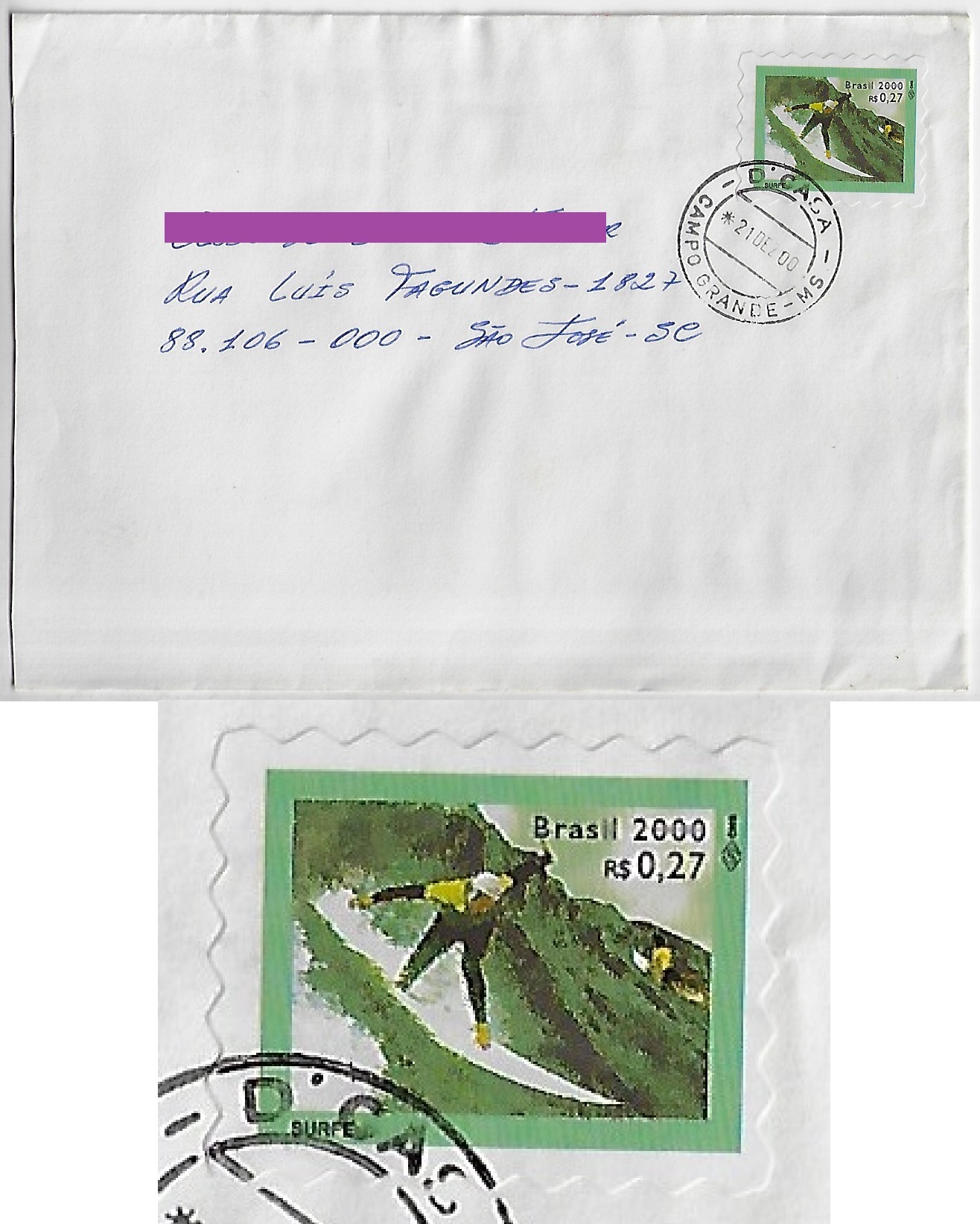 | 24463 | 2025, envelope enviado de Balneário Gaivota para Biguaçu, etiqueta de registro e etiqueta de leitura por Radiofrequência | 10,00 | Foto |
