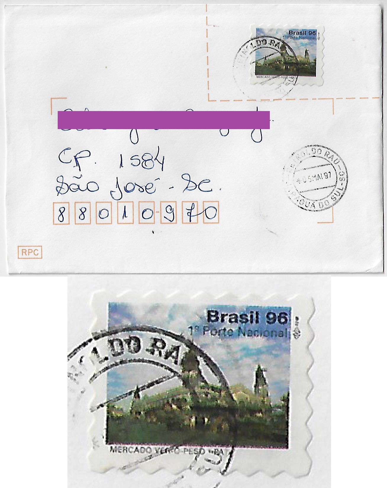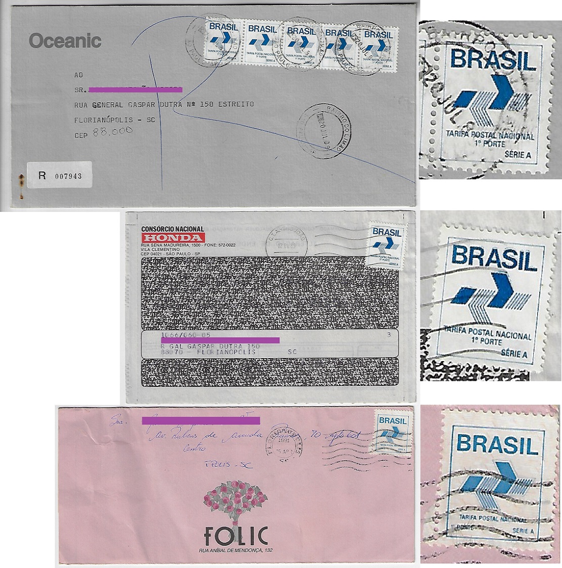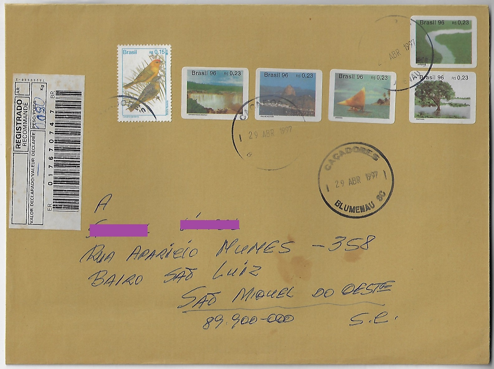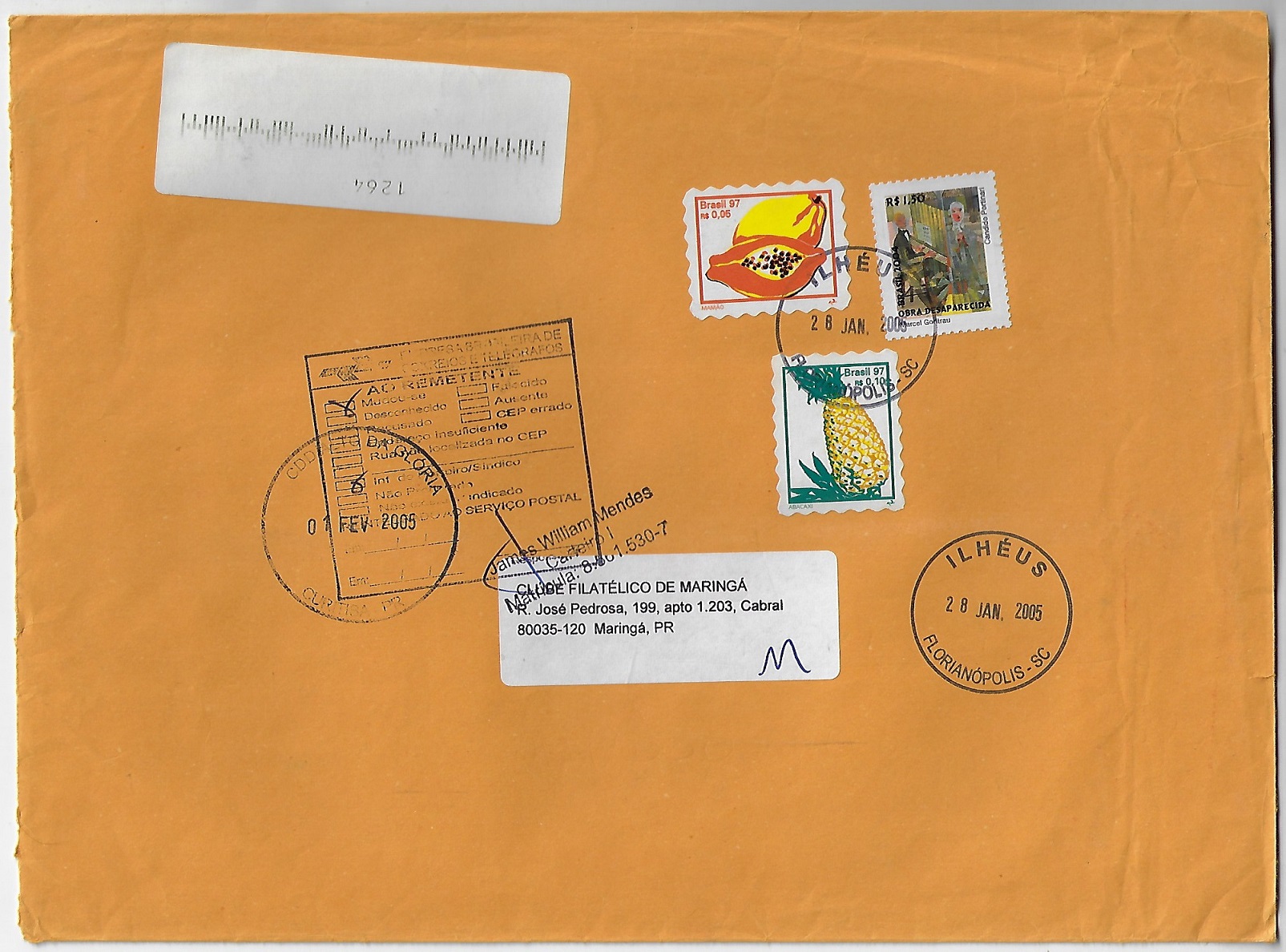 | 24463 | 2025, envelope enviado de Balneário Gaivota para Biguaçu, etiqueta de registro e etiqueta de leitura por Radiofrequência | 10,00 | Foto |