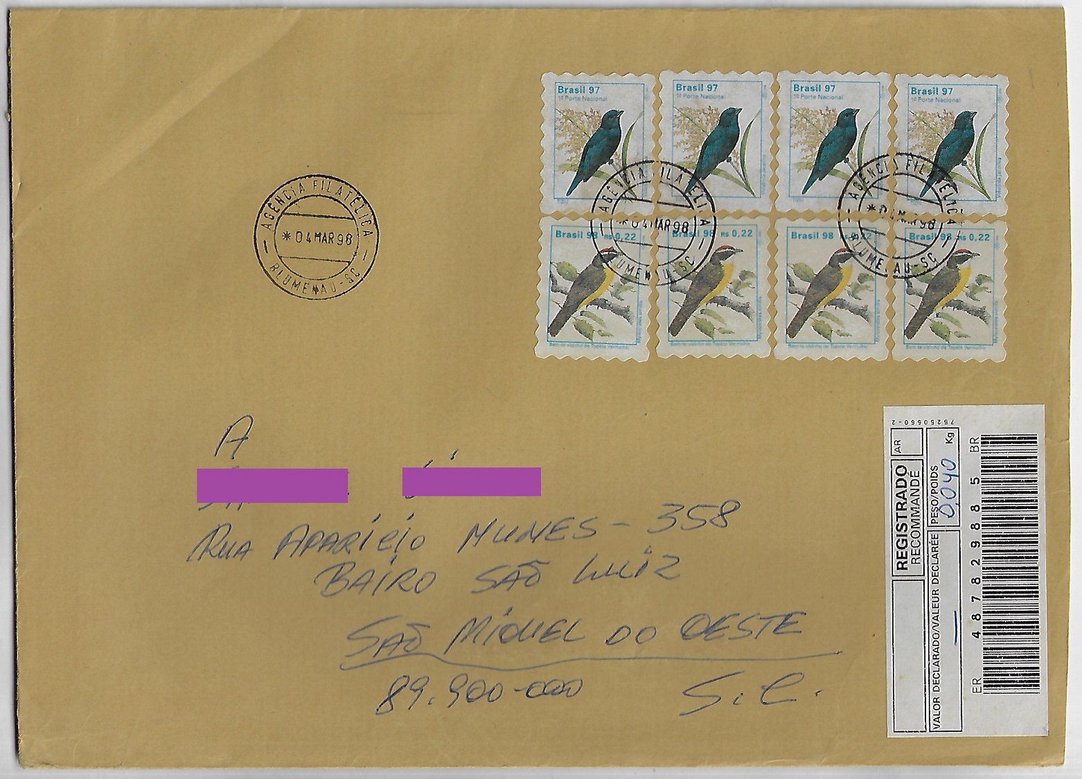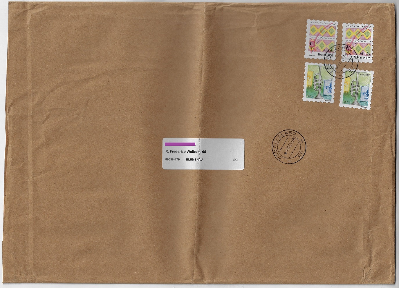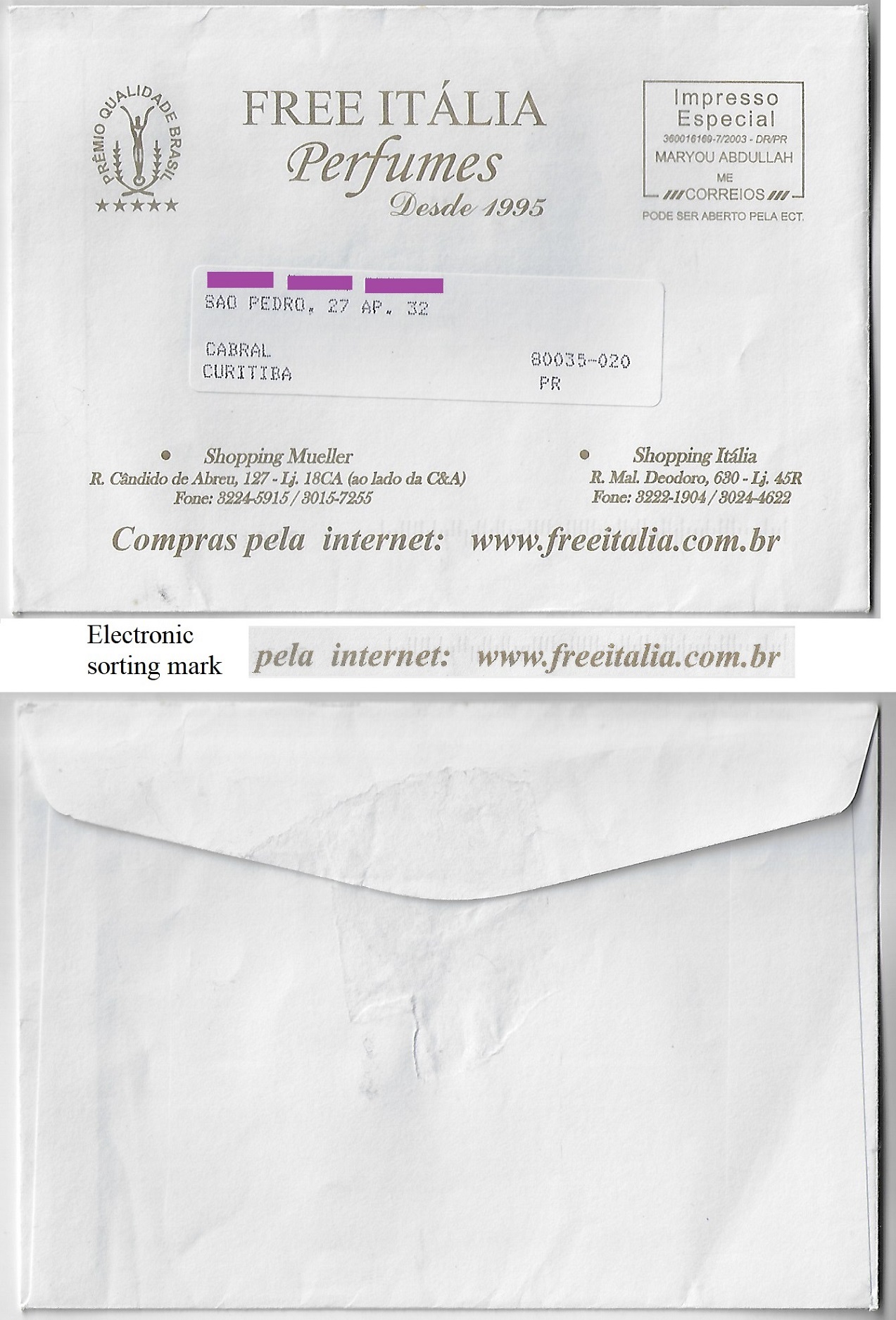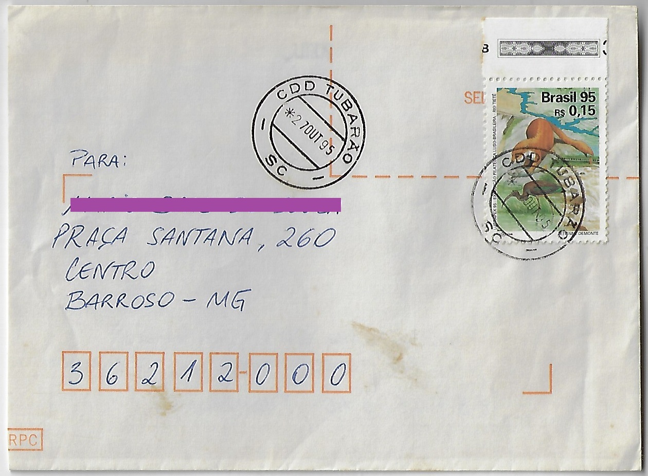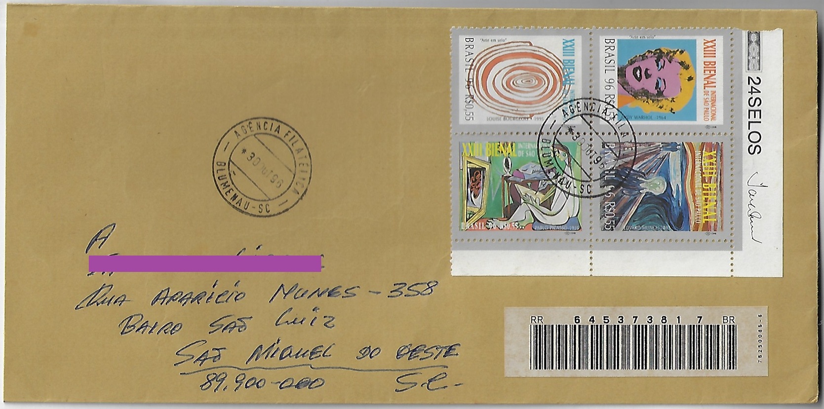 | 24463 | 2025, envelope enviado de Balneário Gaivota para Biguaçu, etiqueta de registro e etiqueta de leitura por Radiofrequência | 10,00 | Foto |