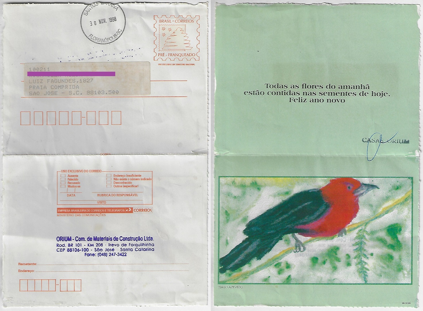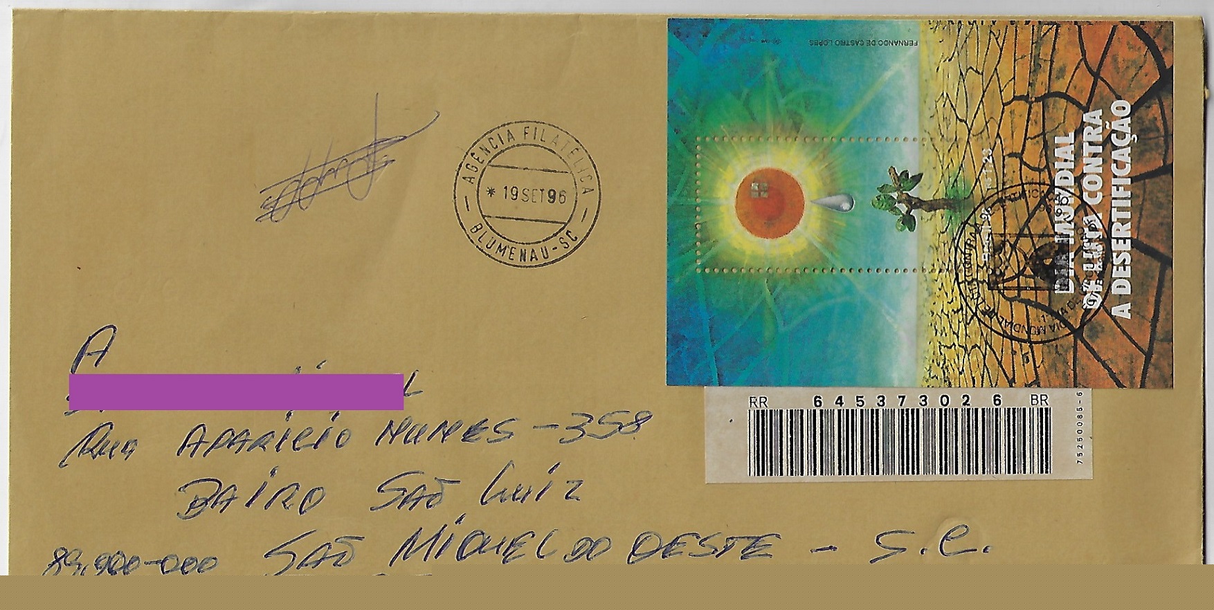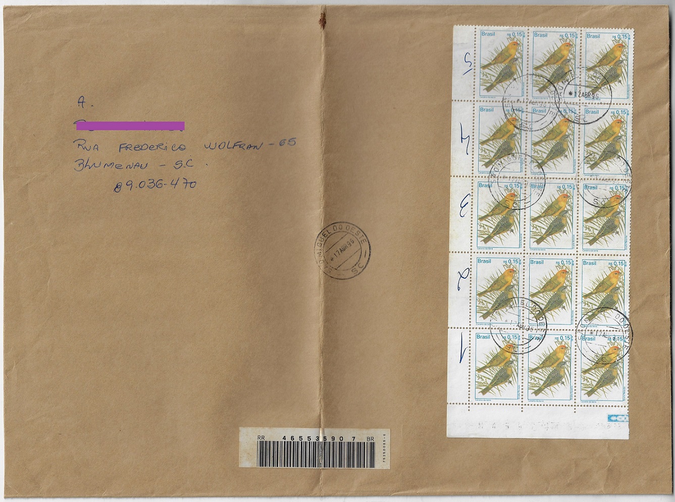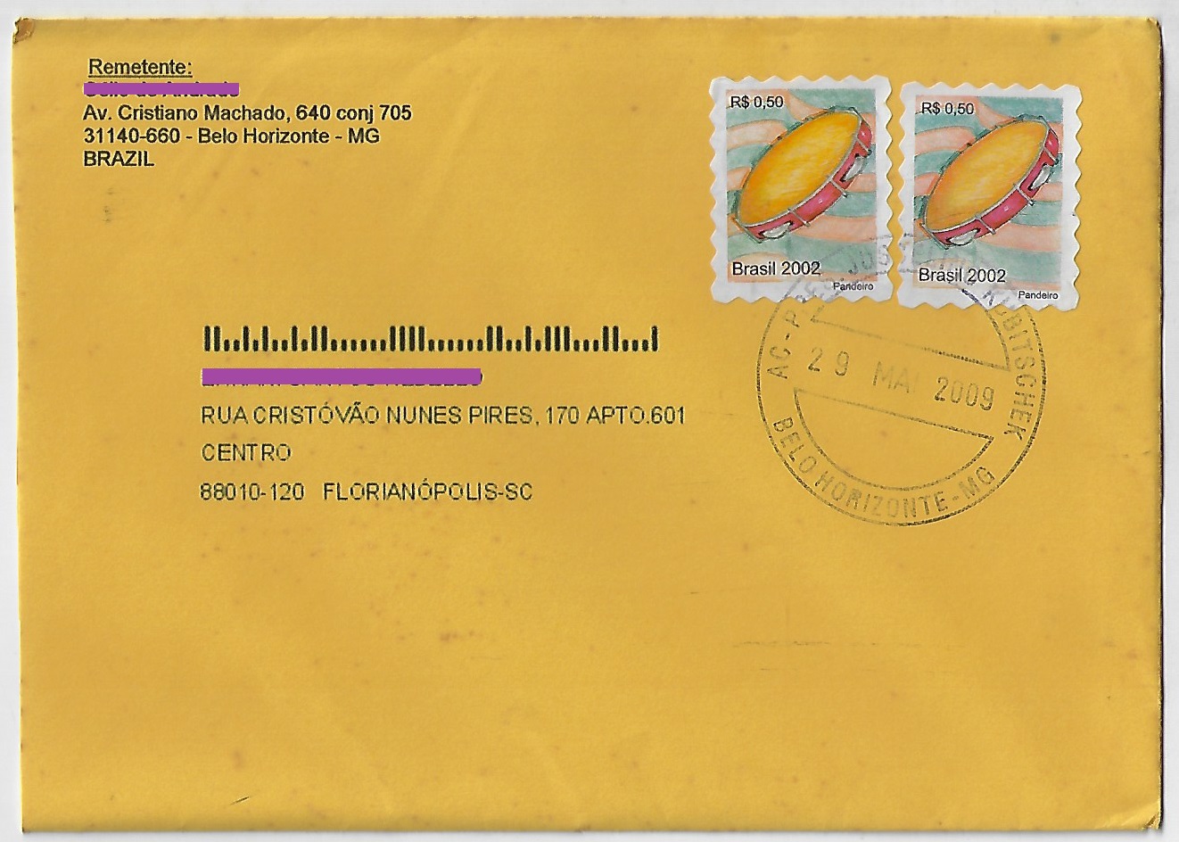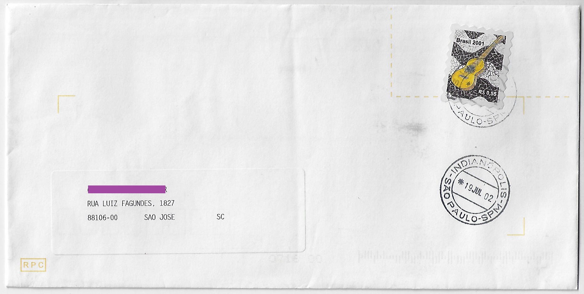 | 24463 | 2025, envelope enviado de Balneário Gaivota para Biguaçu, etiqueta de registro e etiqueta de leitura por Radiofrequência | 10,00 | Foto |
