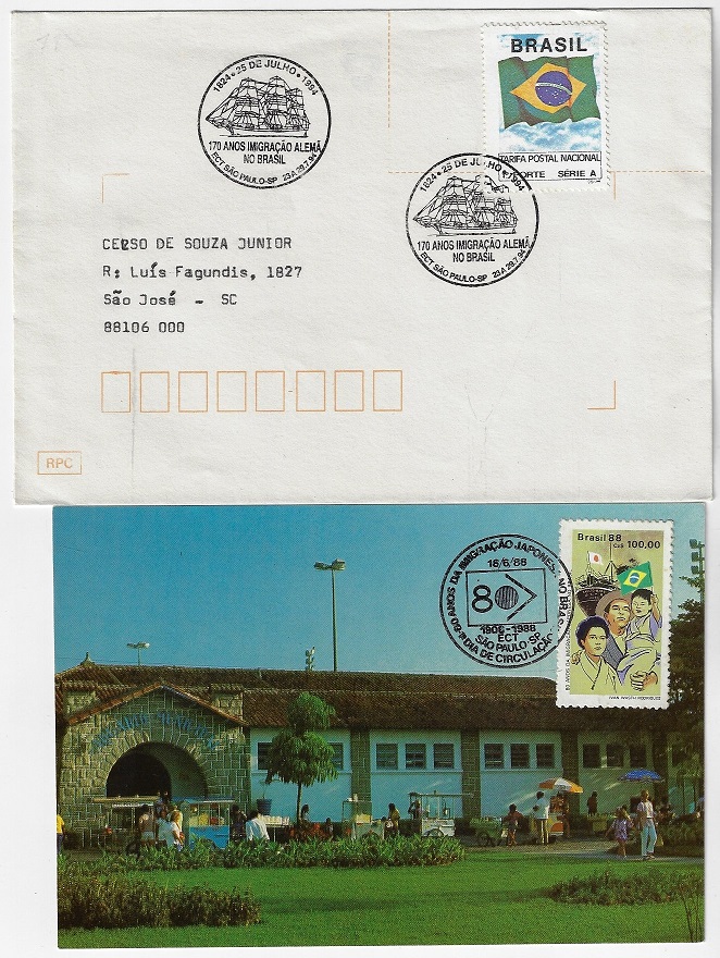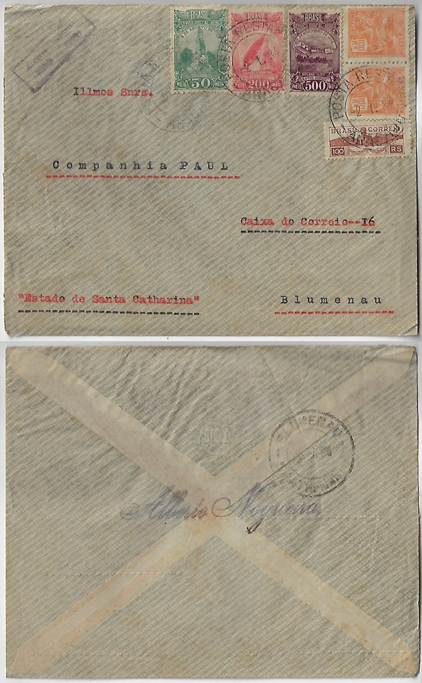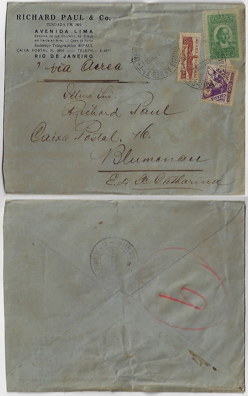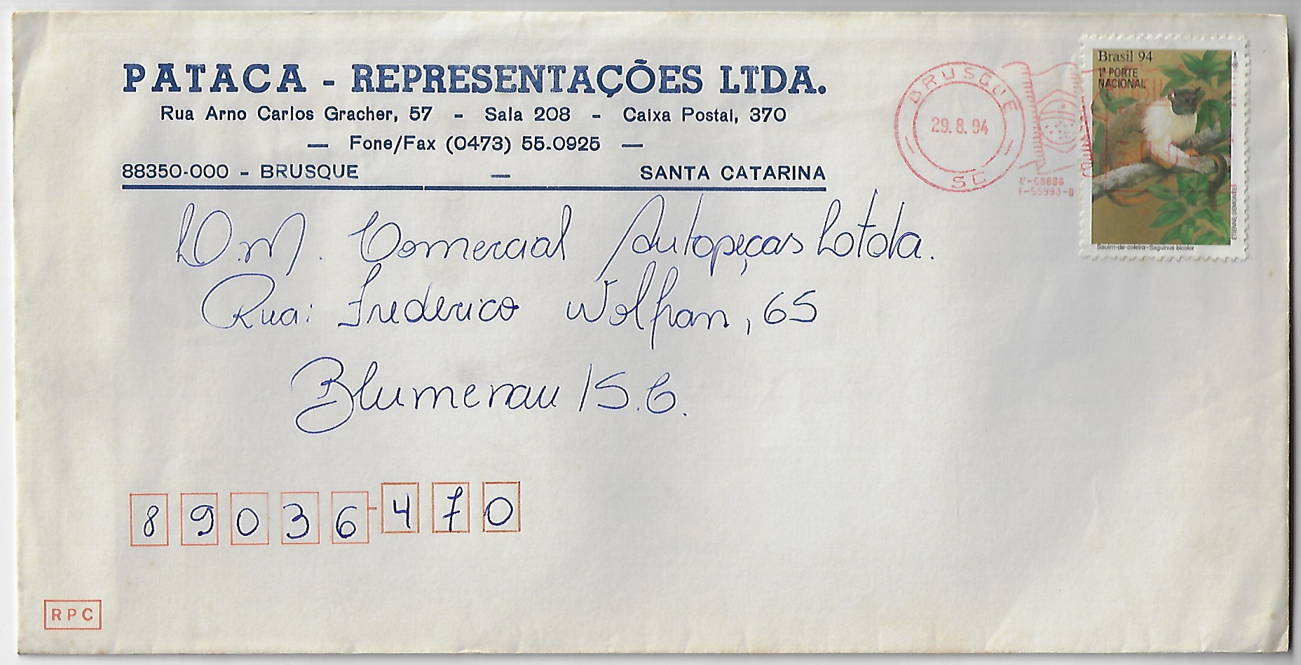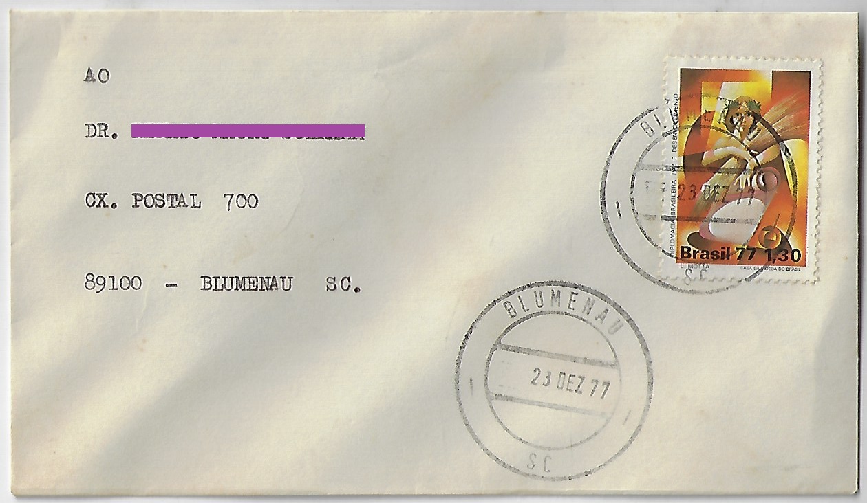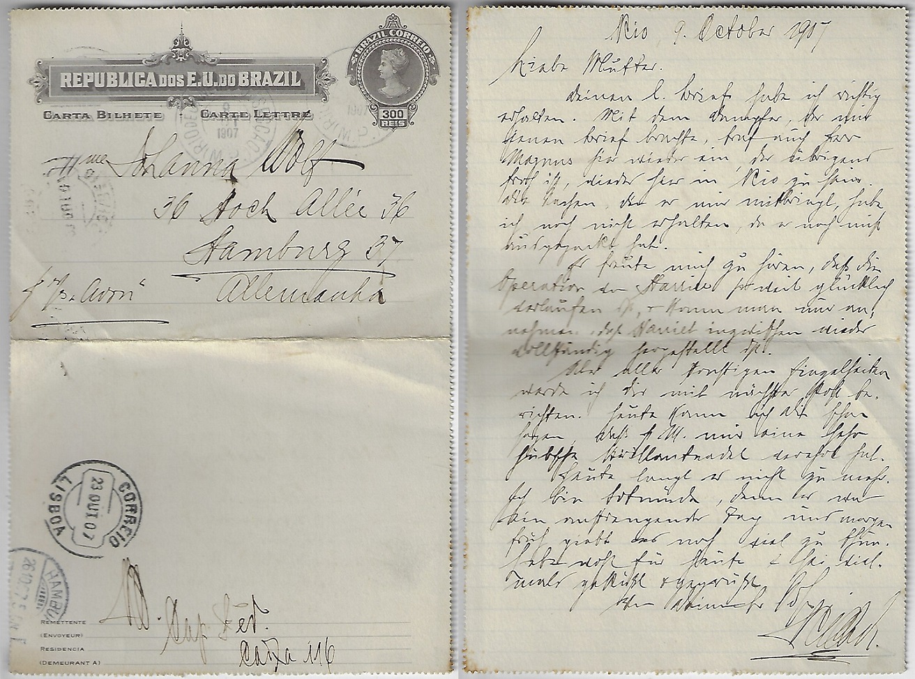 | 77255 | 1900s, inteiro postal CT-19 enviado de Blumenau para Berlin, reendereçado para Groß-Lichterfelde, o destinatário é o parlamentar Hermann Müller-Sagan, 3 selos adicionas para porte internacional caíram | 10,00 | Foto |
