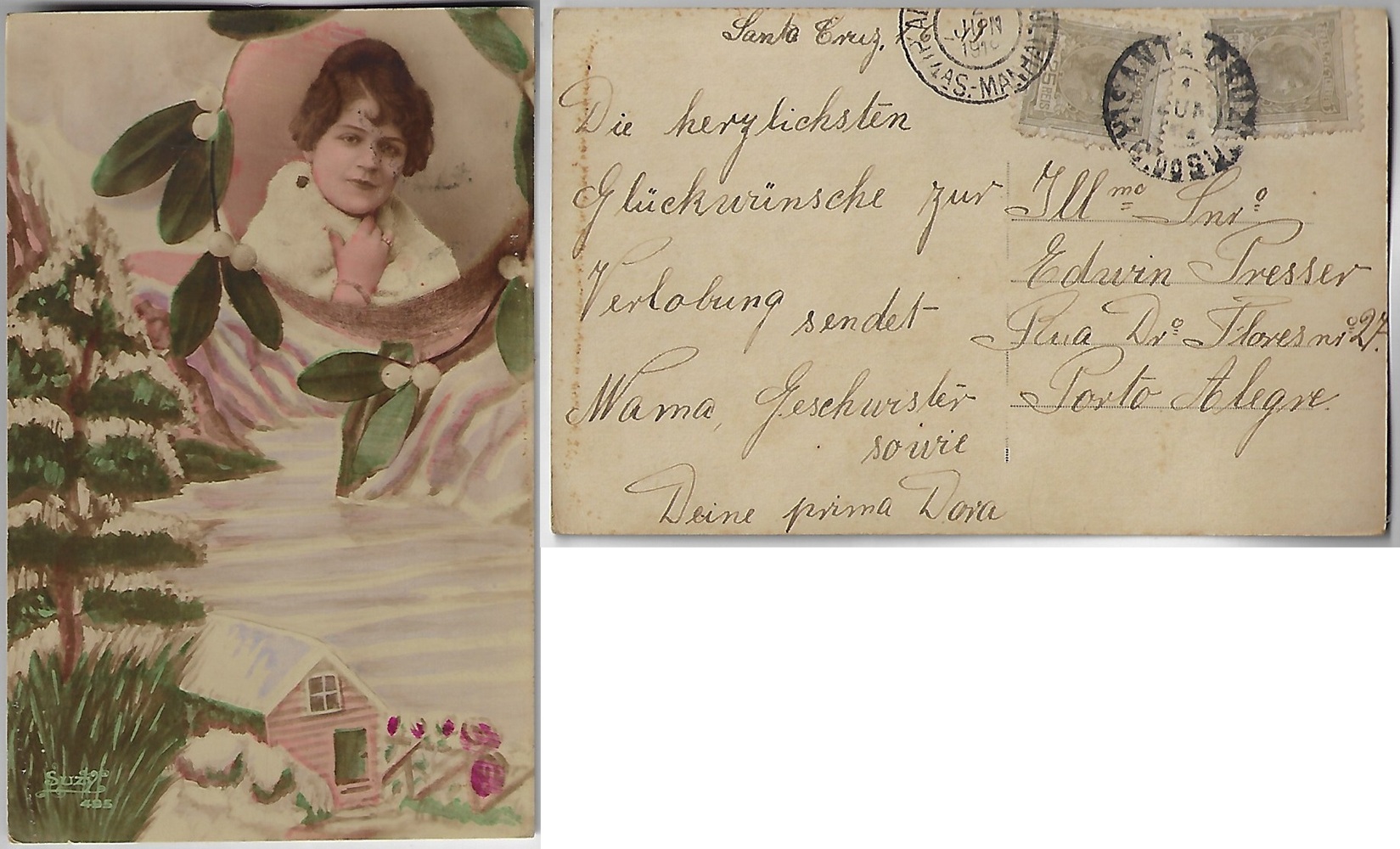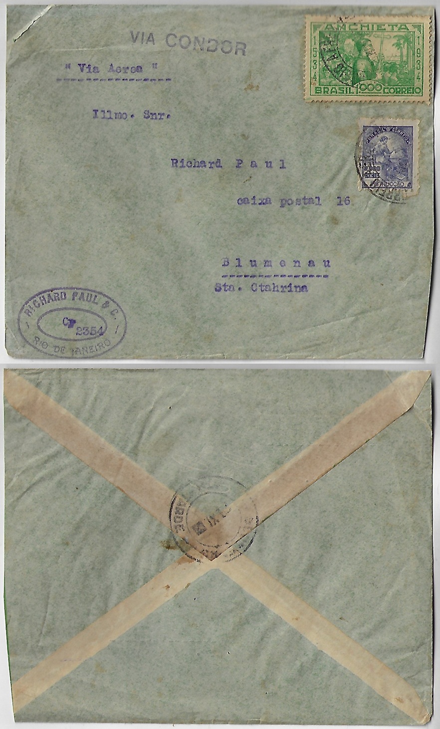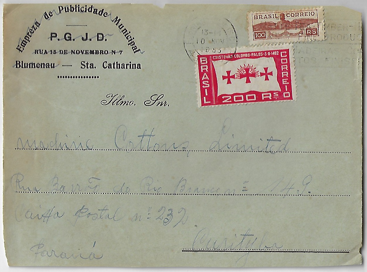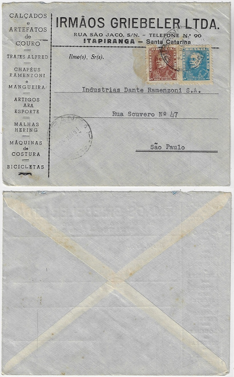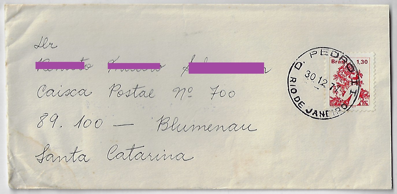 | 77255 | 1900s, inteiro postal CT-19 enviado de Blumenau para Berlin, reendereçado para Groß-Lichterfelde, o destinatário é o parlamentar Hermann Müller-Sagan, 3 selos adicionas para porte internacional caíram | 10,00 | Foto |