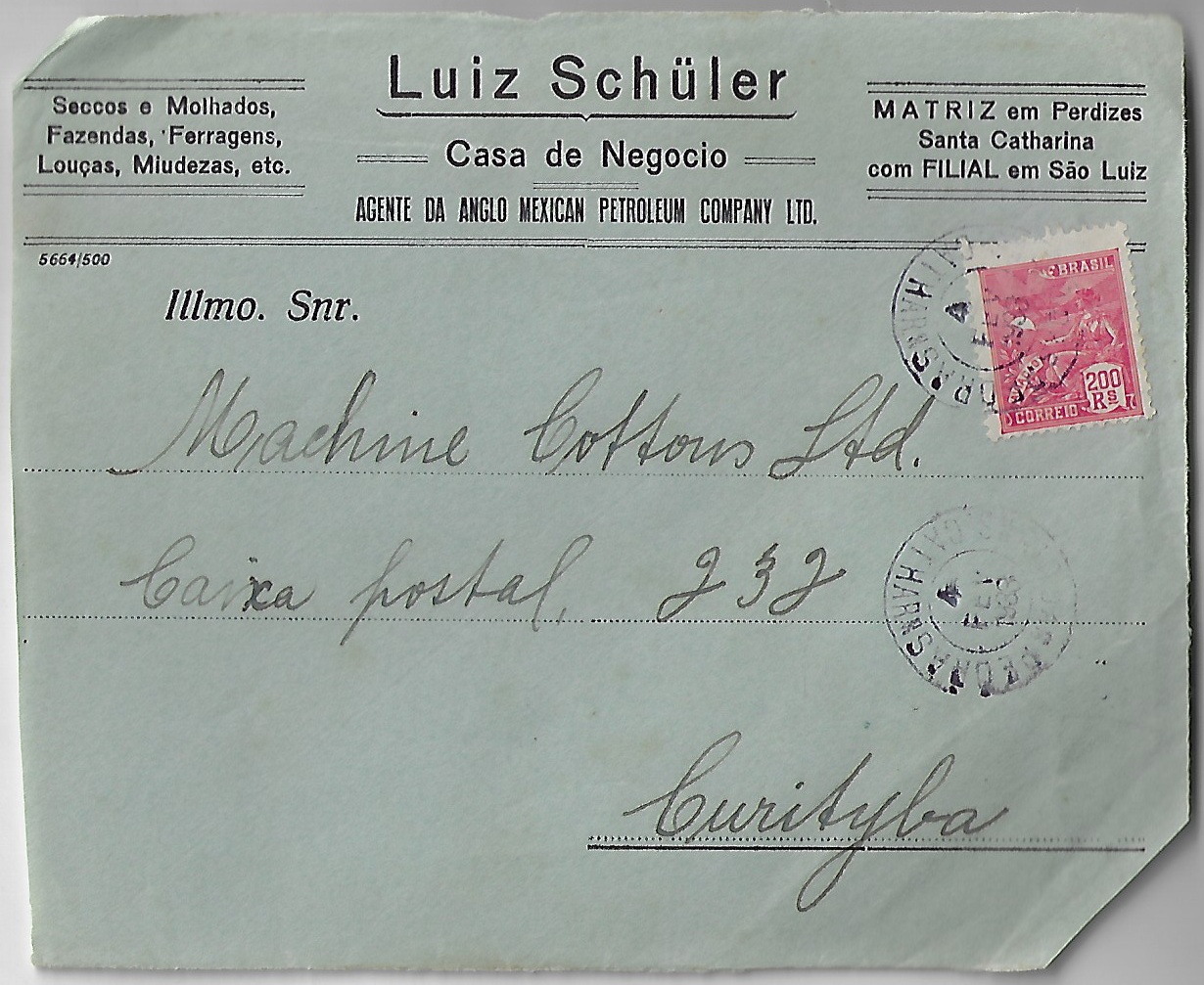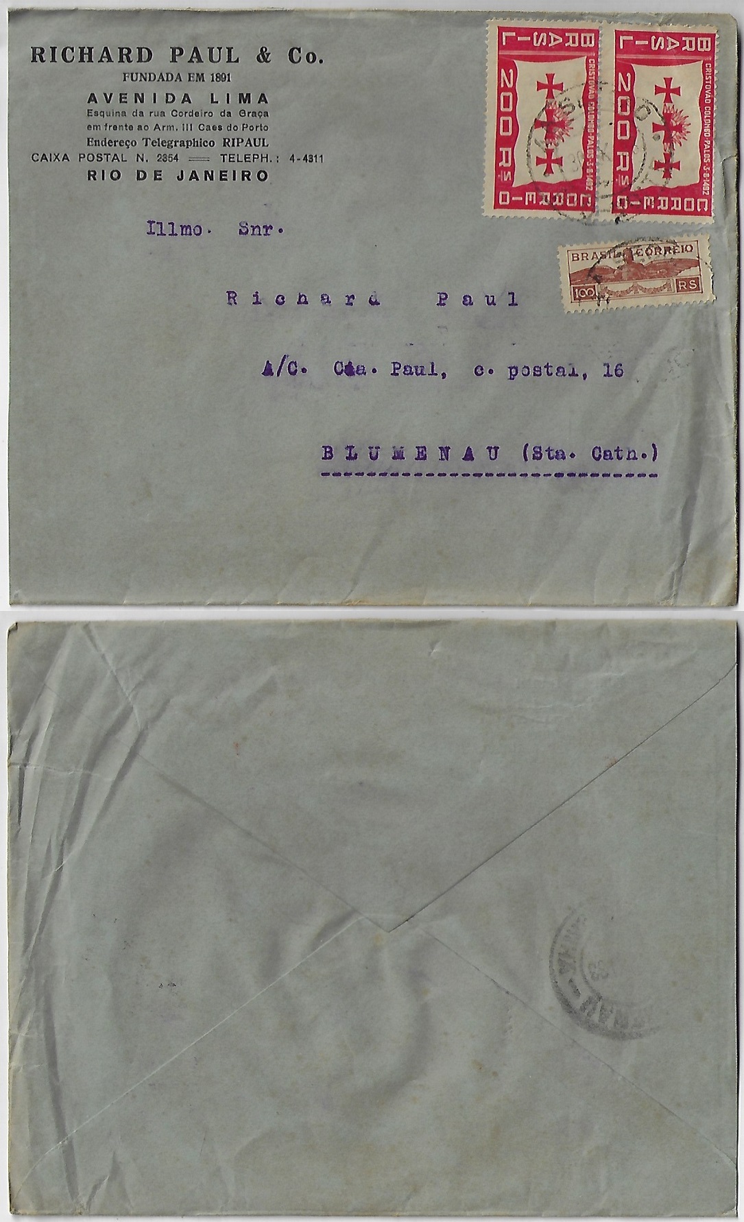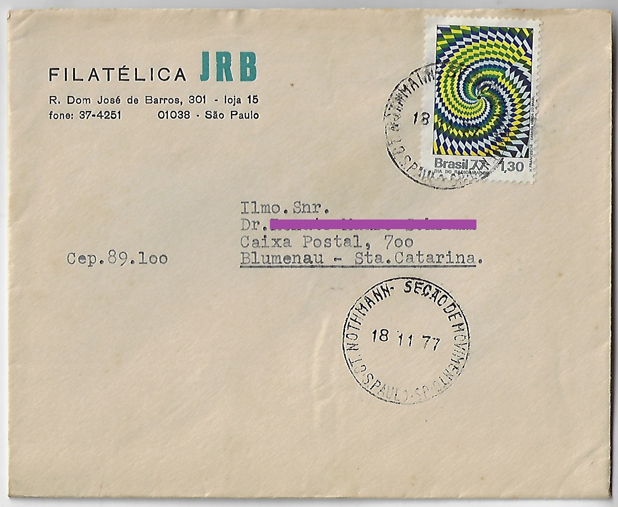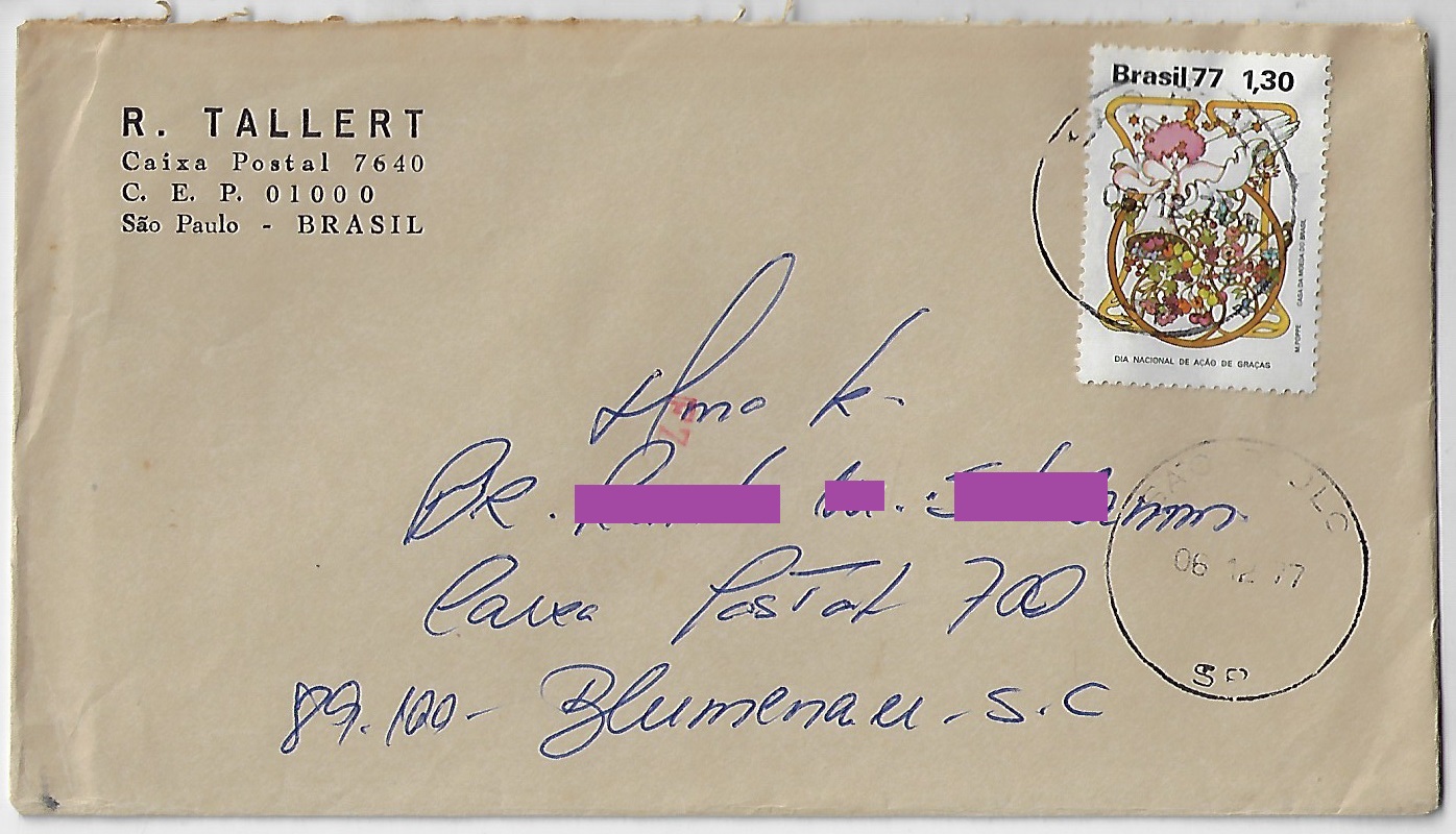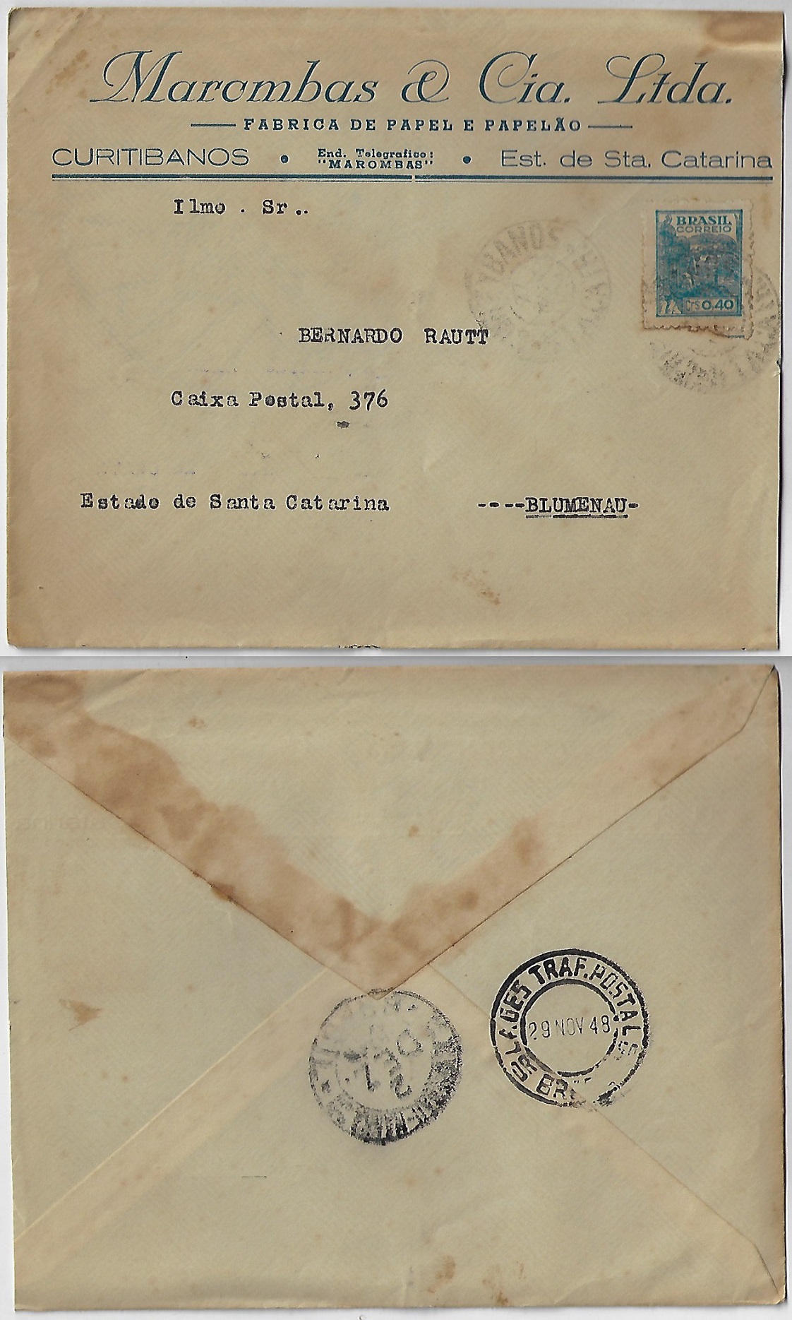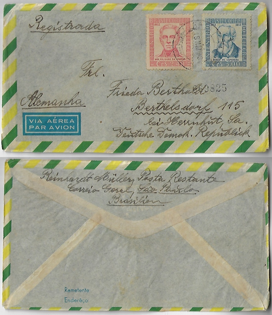 | 77255 | 1900s, inteiro postal CT-19 enviado de Blumenau para Berlin, reendereçado para Groß-Lichterfelde, o destinatário é o parlamentar Hermann Müller-Sagan, 3 selos adicionas para porte internacional caíram | 10,00 | Foto |
