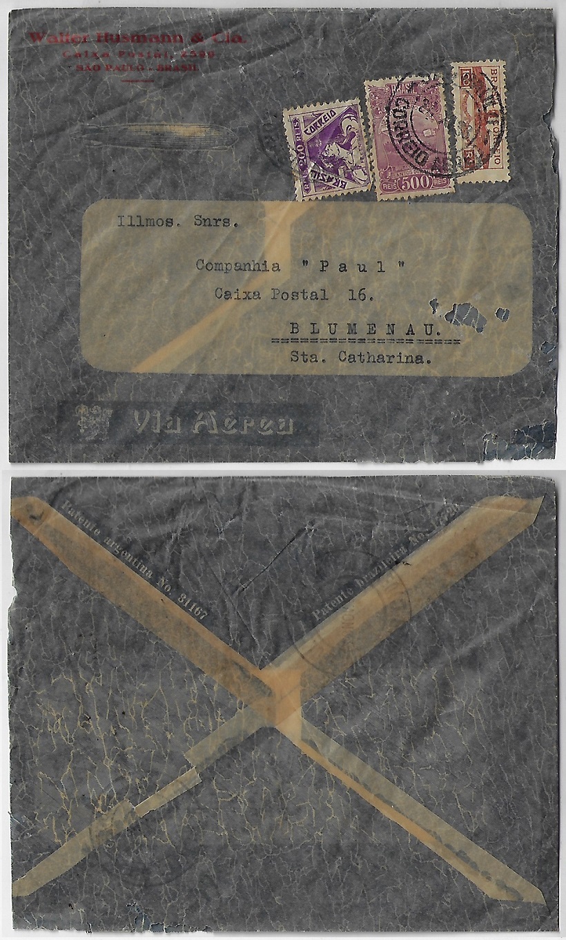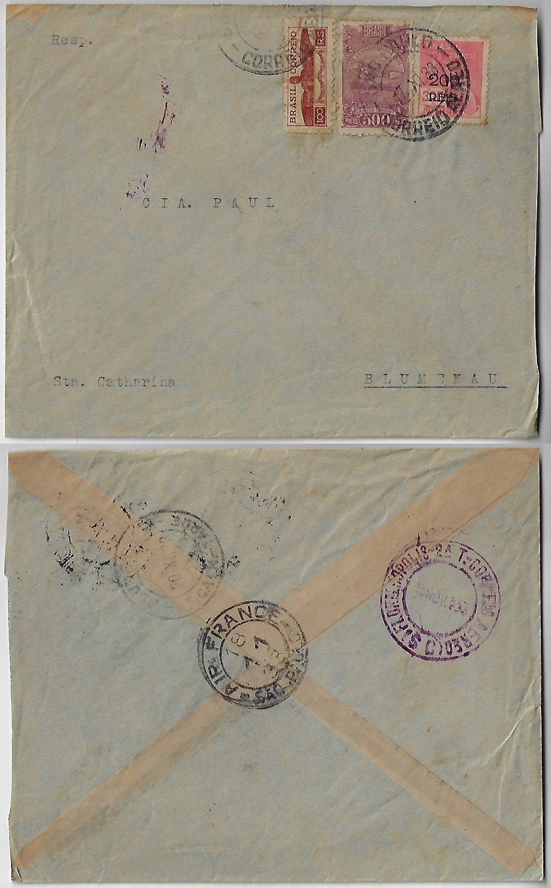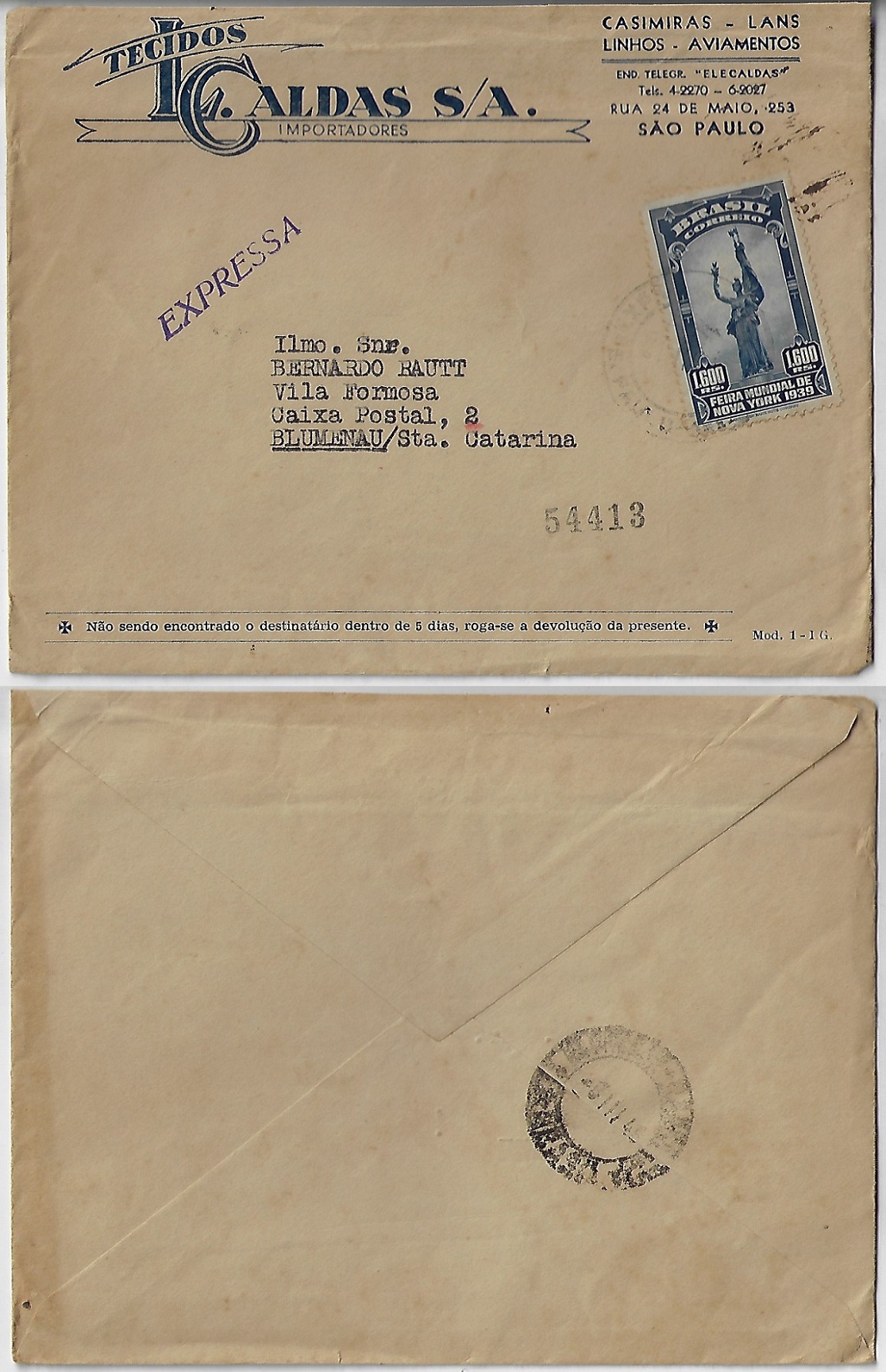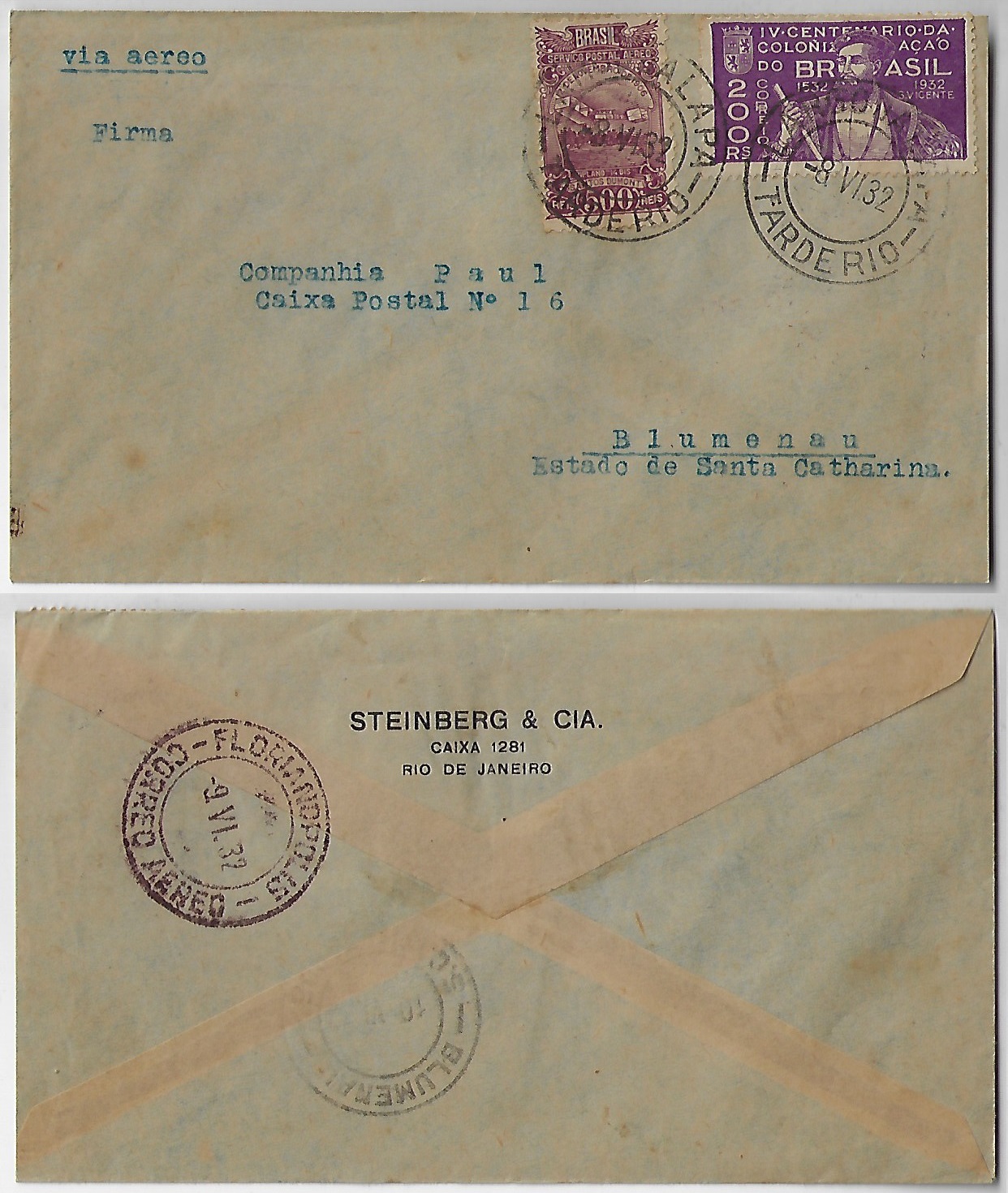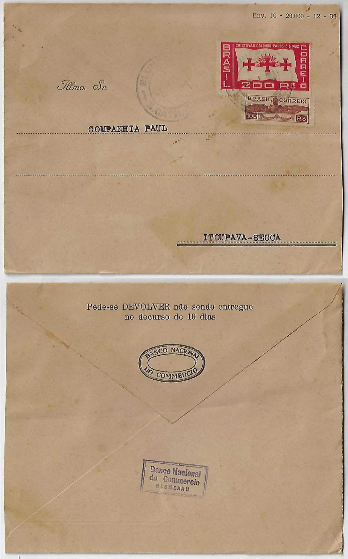 | 77255 | 1900s, inteiro postal CT-19 enviado de Blumenau para Berlin, reendereçado para Groß-Lichterfelde, o destinatário é o parlamentar Hermann Müller-Sagan, 3 selos adicionas para porte internacional caíram | 10,00 | Foto |