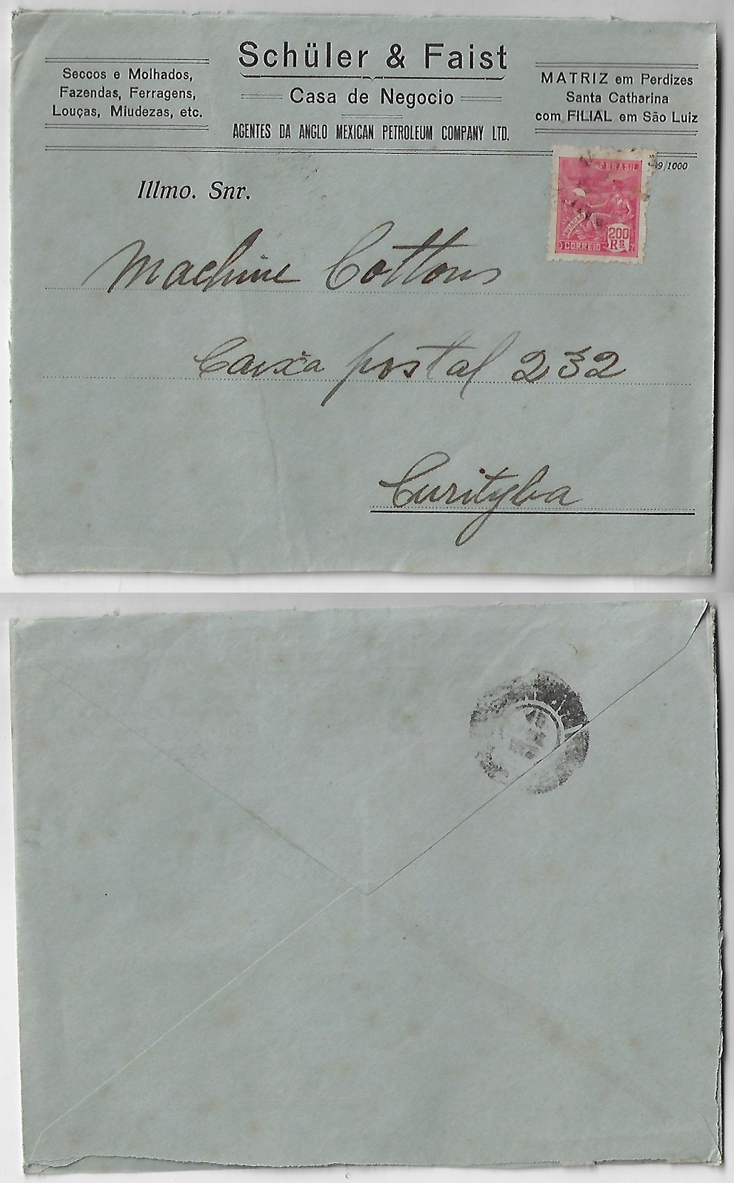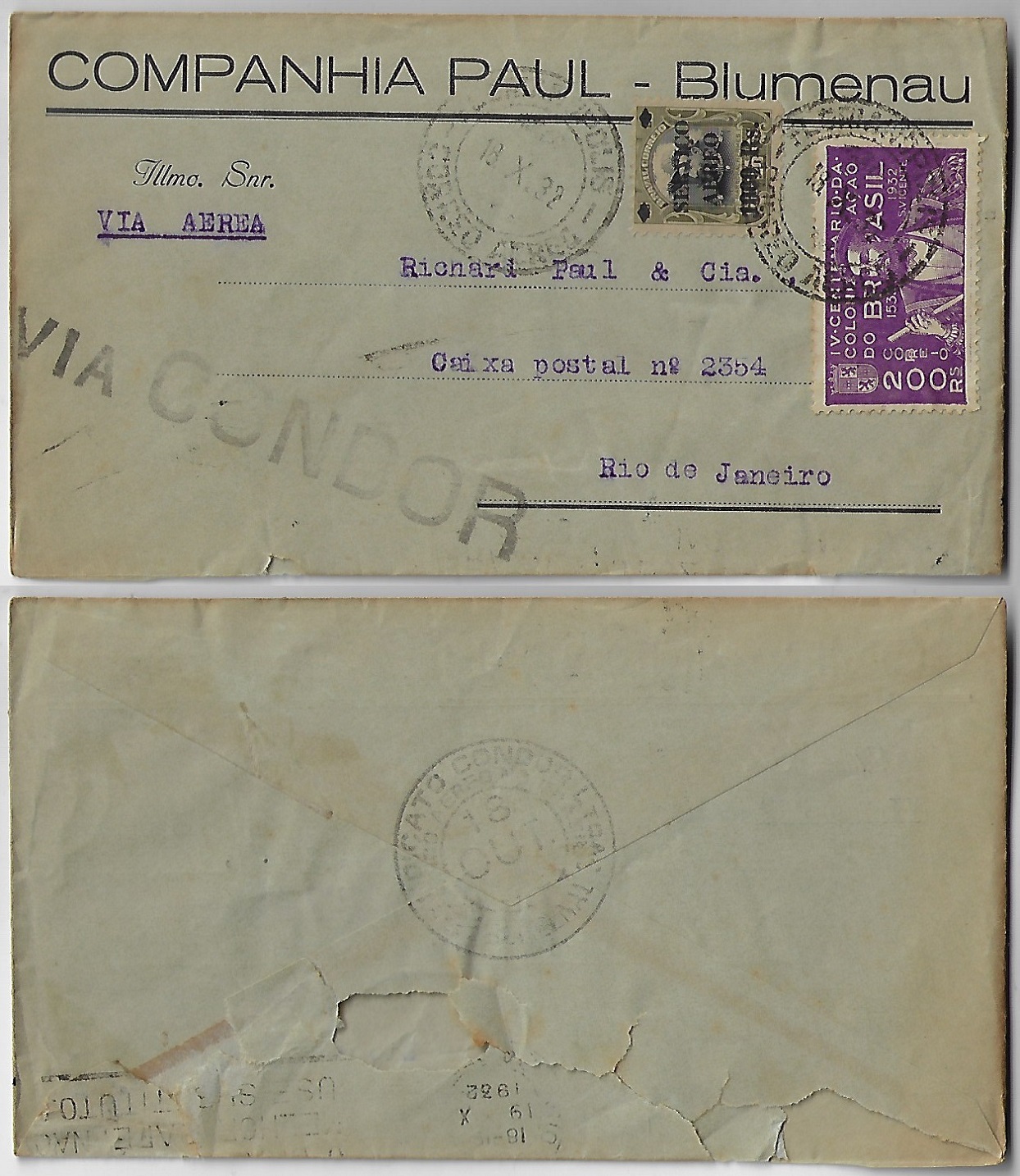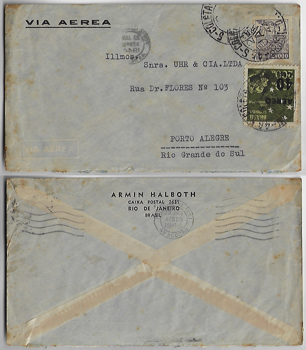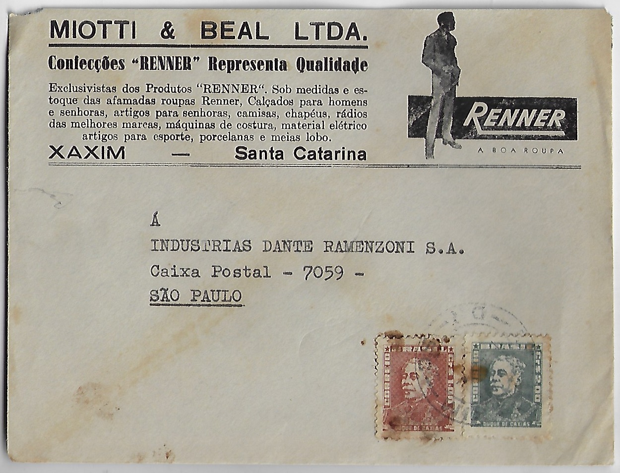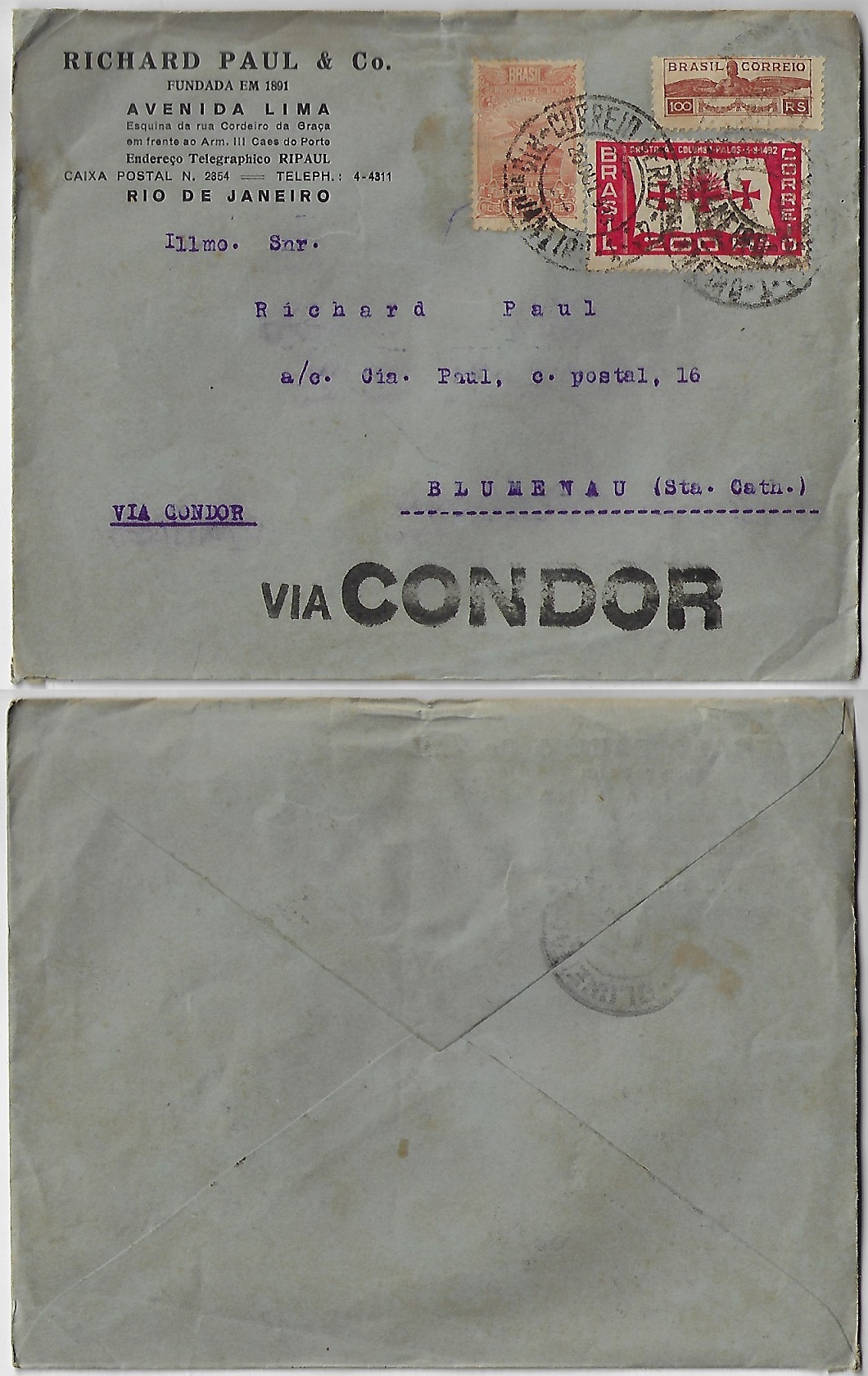 | 77255 | 1900s, inteiro postal CT-19 enviado de Blumenau para Berlin, reendereçado para Groß-Lichterfelde, o destinatário é o parlamentar Hermann Müller-Sagan, 3 selos adicionas para porte internacional caíram | 10,00 | Foto |