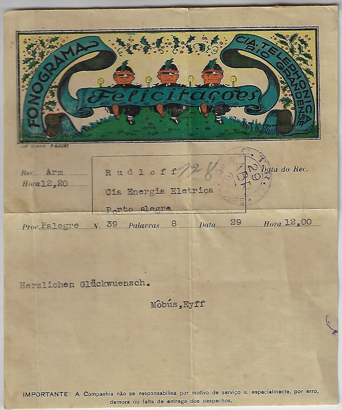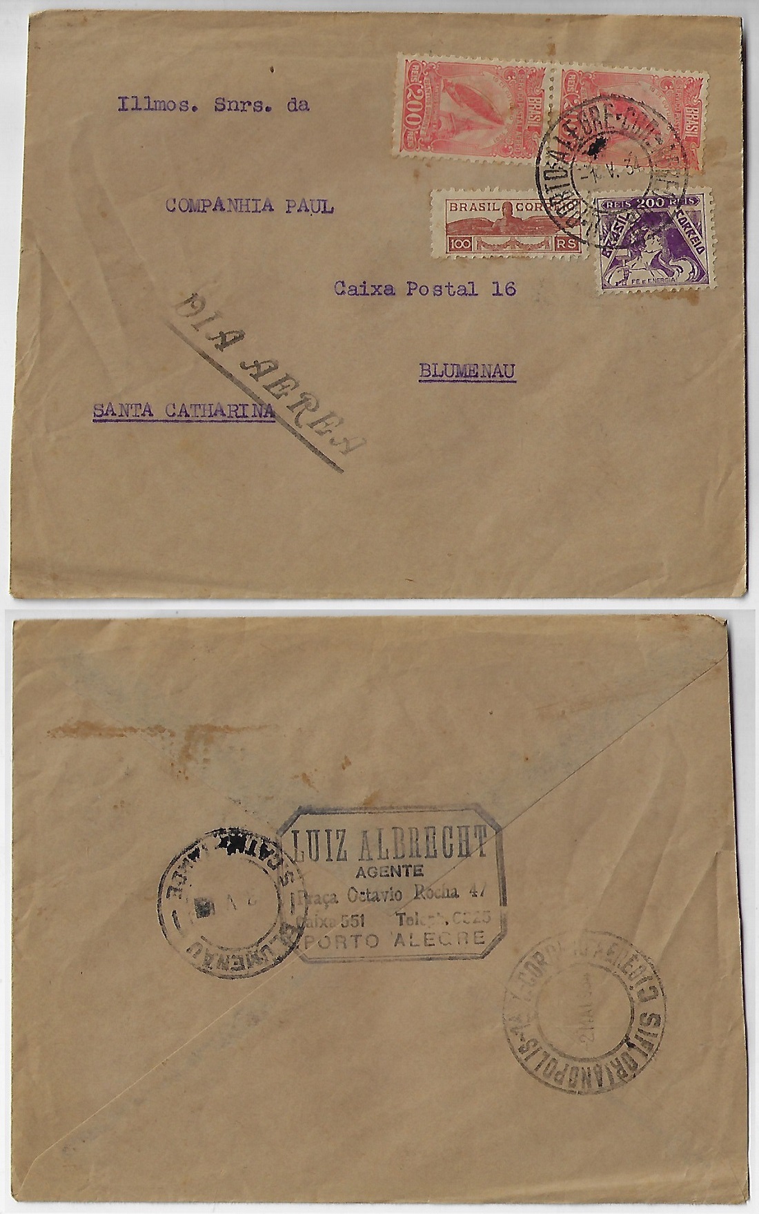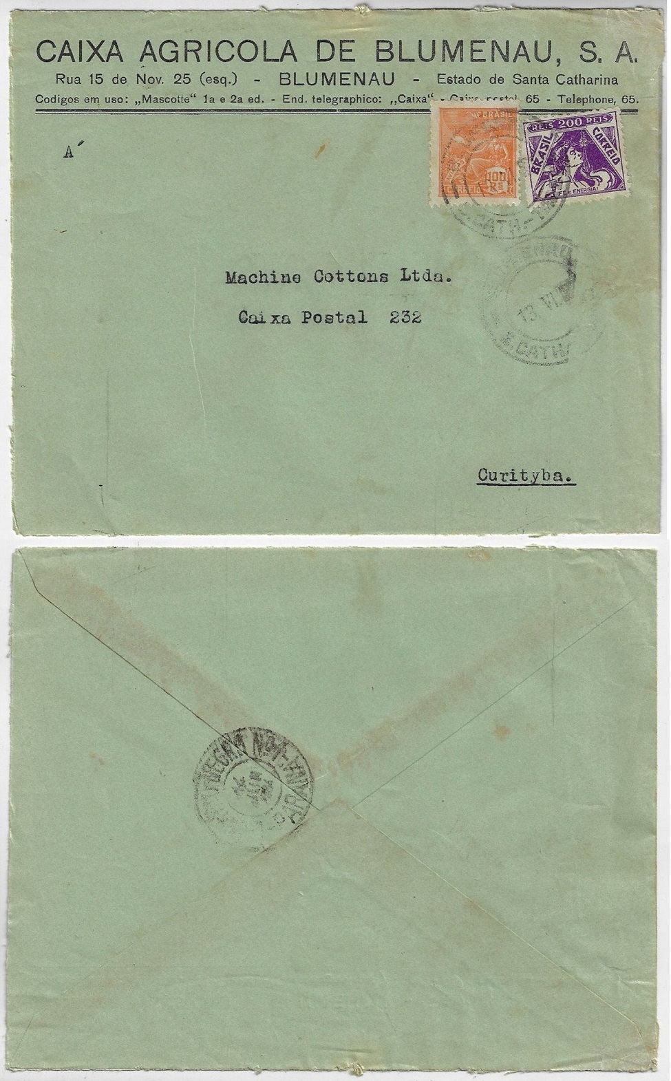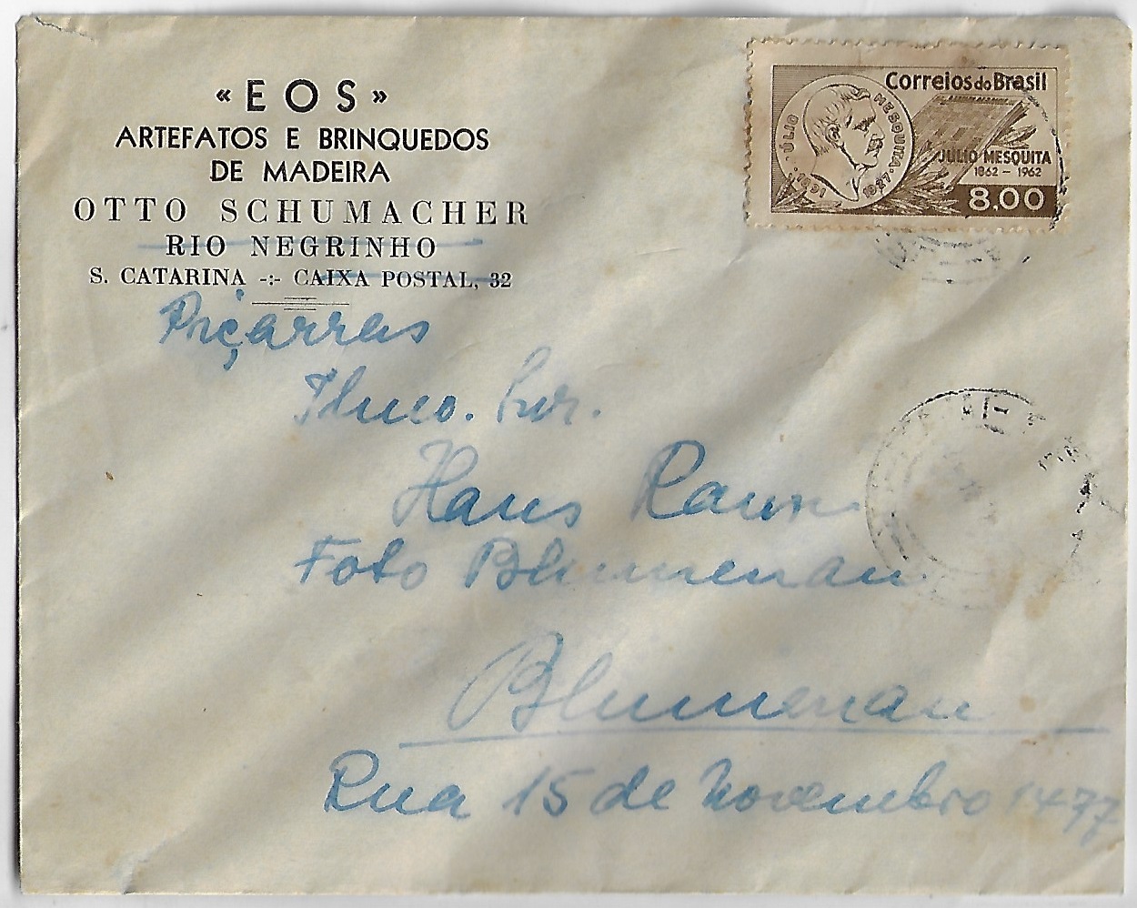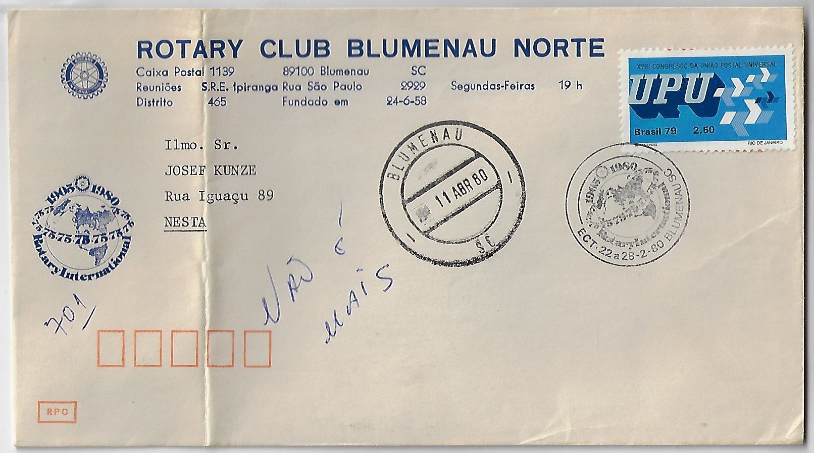 | 77255 | 1900s, inteiro postal CT-19 enviado de Blumenau para Berlin, reendereçado para Groß-Lichterfelde, o destinatário é o parlamentar Hermann Müller-Sagan, 3 selos adicionas para porte internacional caíram | 10,00 | Foto |