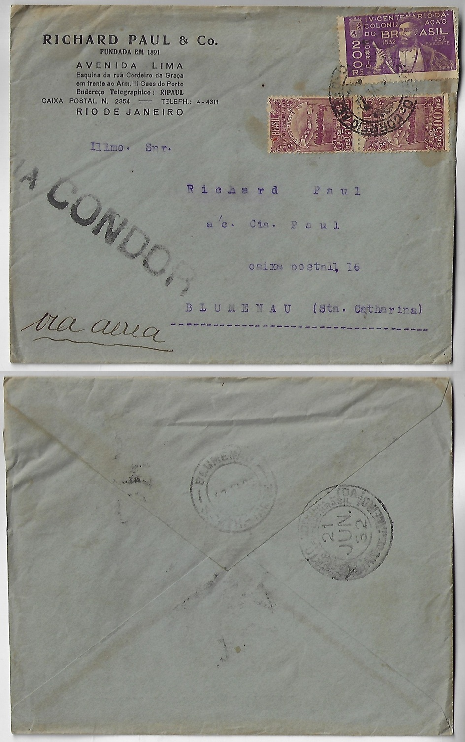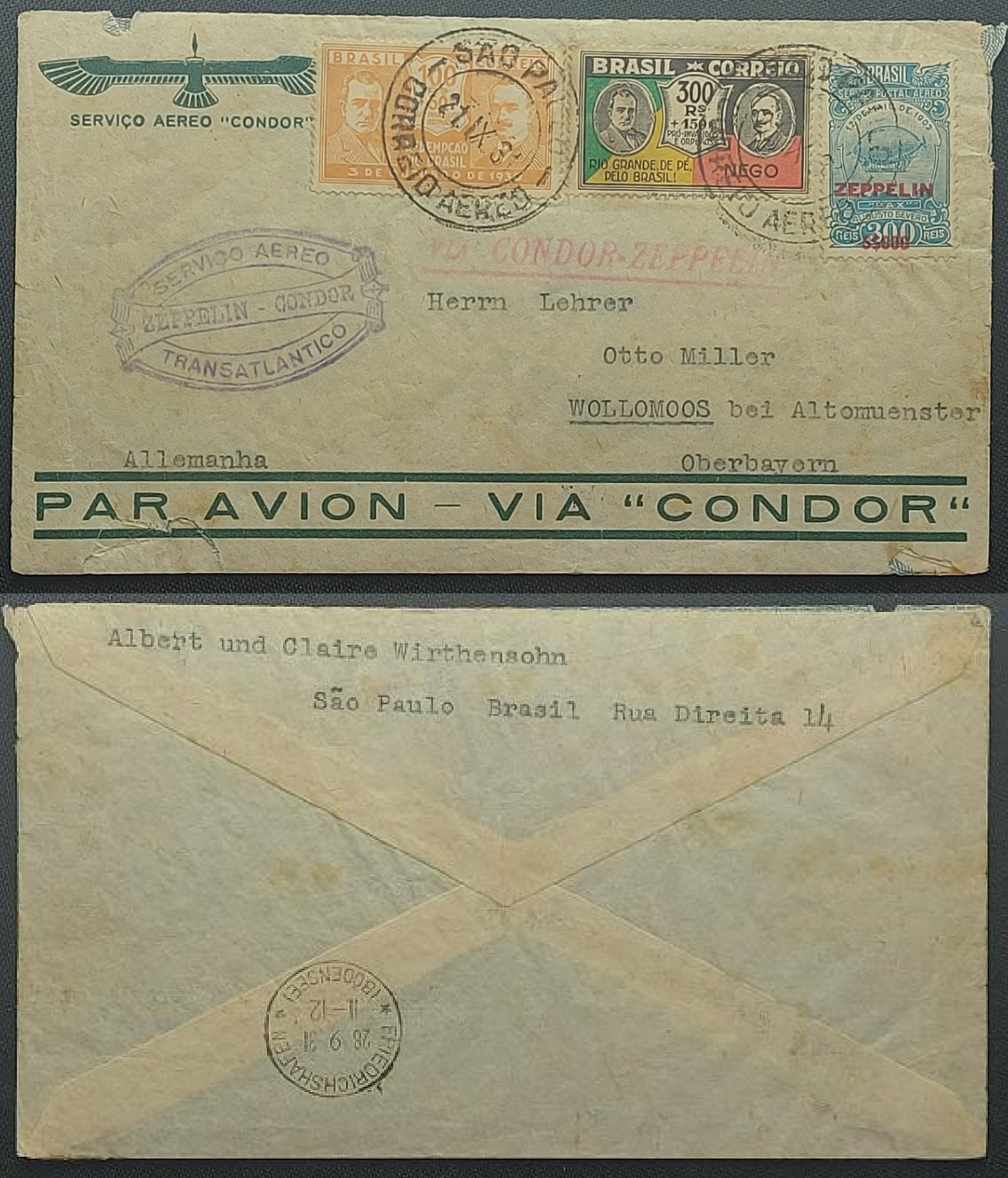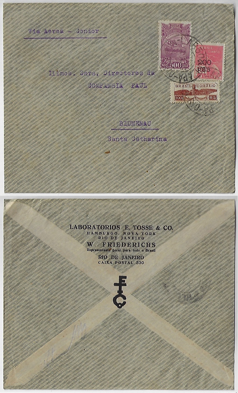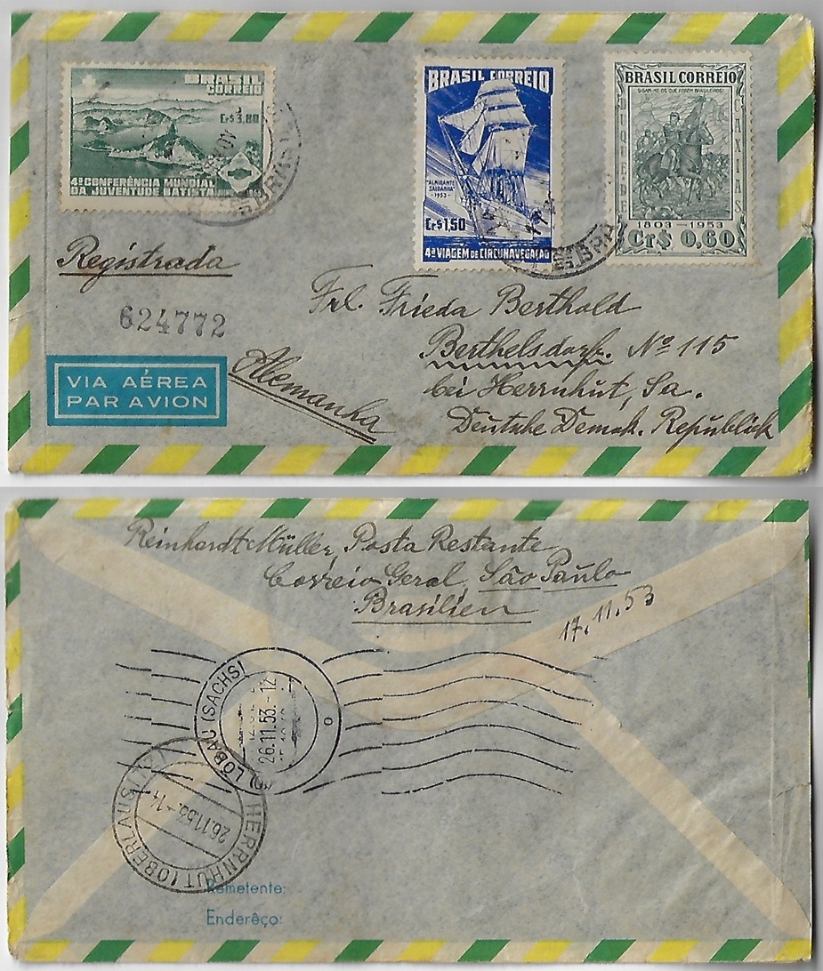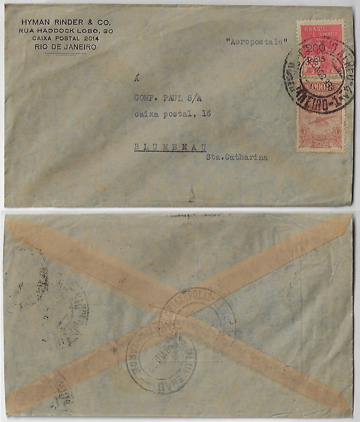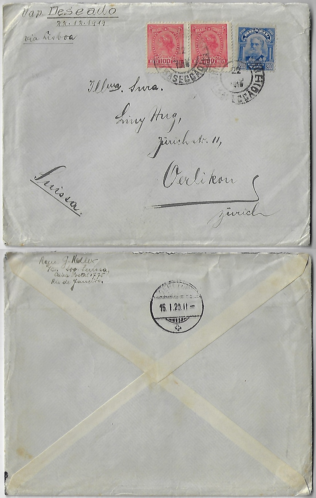| 77255 | 1900s, inteiro postal CT-19 enviado de Blumenau para Berlin, reendereçado para Groß-Lichterfelde, o destinatário é o parlamentar Hermann Müller-Sagan, 3 selos adicionas para porte internacional caíram | 10,00 | Foto |