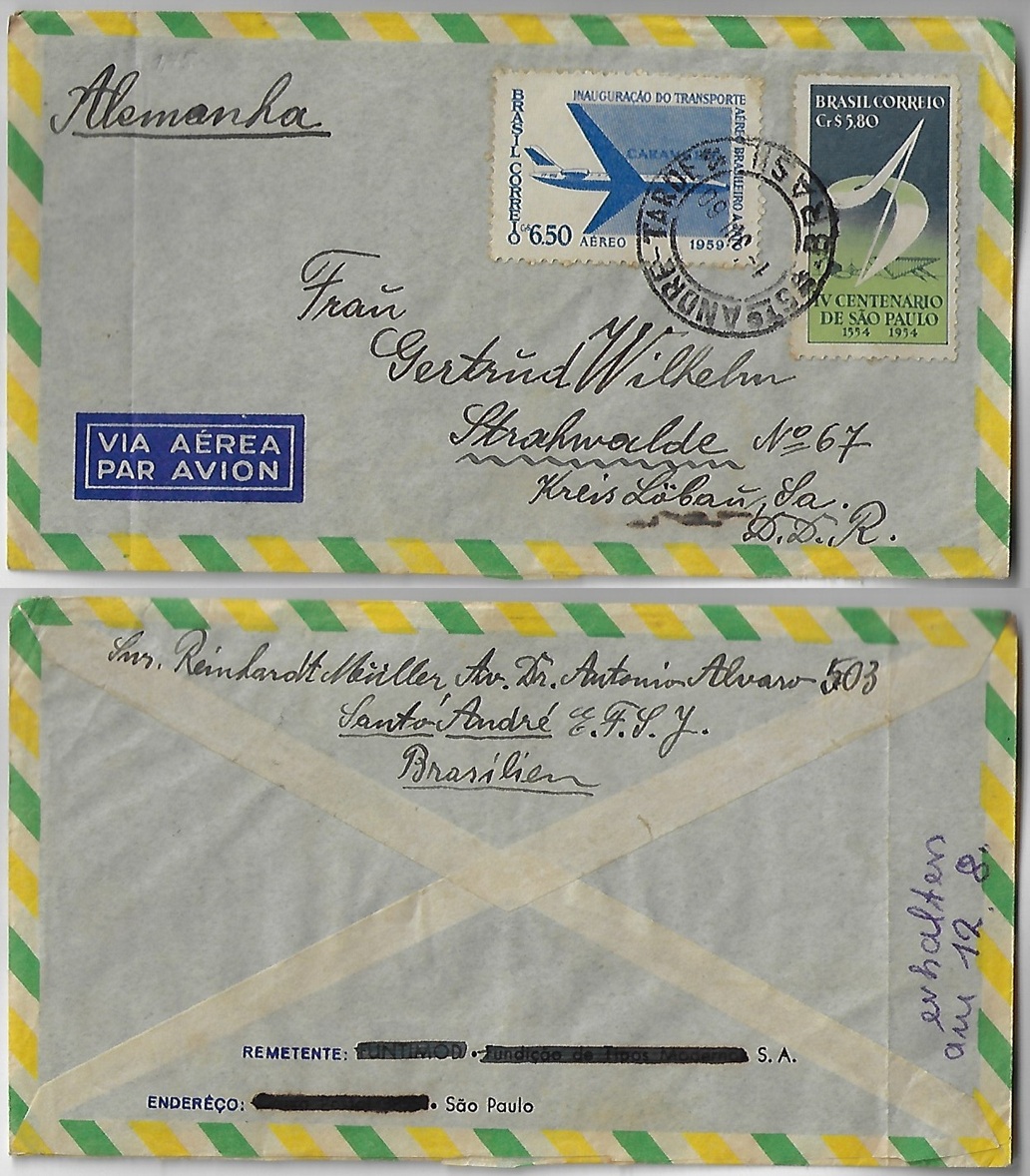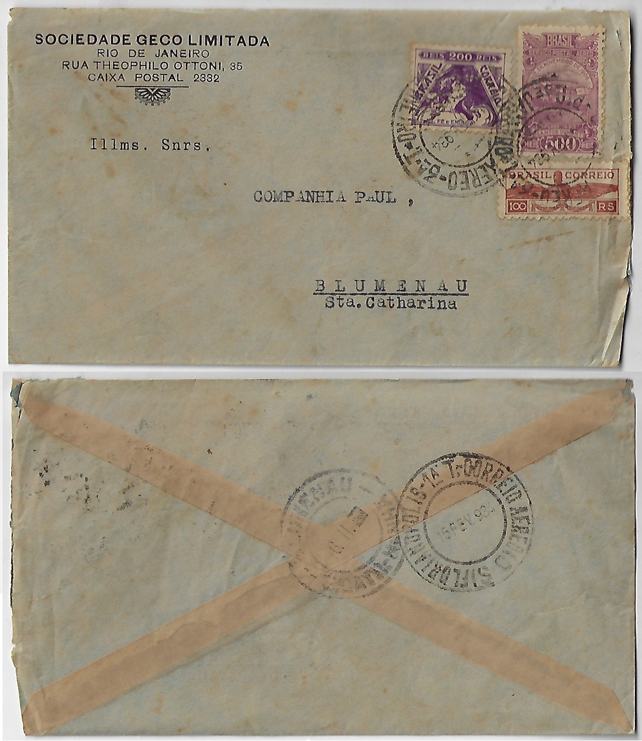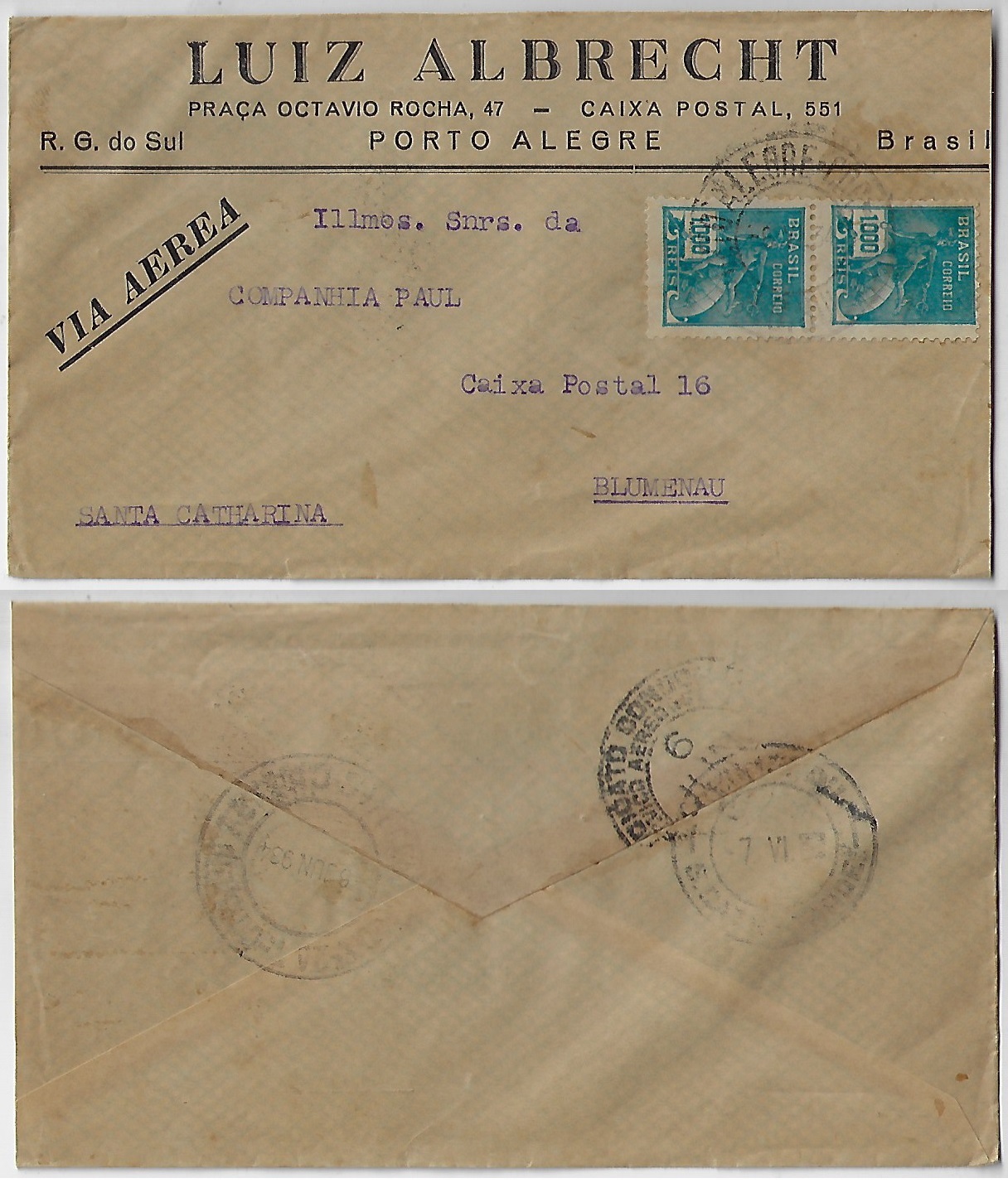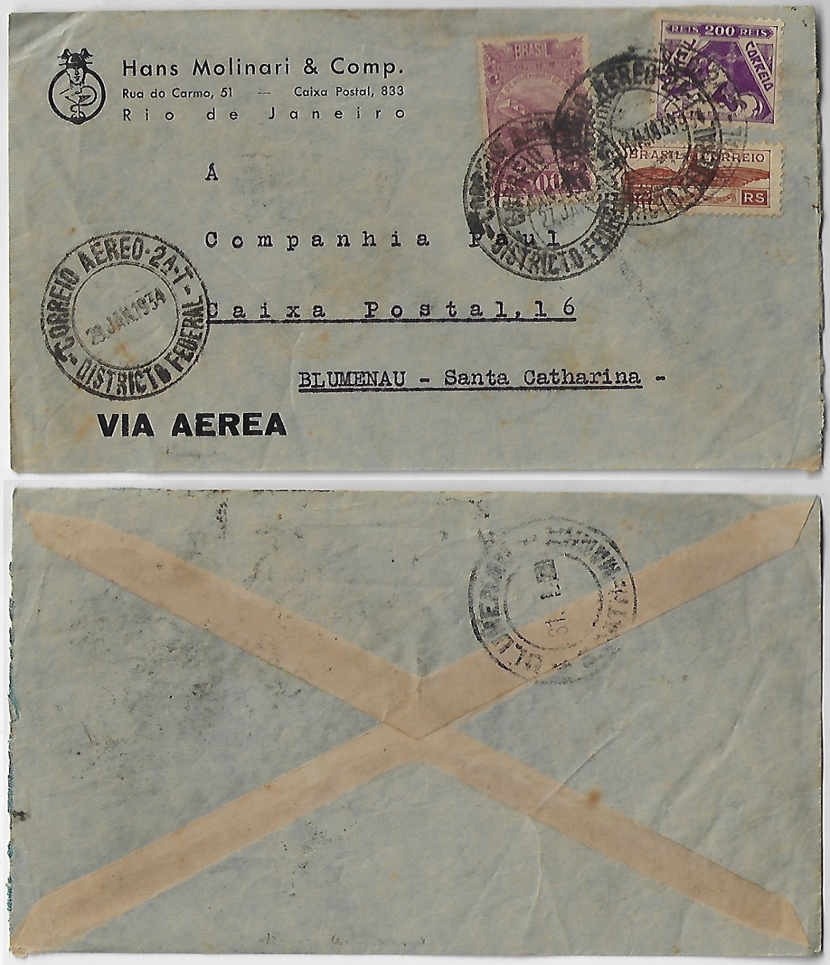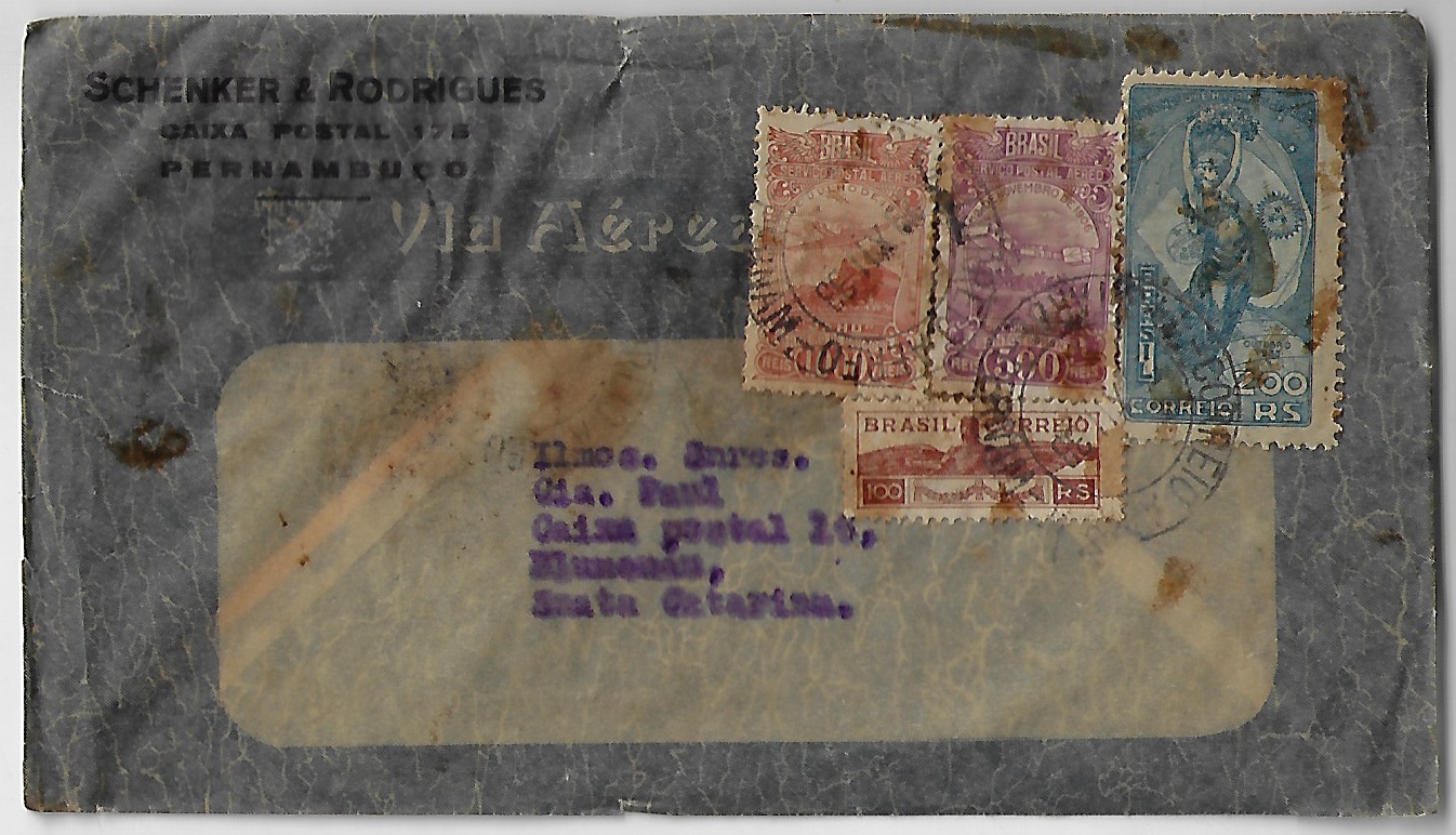 | 77255 | 1900s, inteiro postal CT-19 enviado de Blumenau para Berlin, reendereçado para Groß-Lichterfelde, o destinatário é o parlamentar Hermann Müller-Sagan, 3 selos adicionas para porte internacional caíram | 10,00 | Foto |