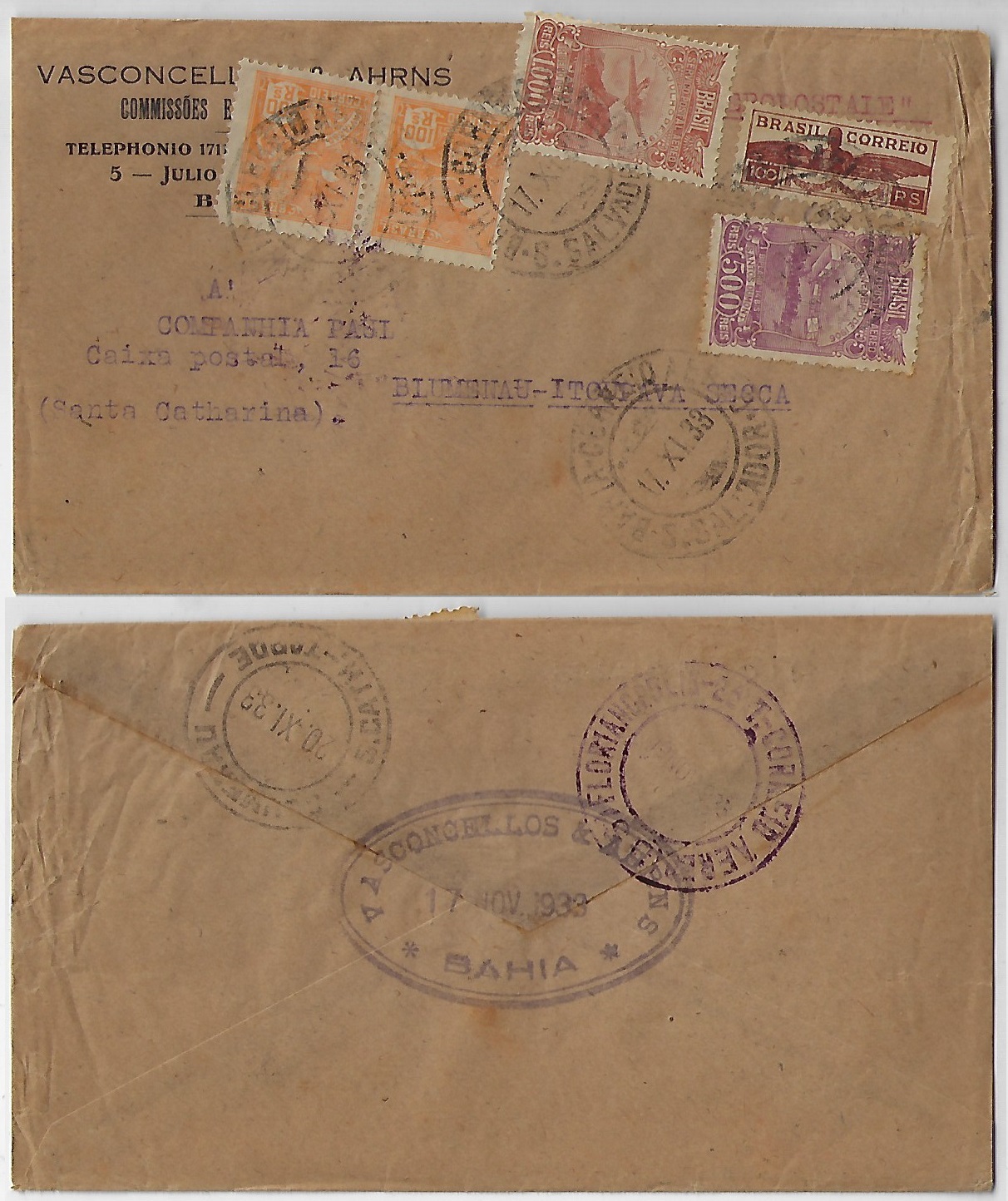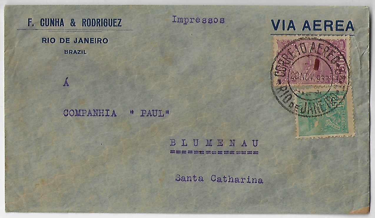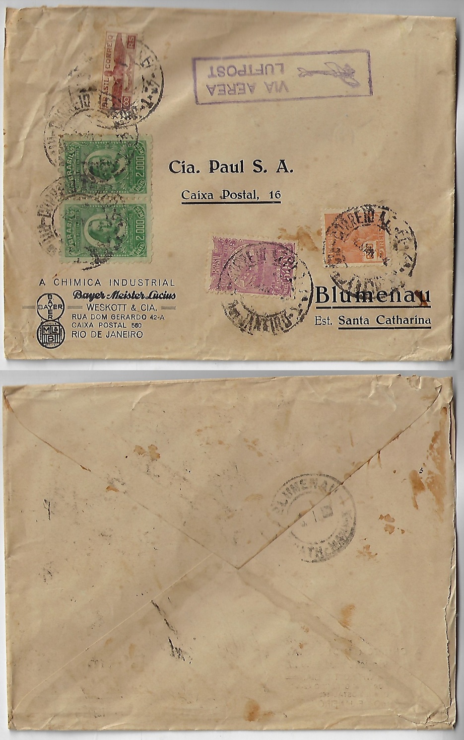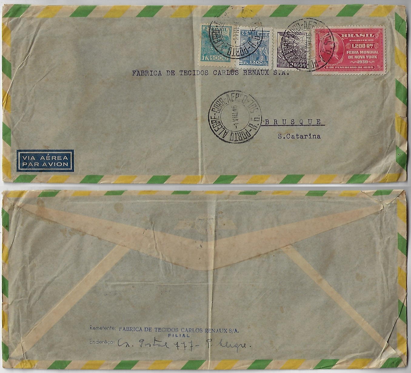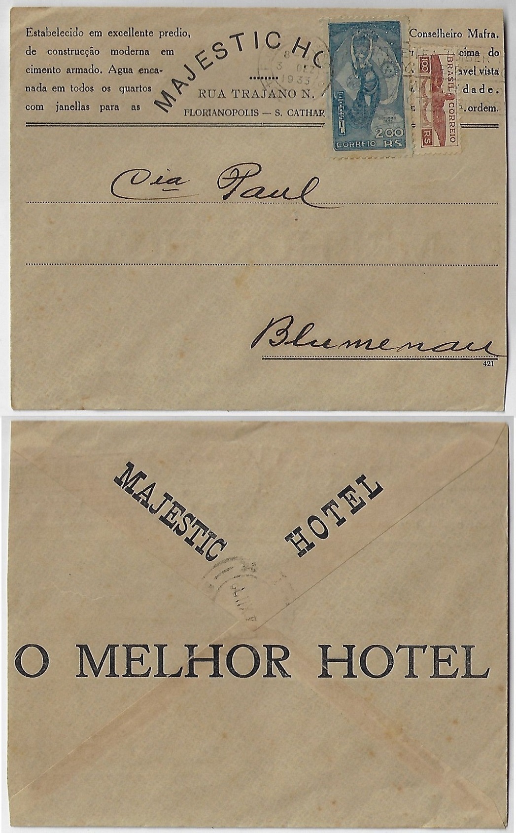 | 77255 | 1900s, inteiro postal CT-19 enviado de Blumenau para Berlin, reendereçado para Groß-Lichterfelde, o destinatário é o parlamentar Hermann Müller-Sagan, 3 selos adicionas para porte internacional caíram | 10,00 | Foto |