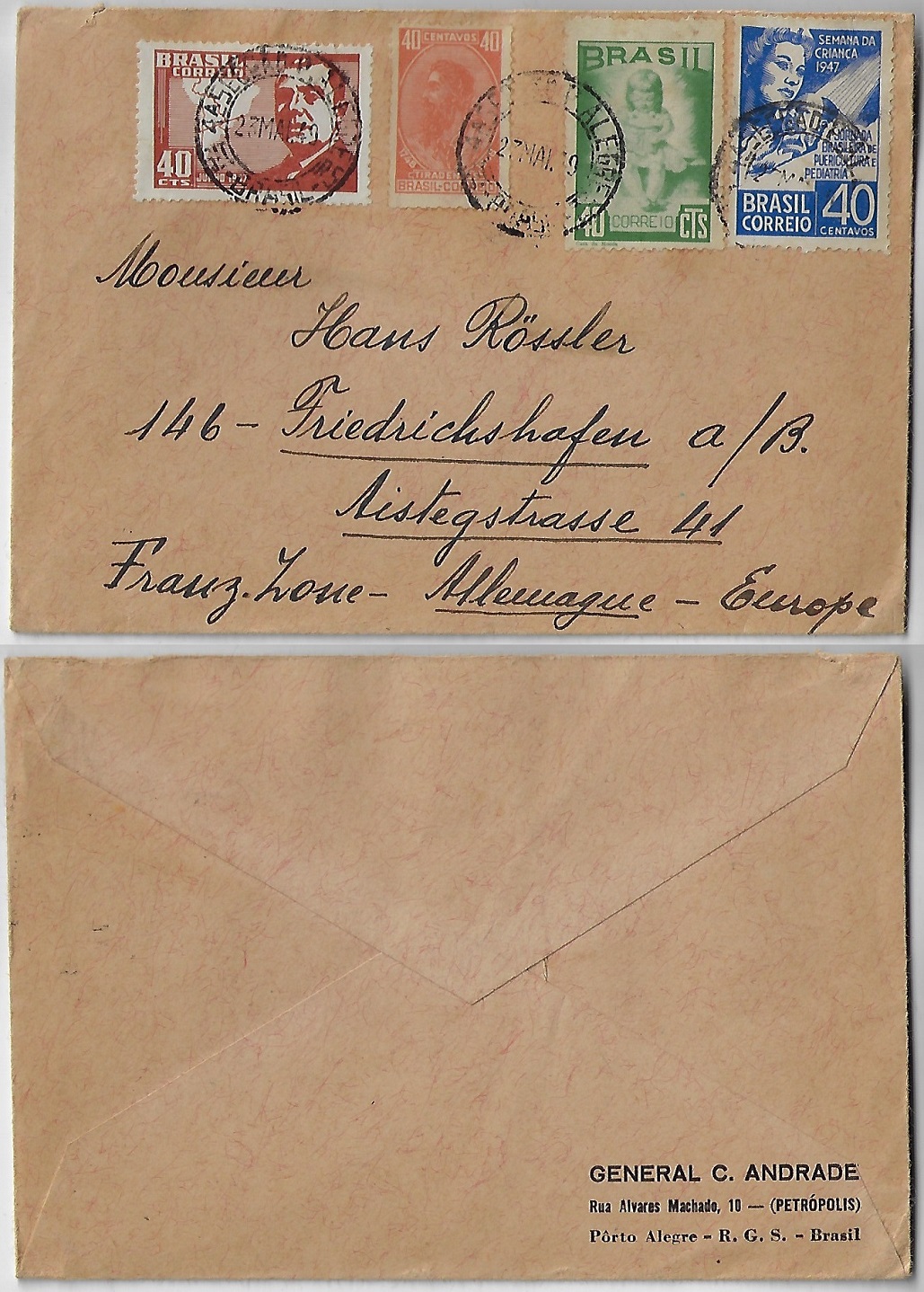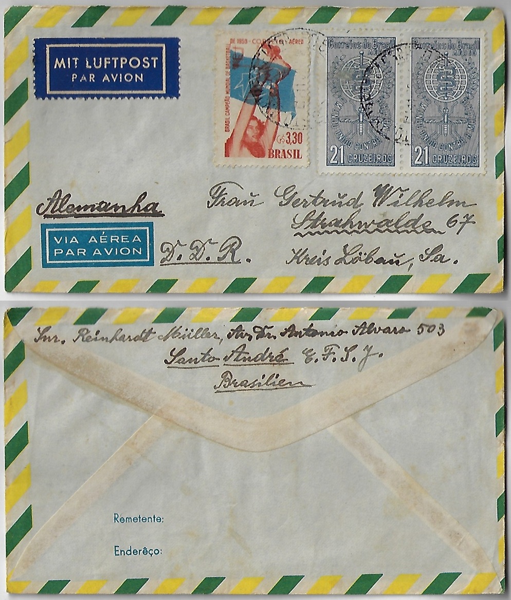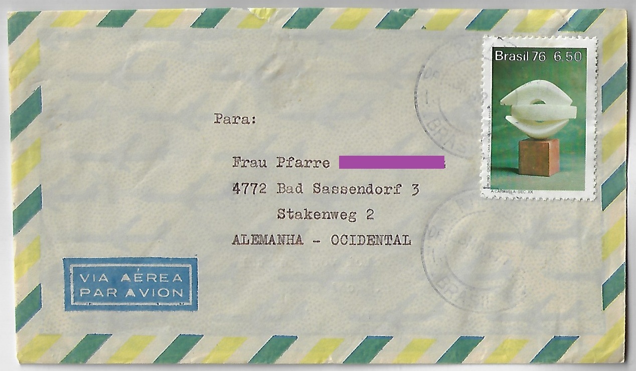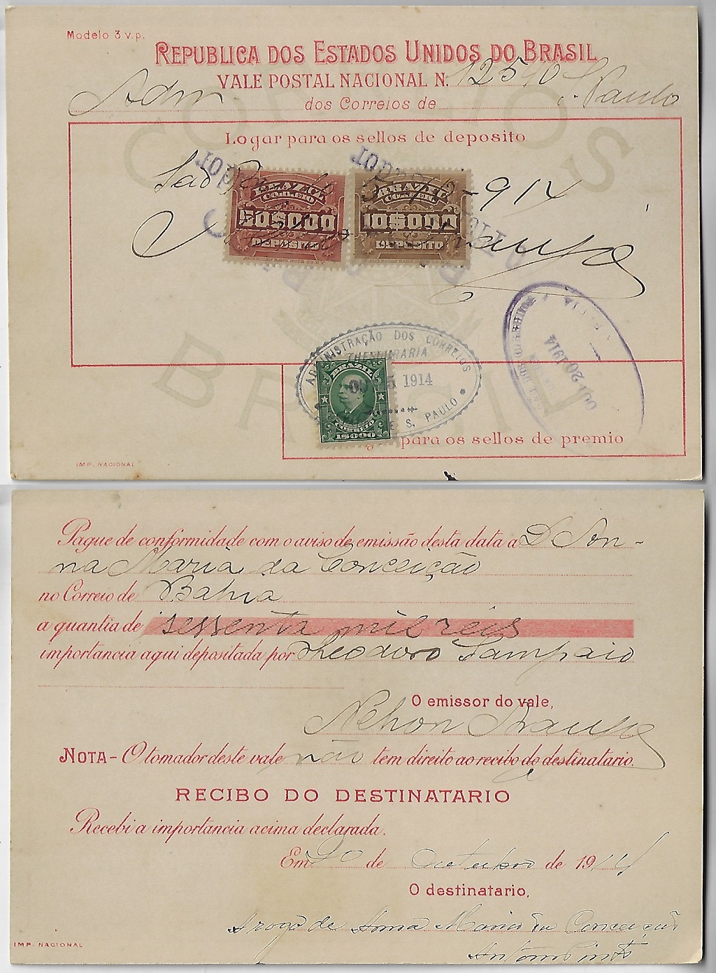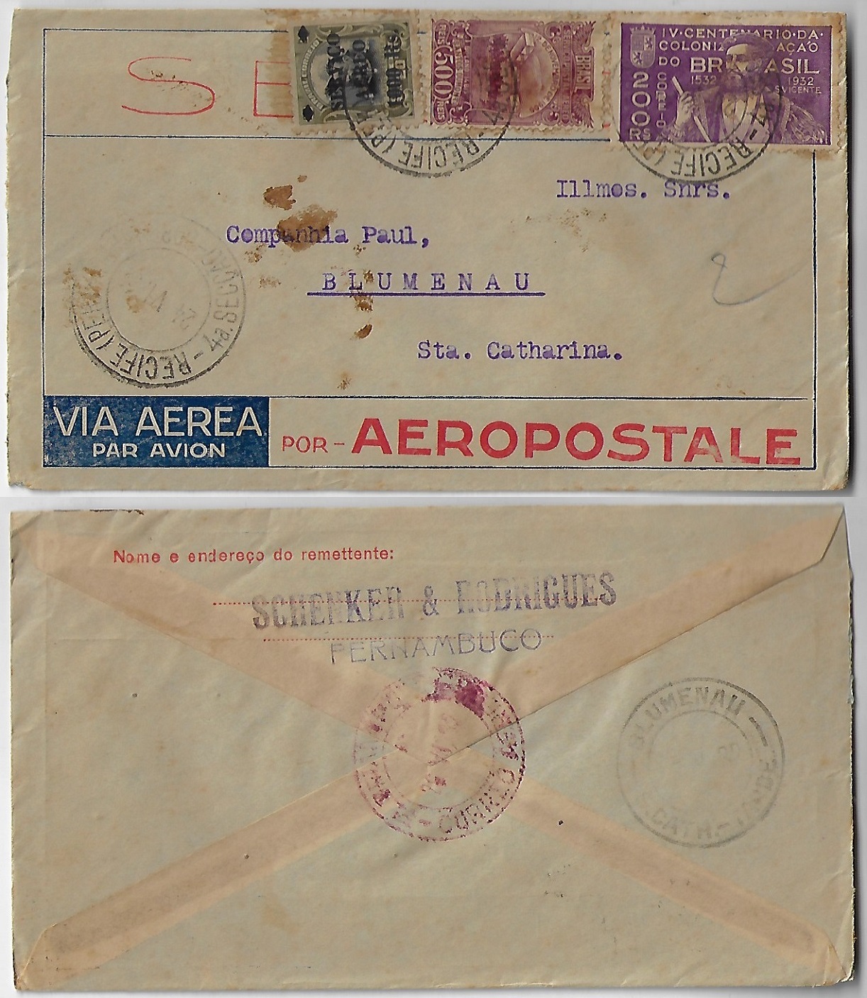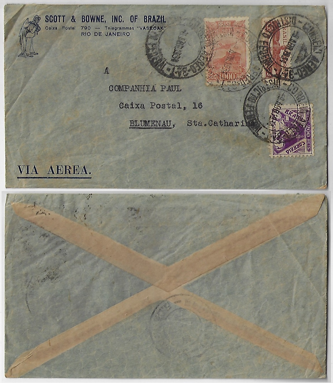 | 77255 | 1900s, inteiro postal CT-19 enviado de Blumenau para Berlin, reendereçado para Groß-Lichterfelde, o destinatário é o parlamentar Hermann Müller-Sagan, 3 selos adicionas para porte internacional caíram | 10,00 | Foto |
