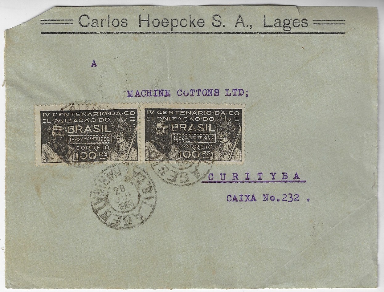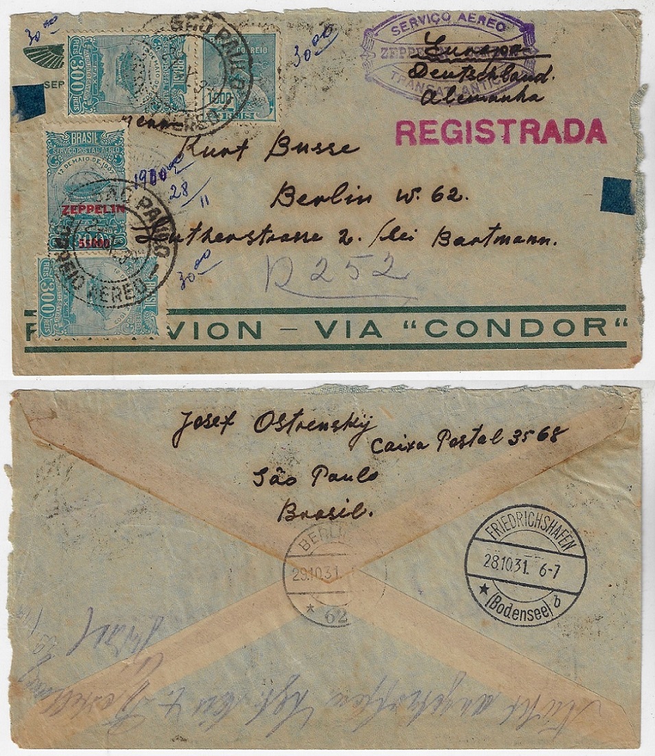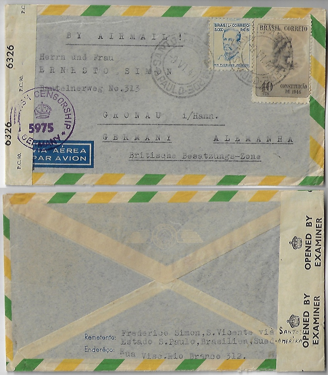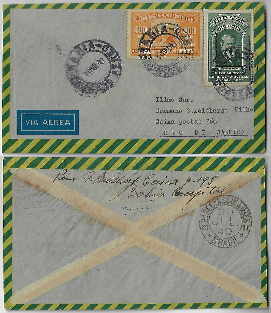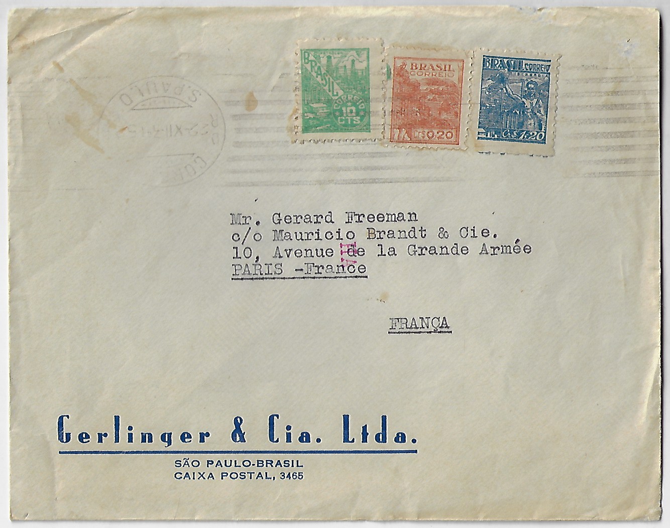| 77255 | 1900s, inteiro postal CT-19 enviado de Blumenau para Berlin, reendereçado para Groß-Lichterfelde, o destinatário é o parlamentar Hermann Müller-Sagan, 3 selos adicionas para porte internacional caíram | 10,00 | Foto |