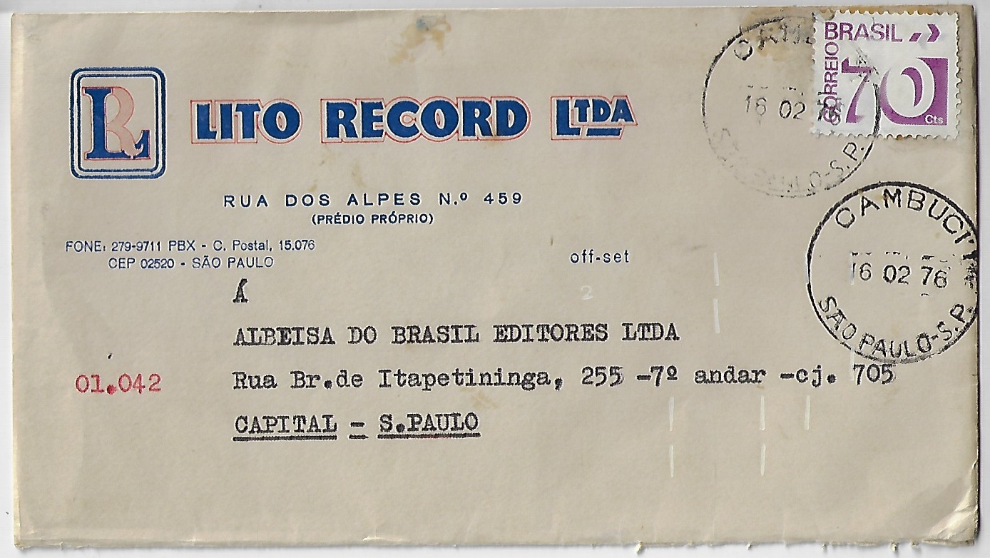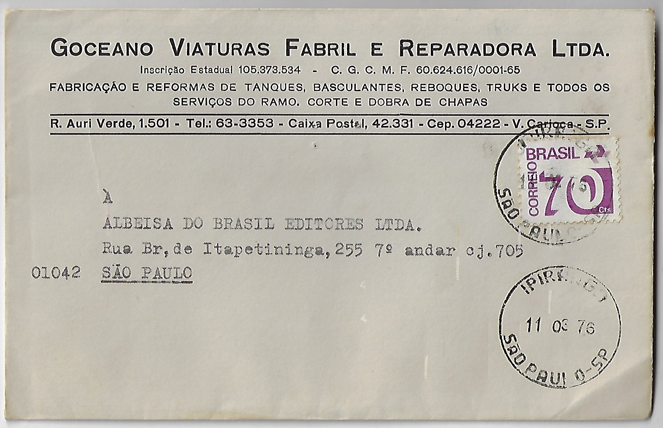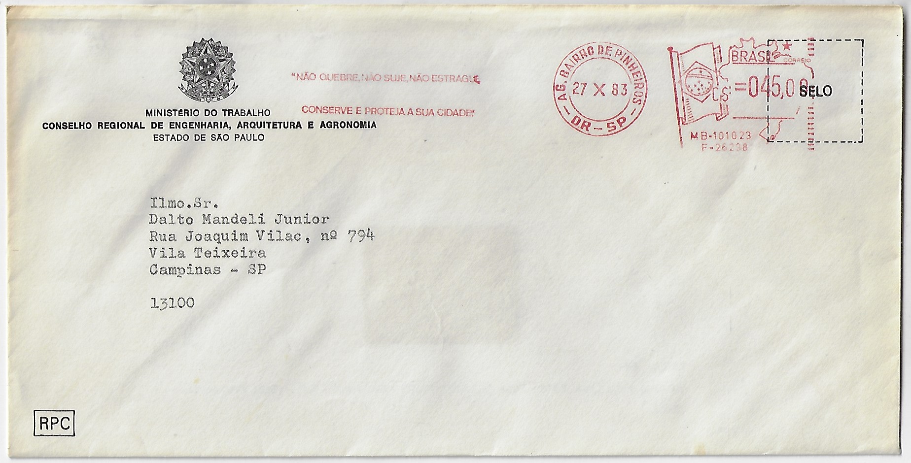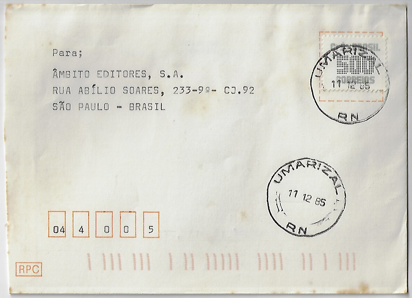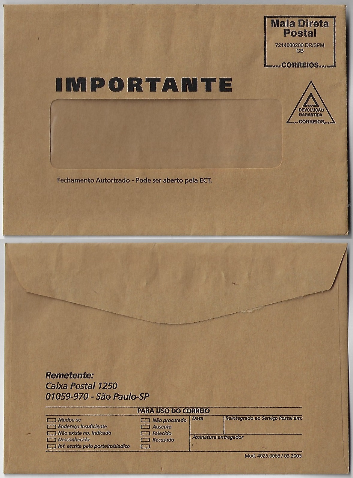 | 83118 | 2025, envelope postado como Remessa Econômica, contrato com Caixa Econômica Federal | 10,00 | Foto |