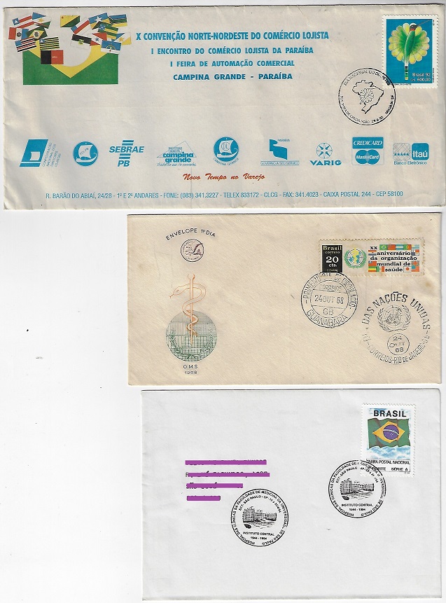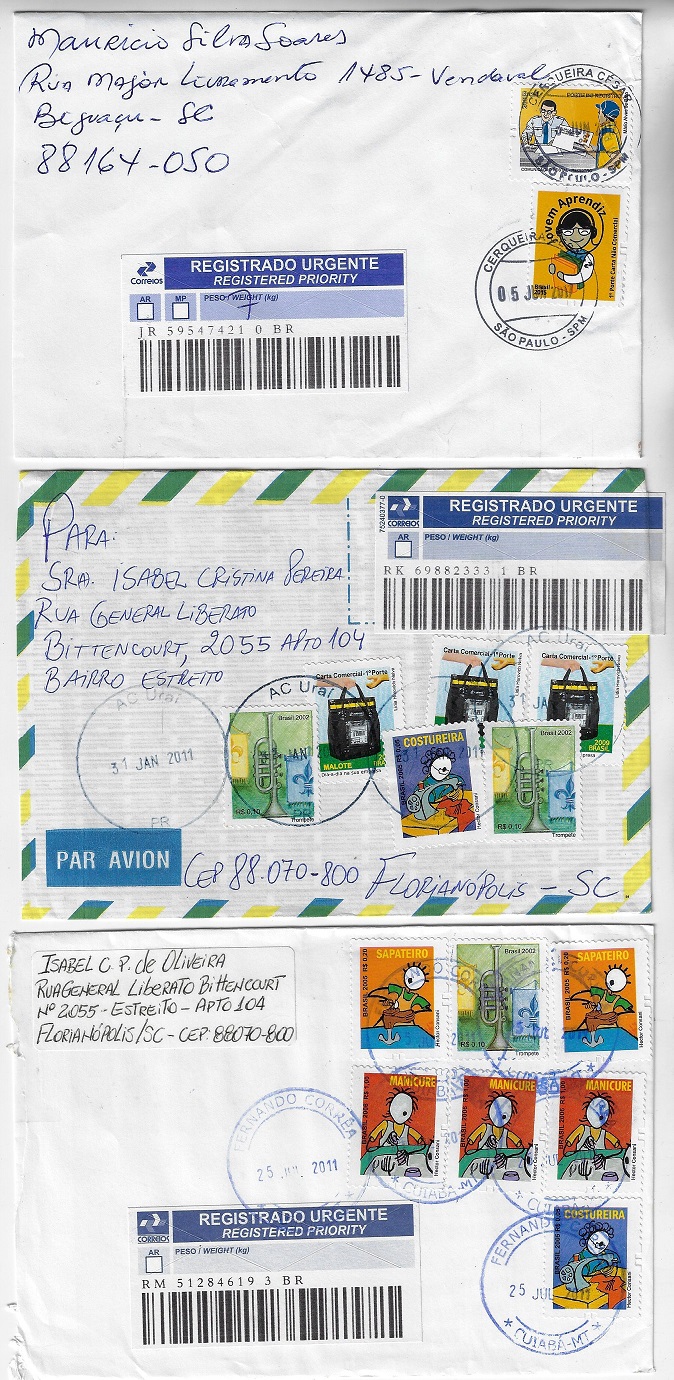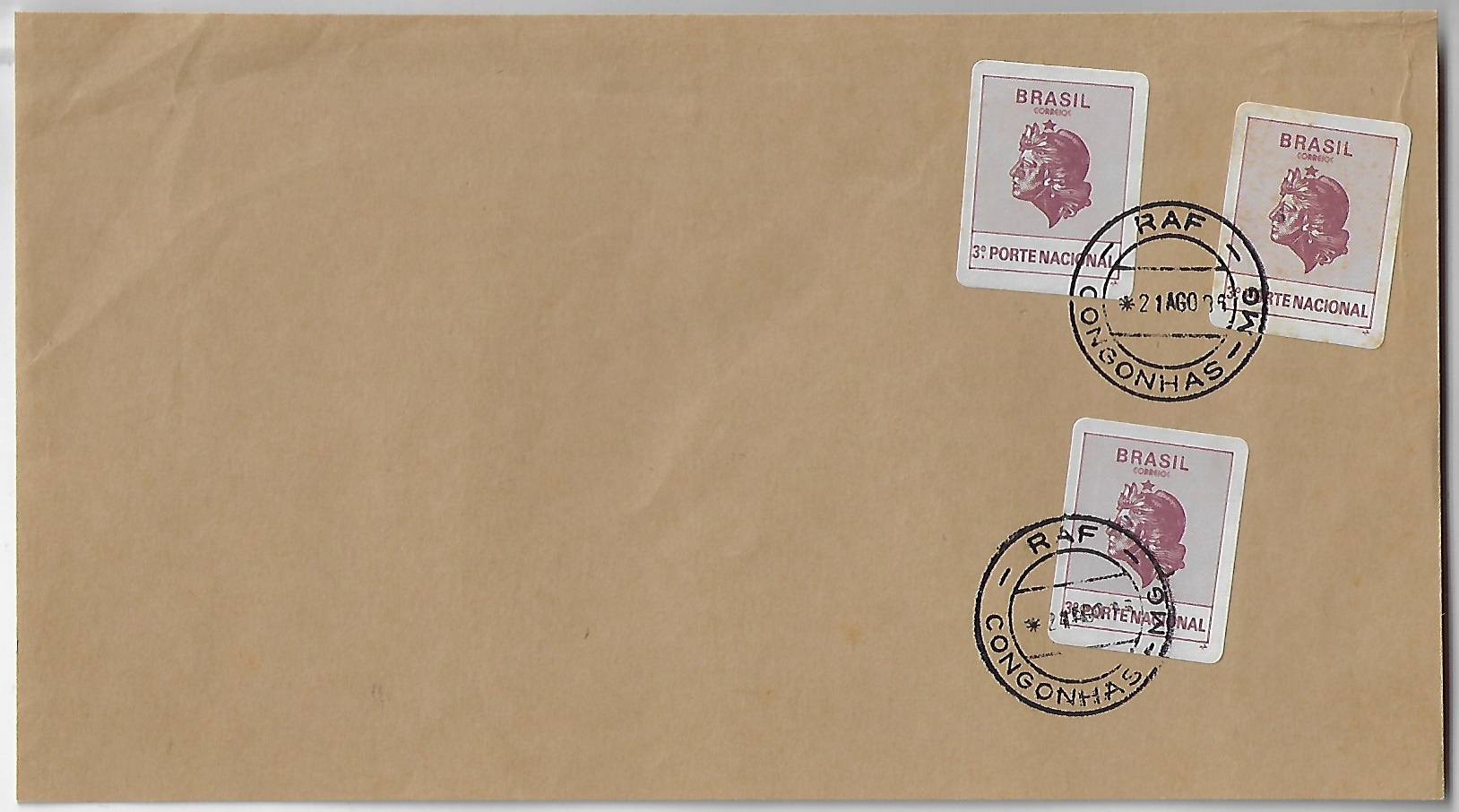 | 83709 | 2021, 3 envelopes com etiquetas de registro prioritário, vermelha, com código de barra, válidas como franqueamento dispensando o uso de selos, diferentes carimbos | 10,00 | Foto |