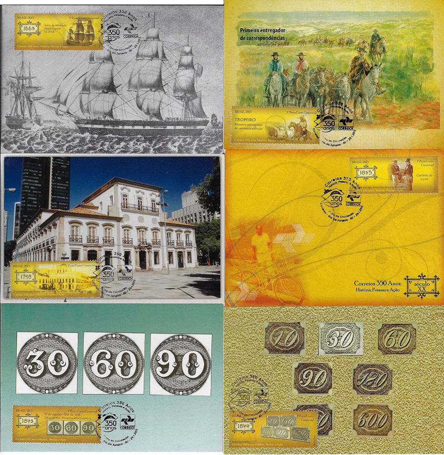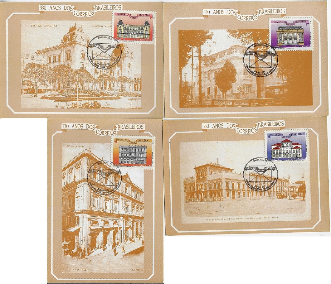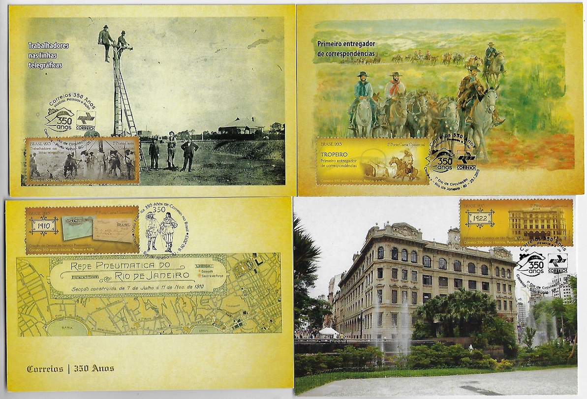 | 42169 | 2013, 4 máximos postais alusivos aos 350 anos dos Correios, Tropeiro, Edifício, Carta Pneumática, Telégrafo | 28,00 | Foto |