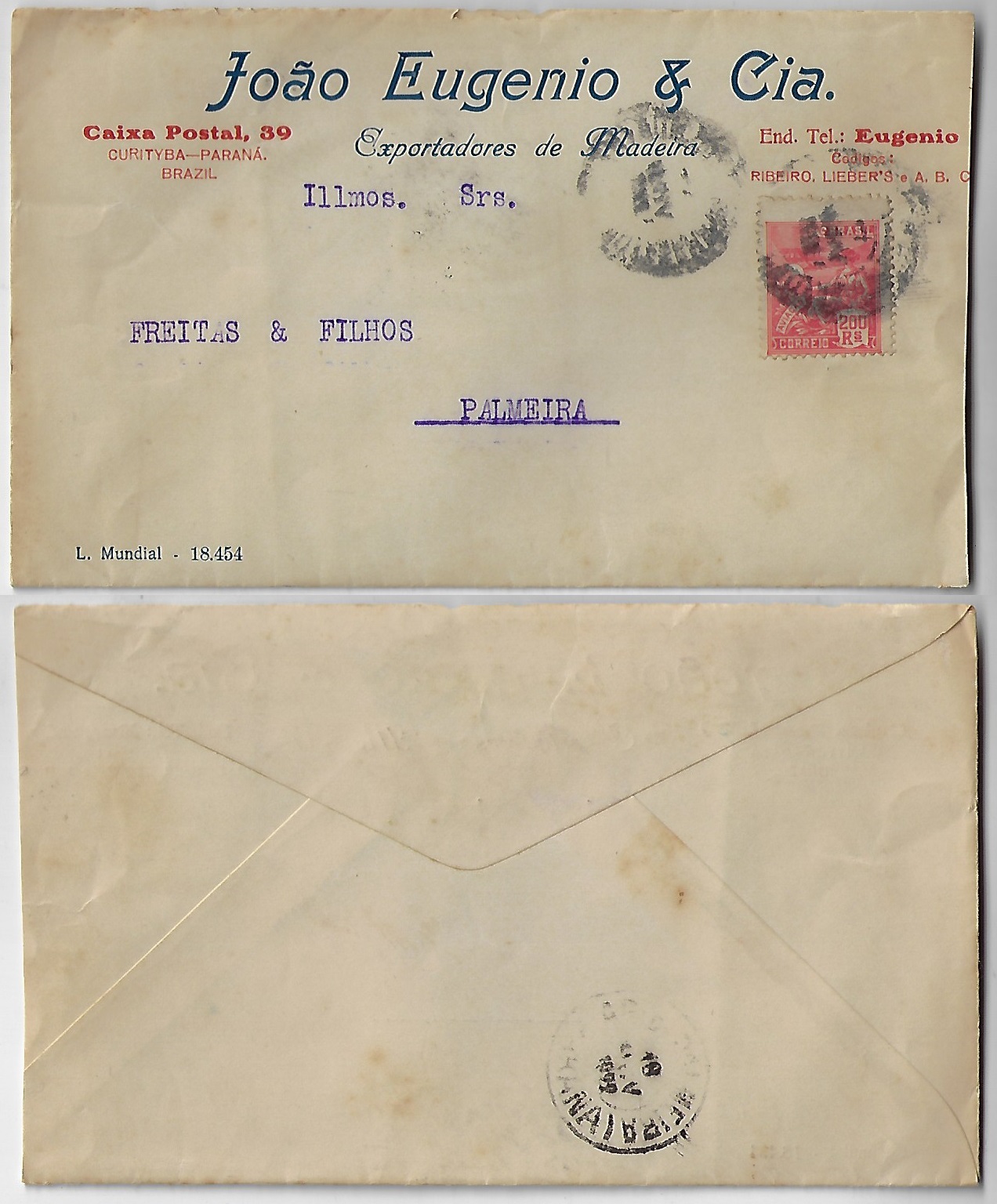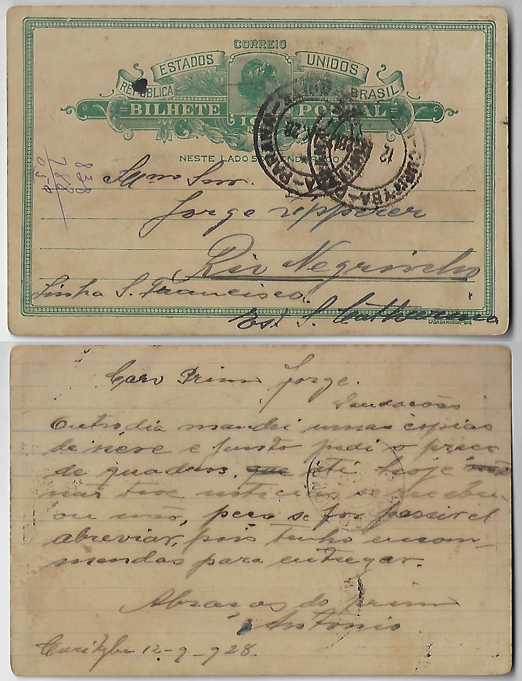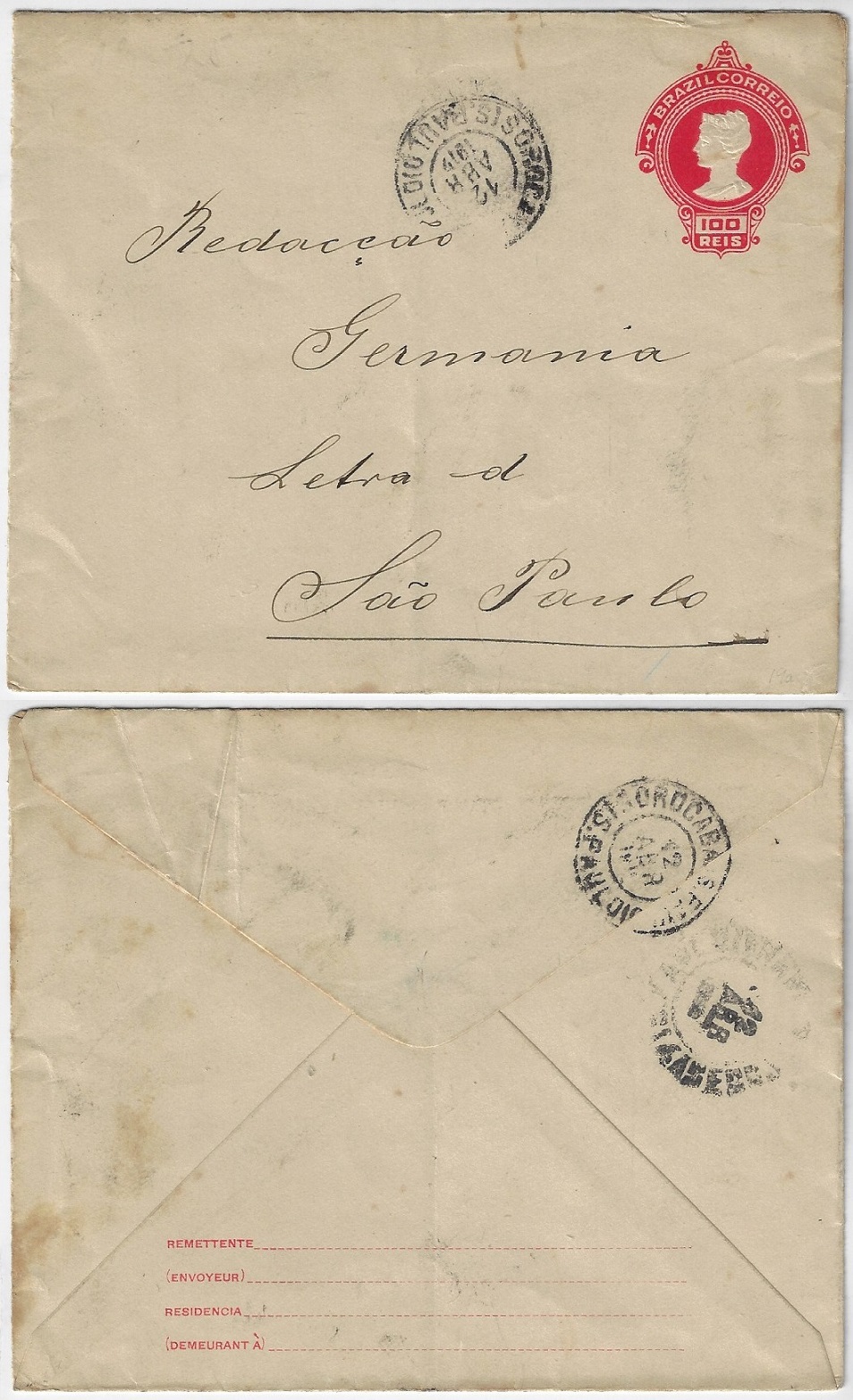| 75503 | 1900s, inteiro postal EN-61 enviado de São Paulo (12/4) para Curitiba (15/4) | 10,00 | Foto |