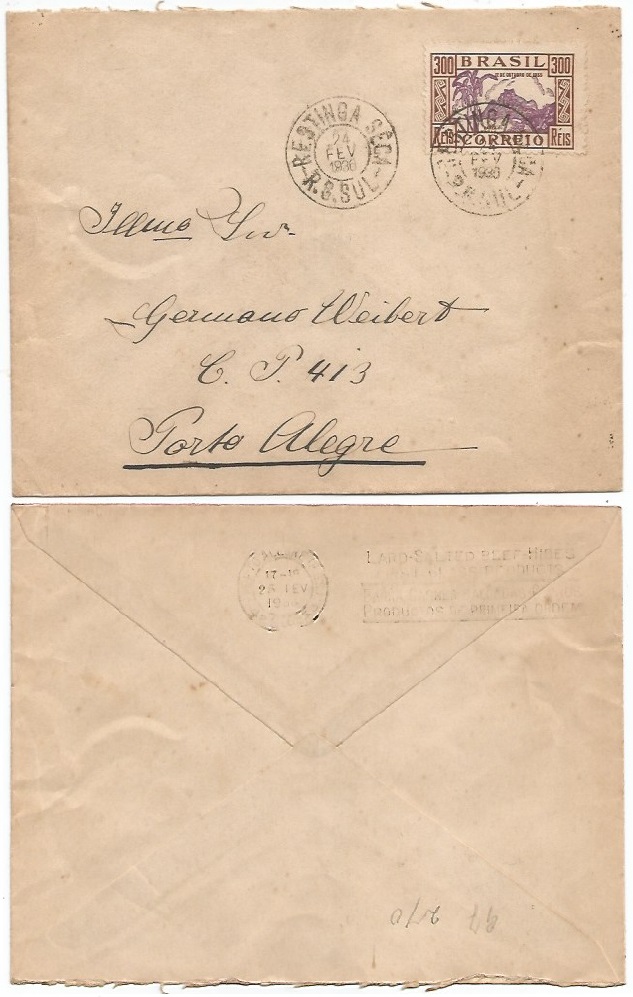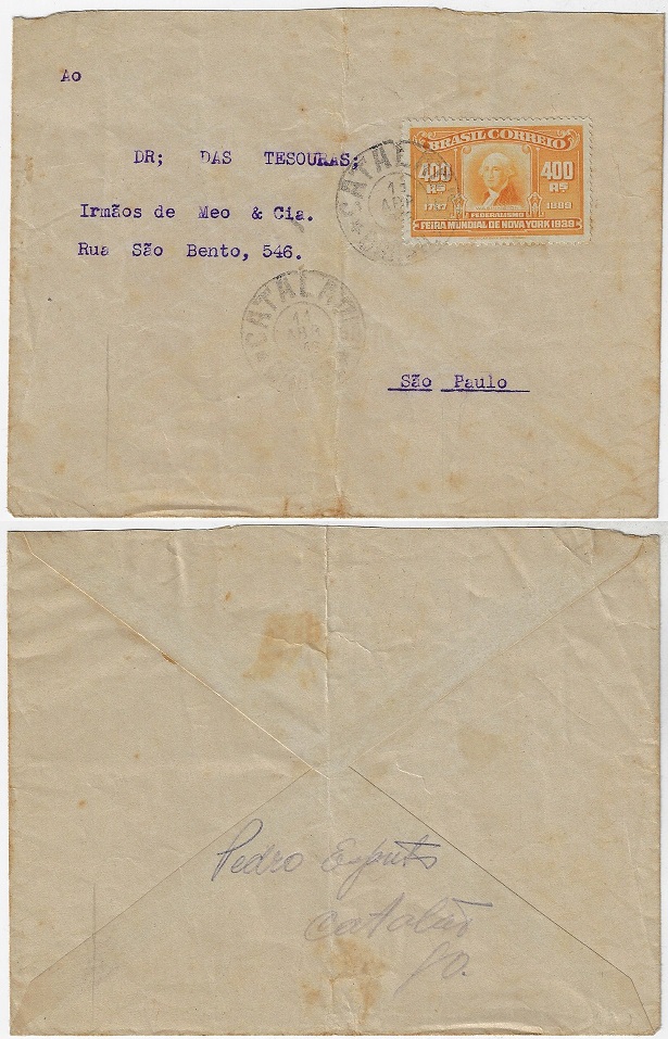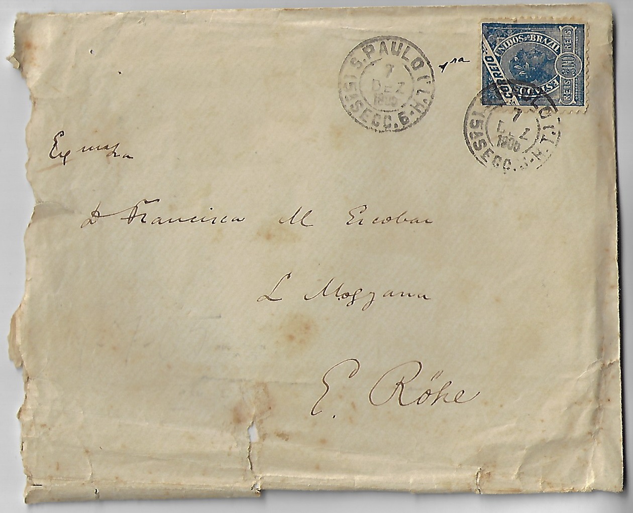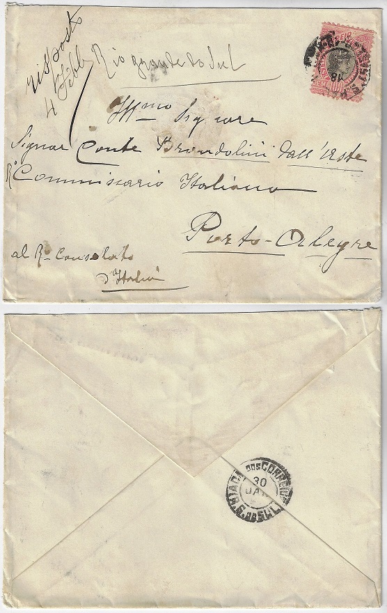 | 84465 | 1890s, envelope de São Paulo (18/?) para Porto Alegre (30/1), endereçado ao Conde Brandolini dall'Aste, selo RHM-84, 100 Réis de 1894 | 30,00 | Foto |