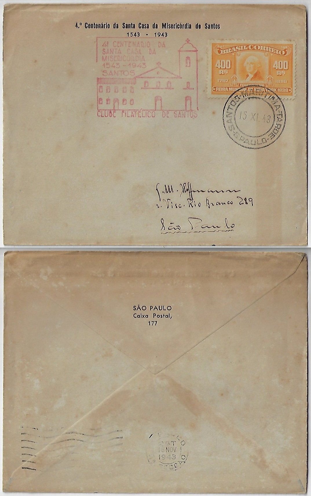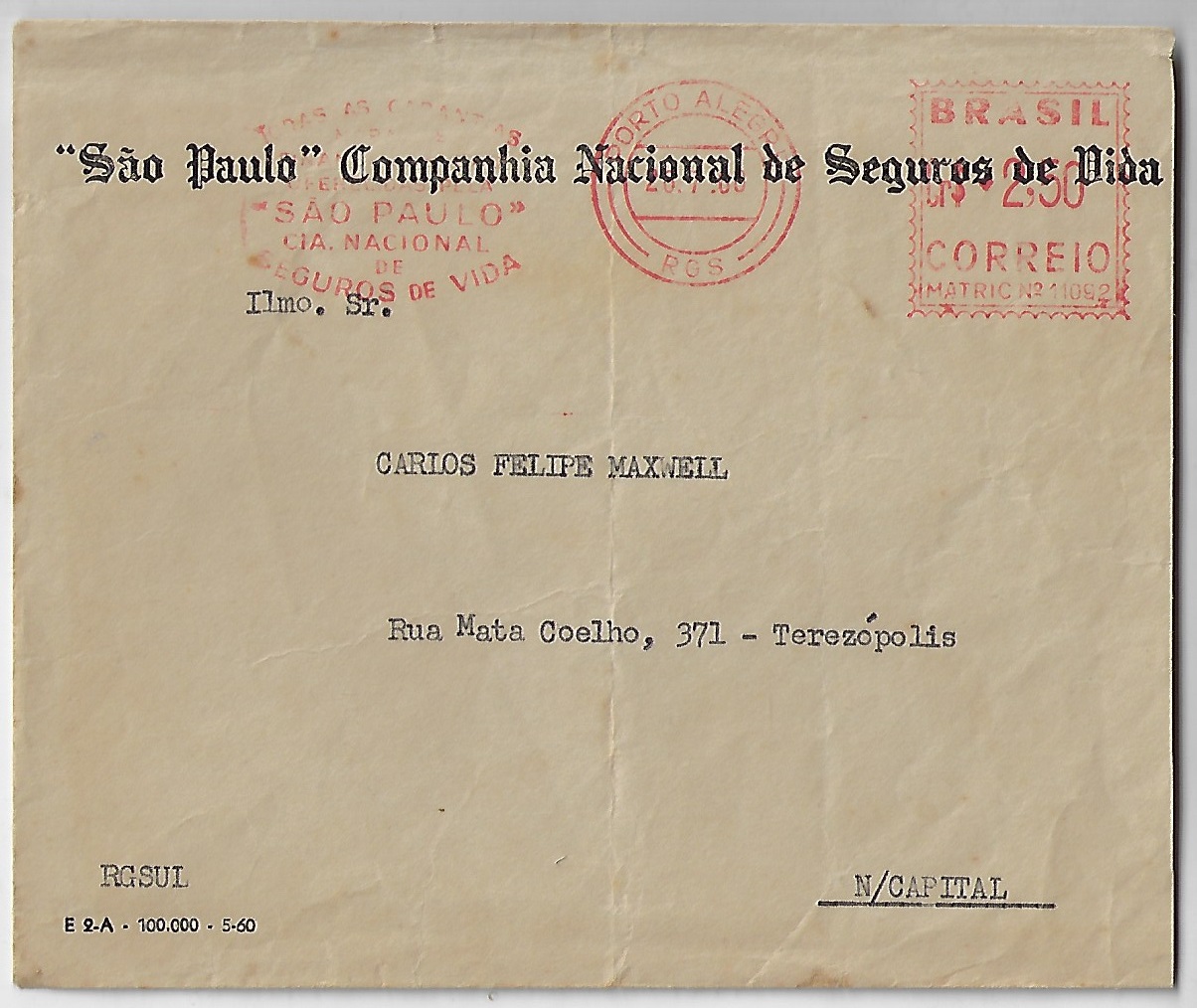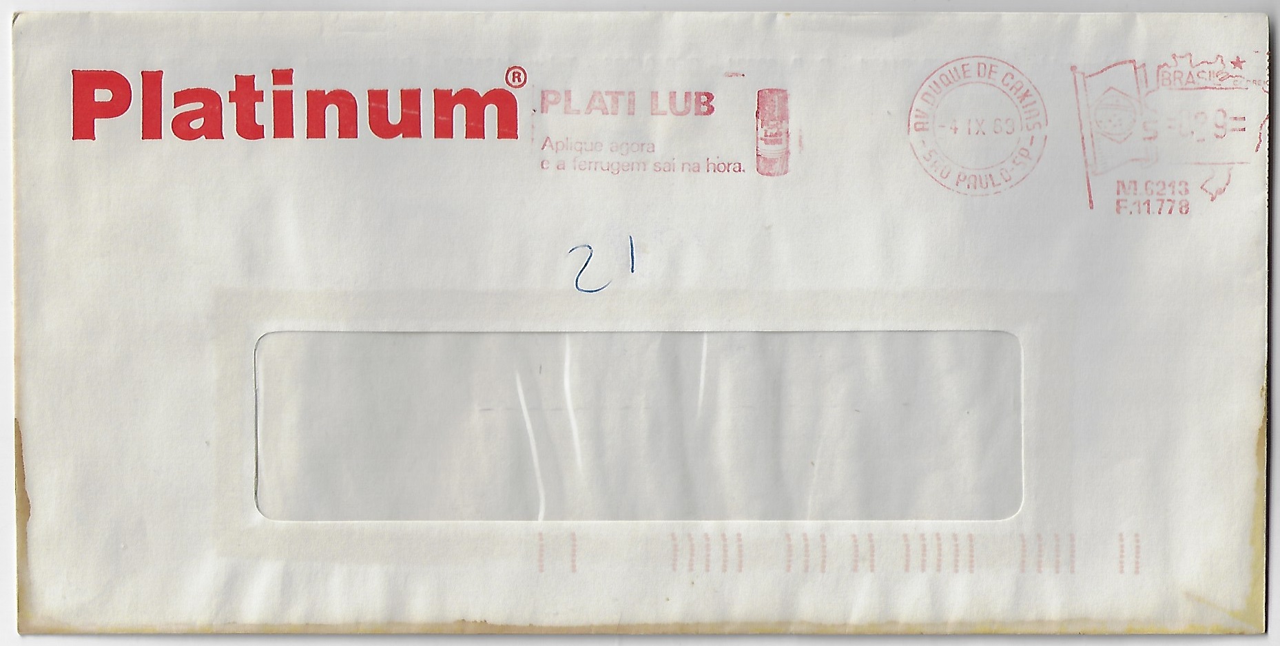 | 84465 | 1890s, envelope de São Paulo (18/?) para Porto Alegre (30/1), endereçado ao Conde Brandolini dall'Aste, selo RHM-84, 100 Réis de 1894 | 30,00 | Foto |