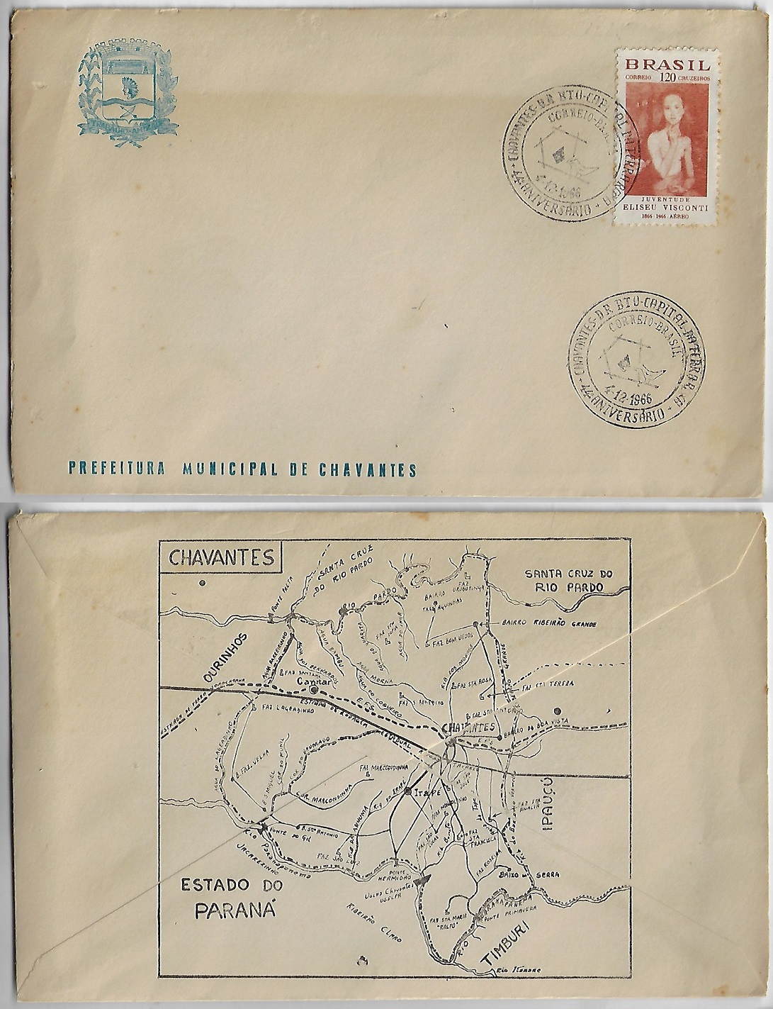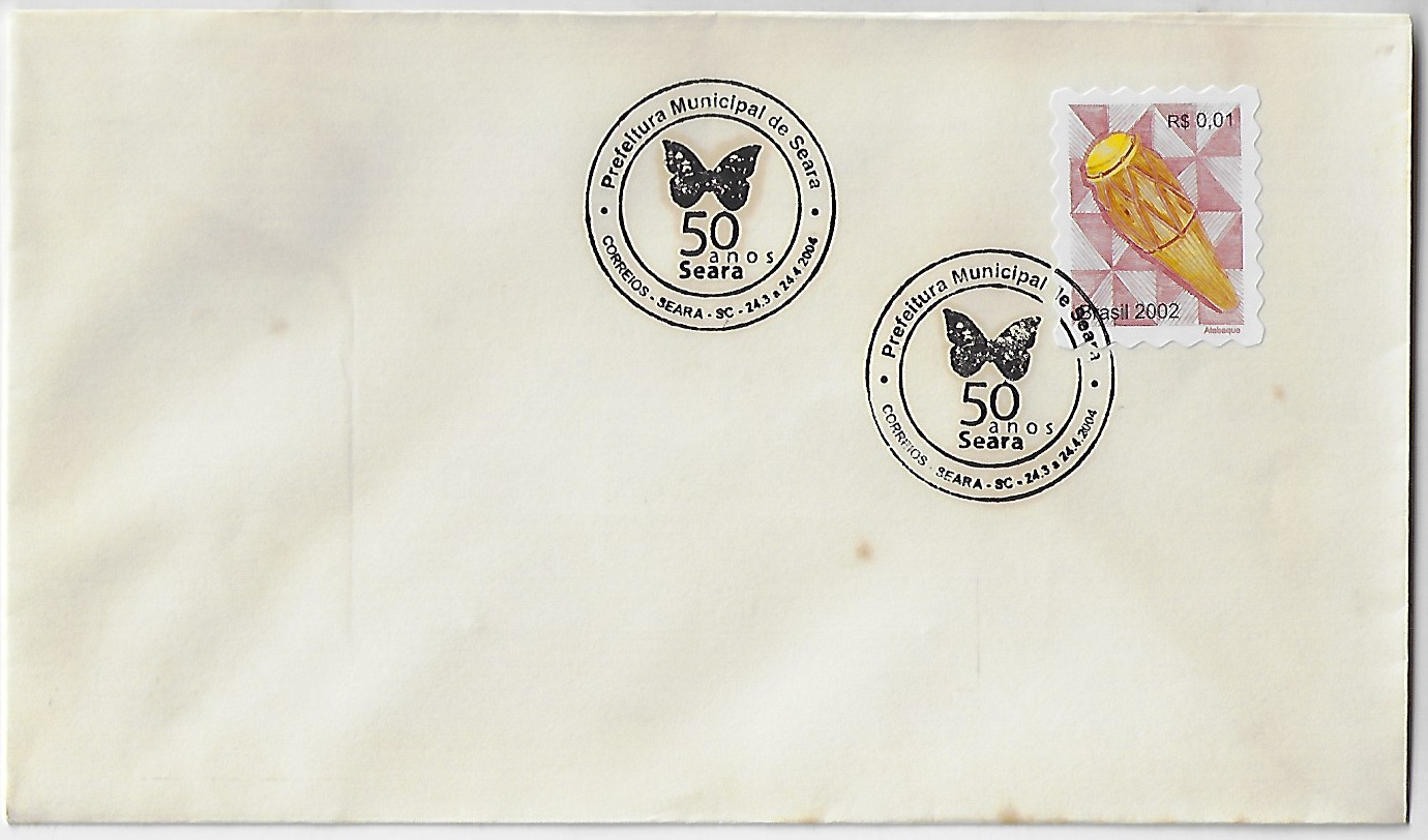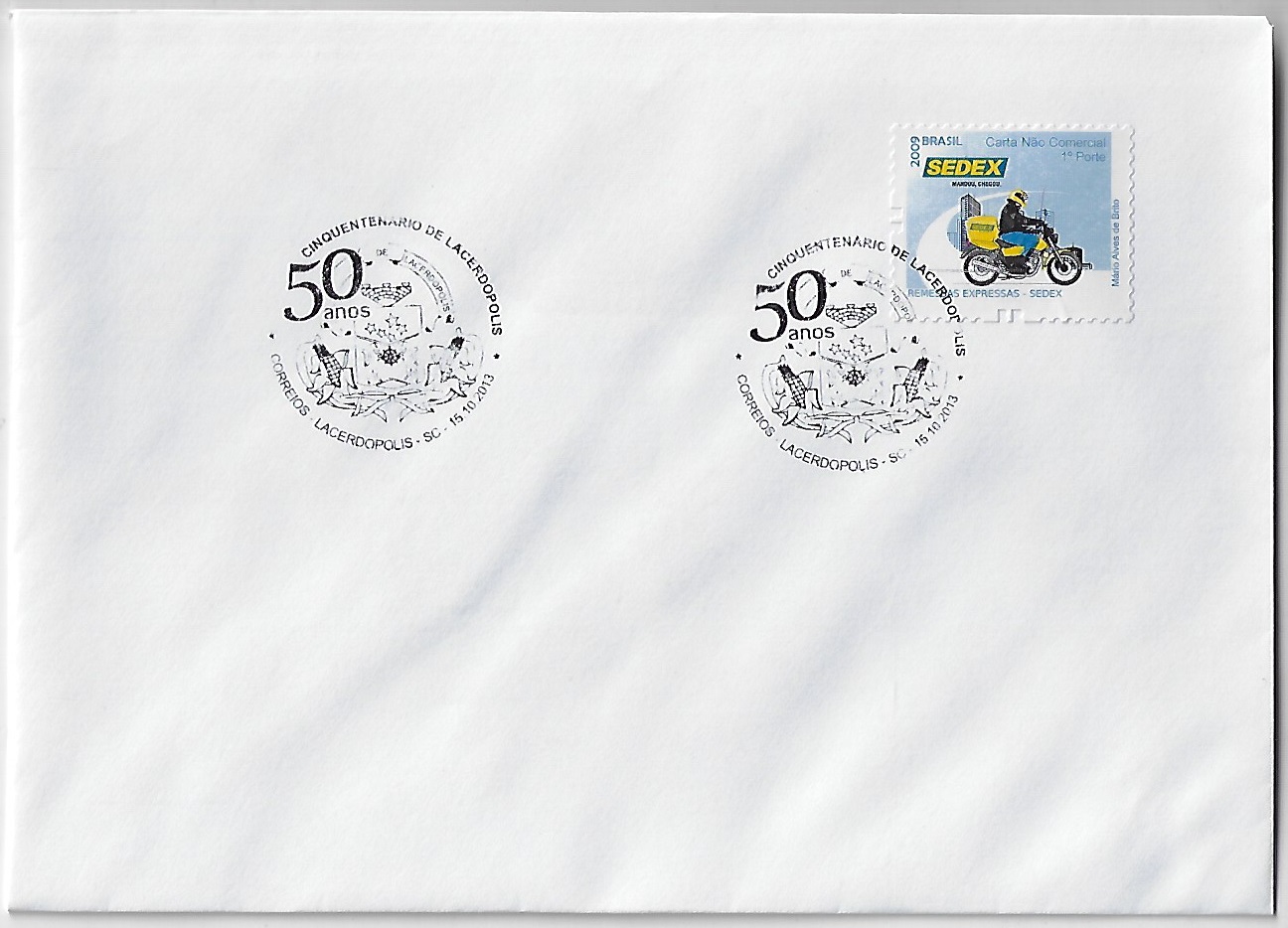 | 78740 | 2013, envelope com carimbo comemorativo aos 50 anos de Lacerdópolis, Brasão, Milho | 10,00 | Foto |