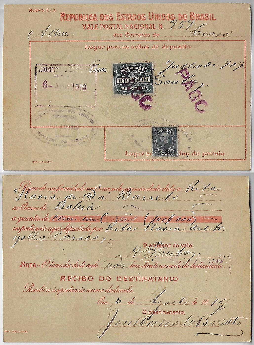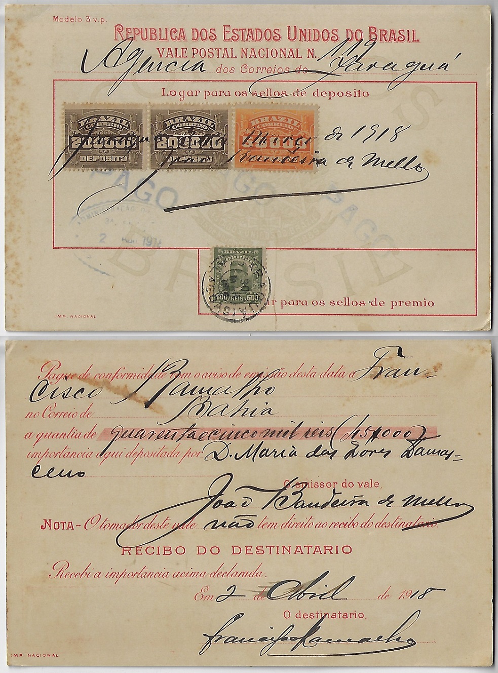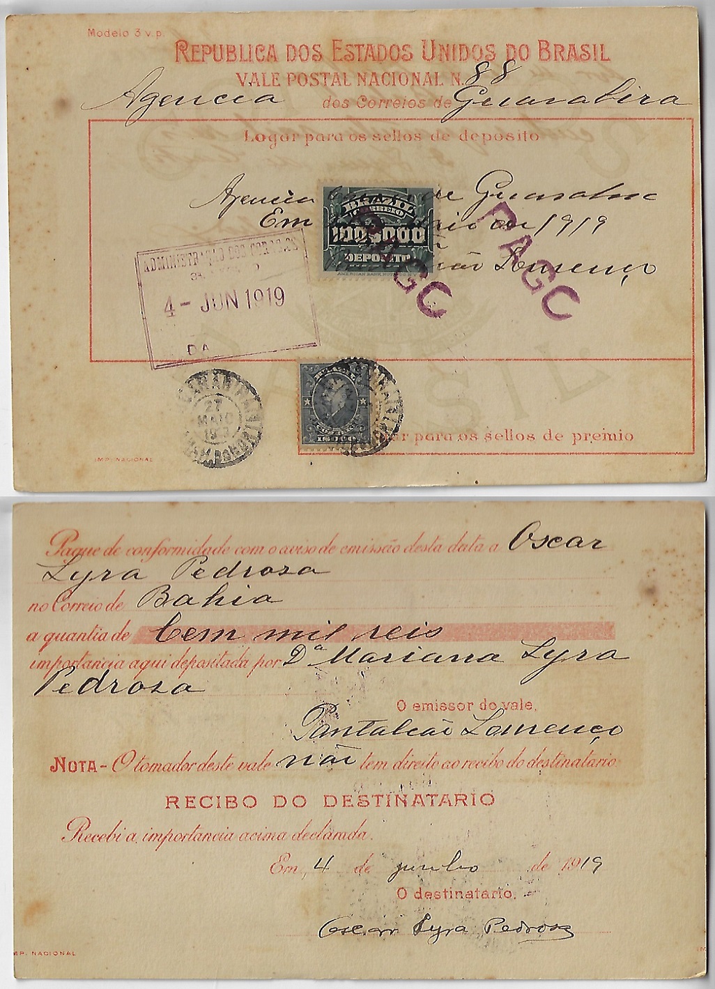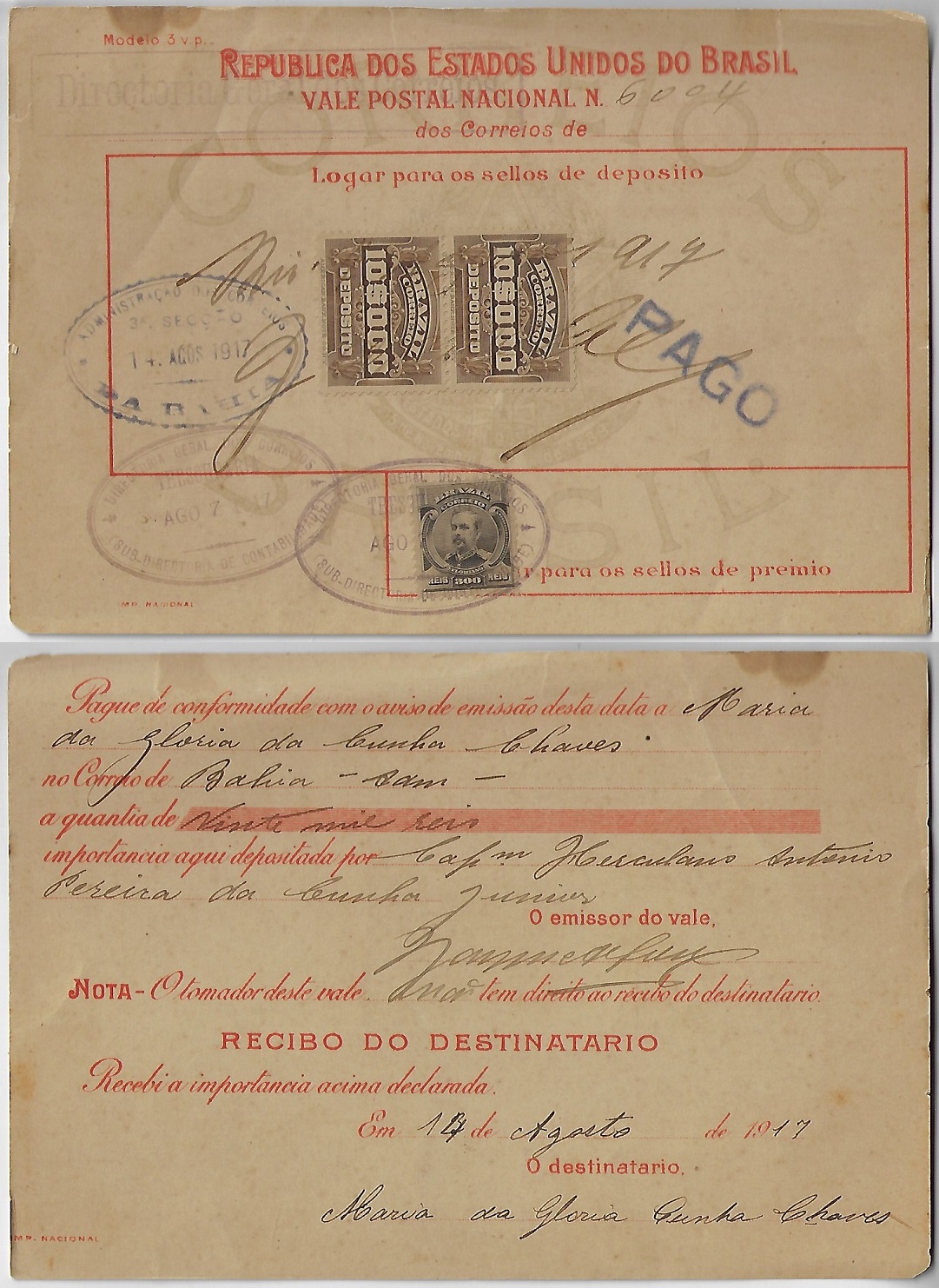 | 43744 | 1897, certificado do envio registrado pelos Correios de Auto de Processo do Rio de Janeiro (10/2) para Bahia, modelo nº 226 | 20,00 | Foto |