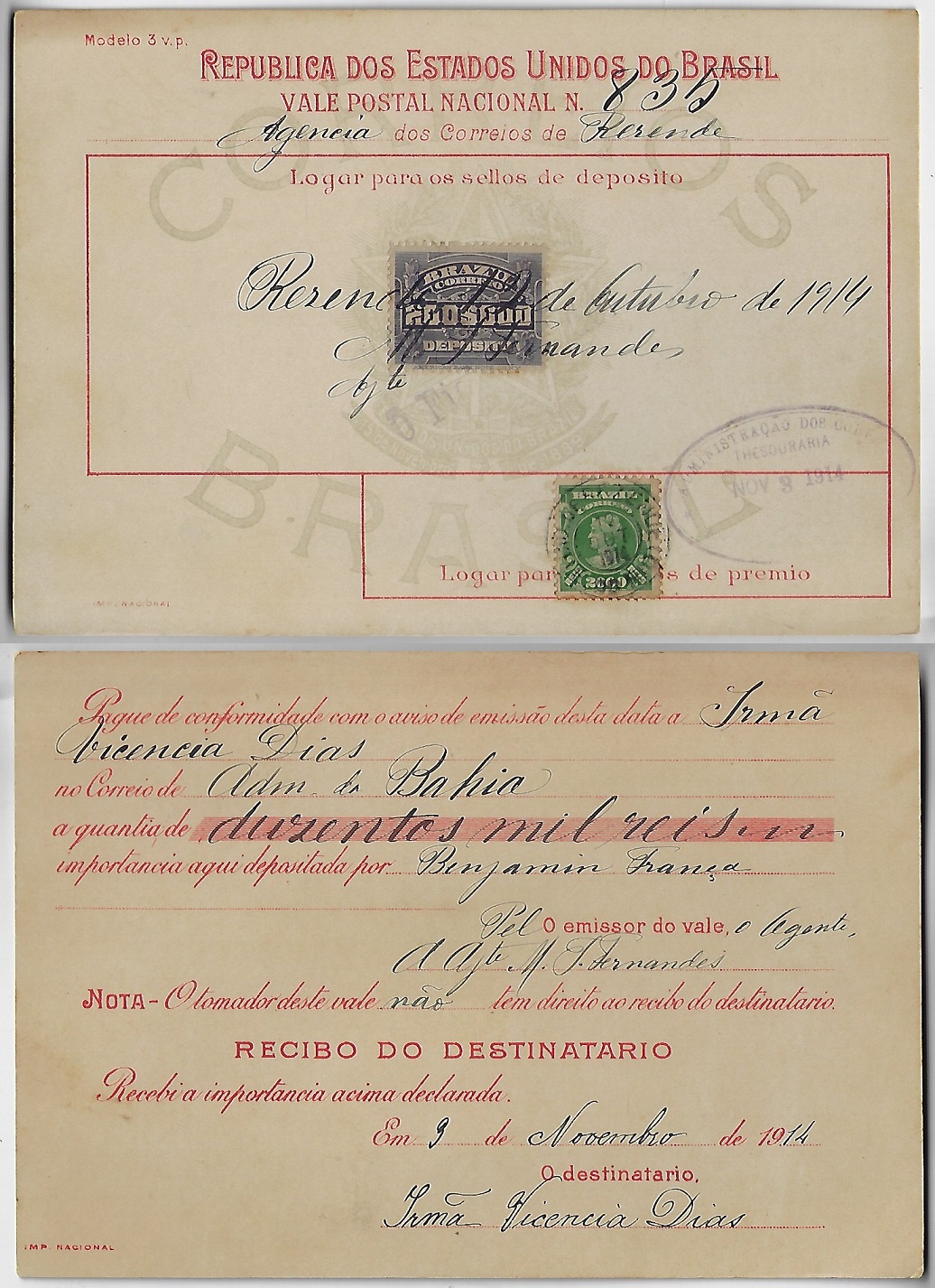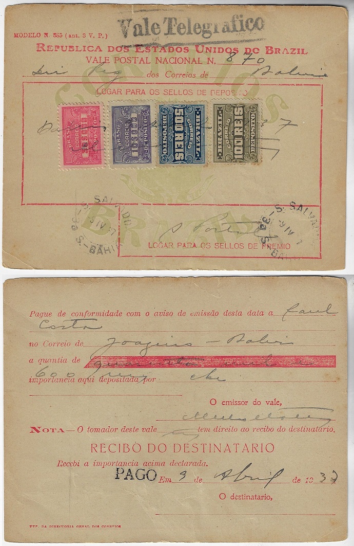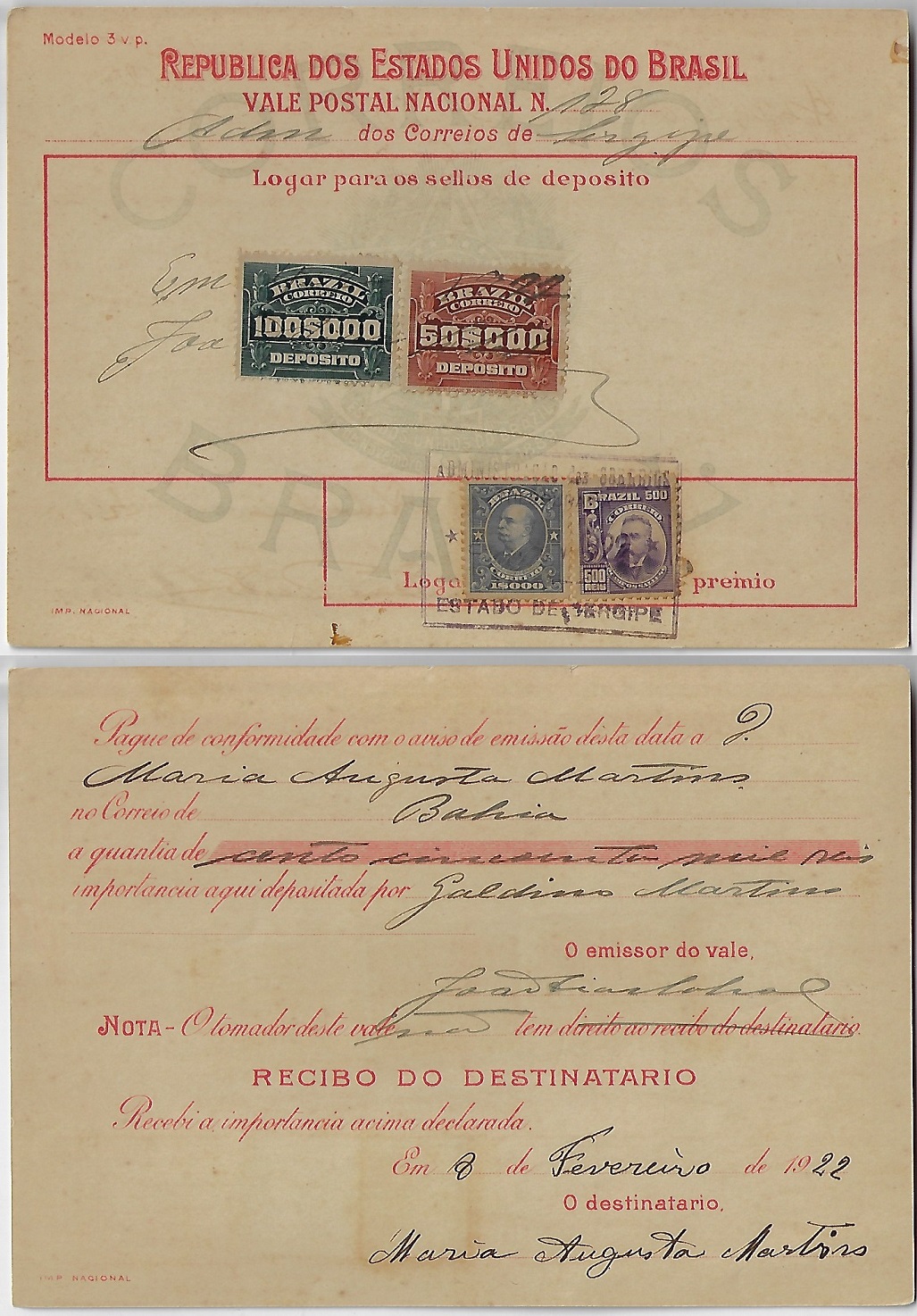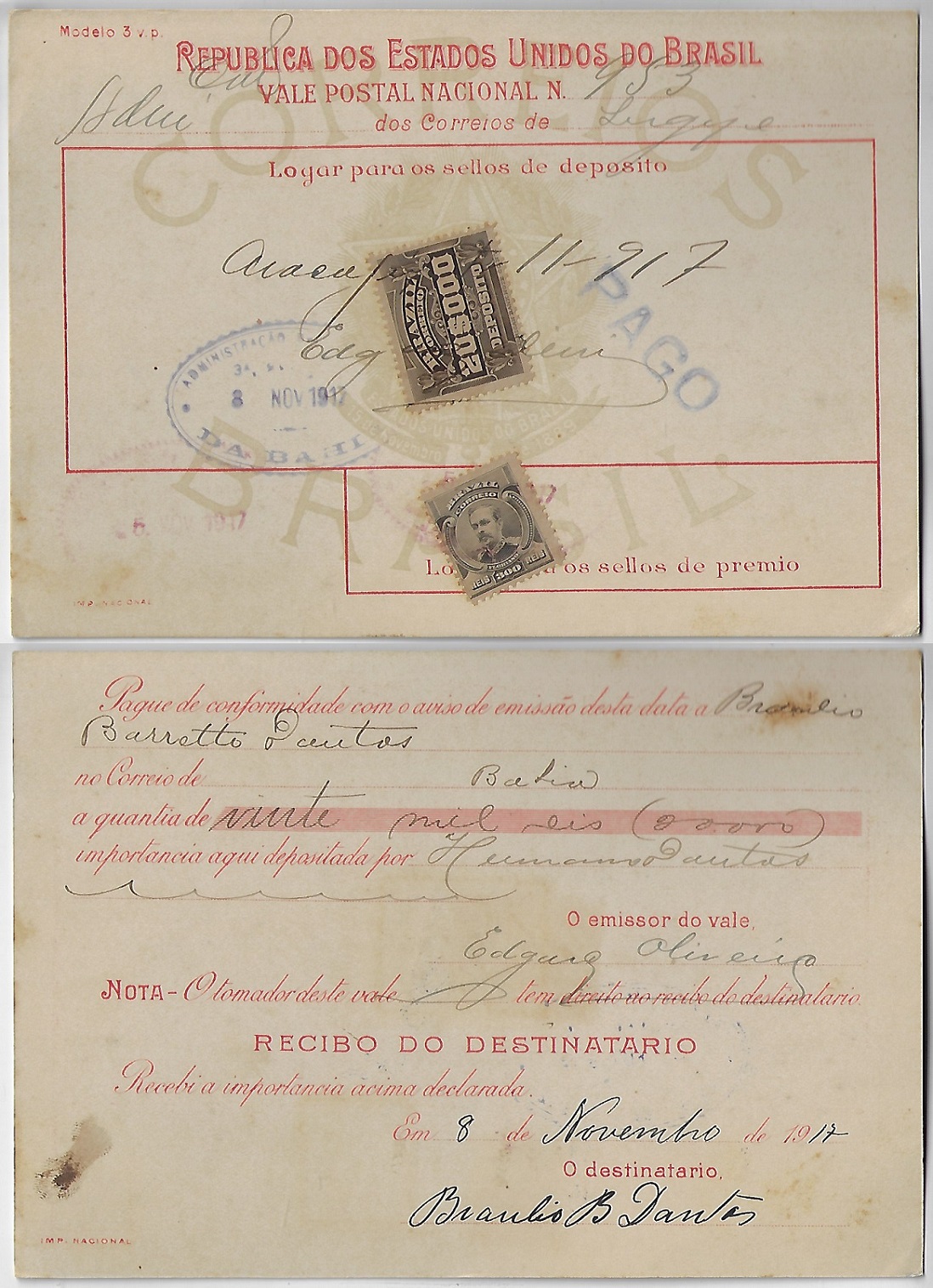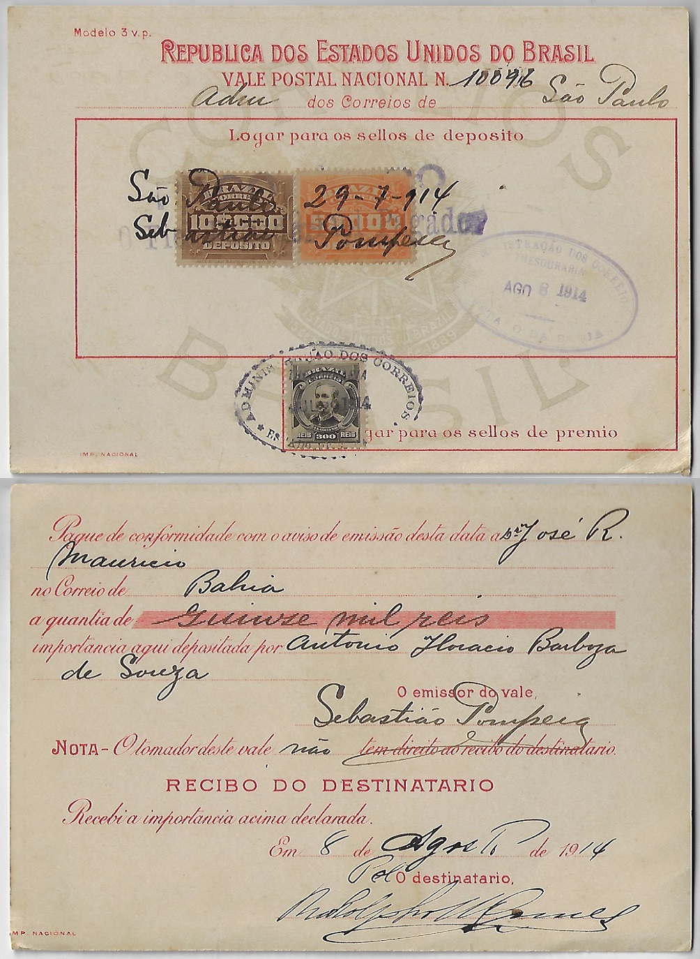 | 43744 | 1897, certificado do envio registrado pelos Correios de Auto de Processo do Rio de Janeiro (10/2) para Bahia, modelo nº 226 | 20,00 | Foto |