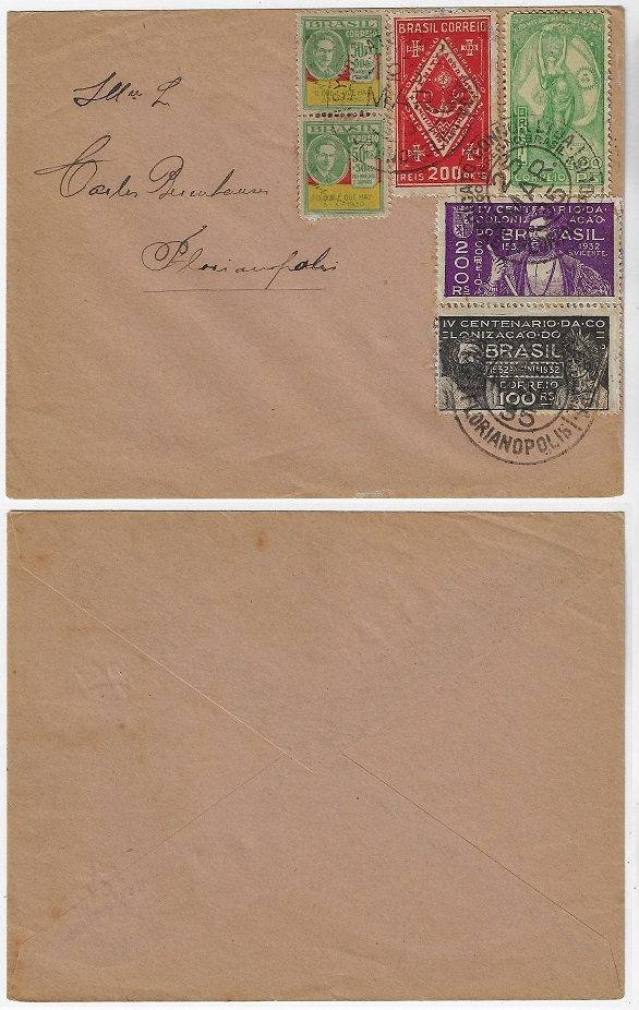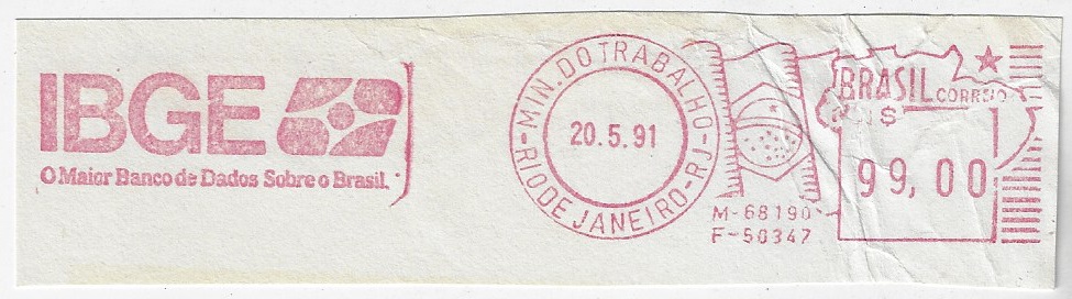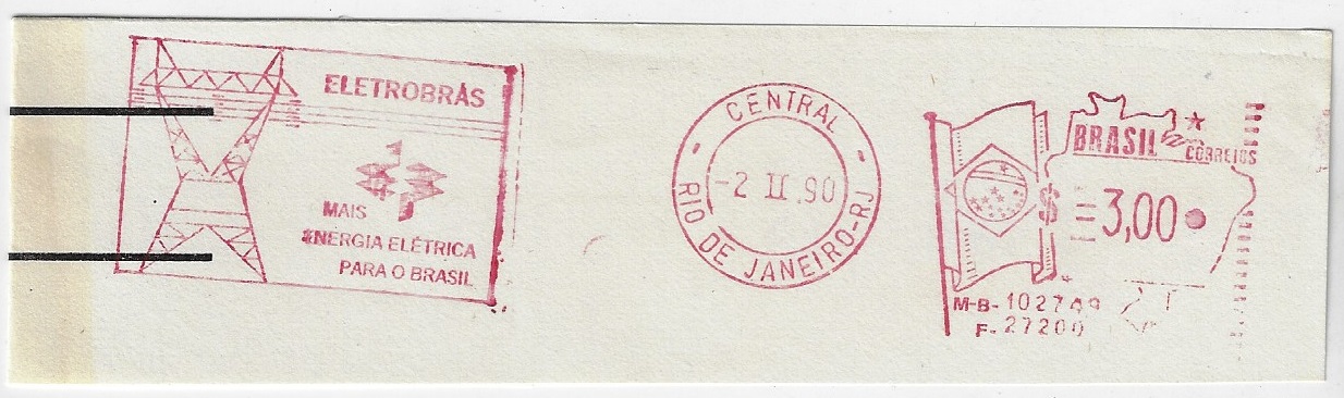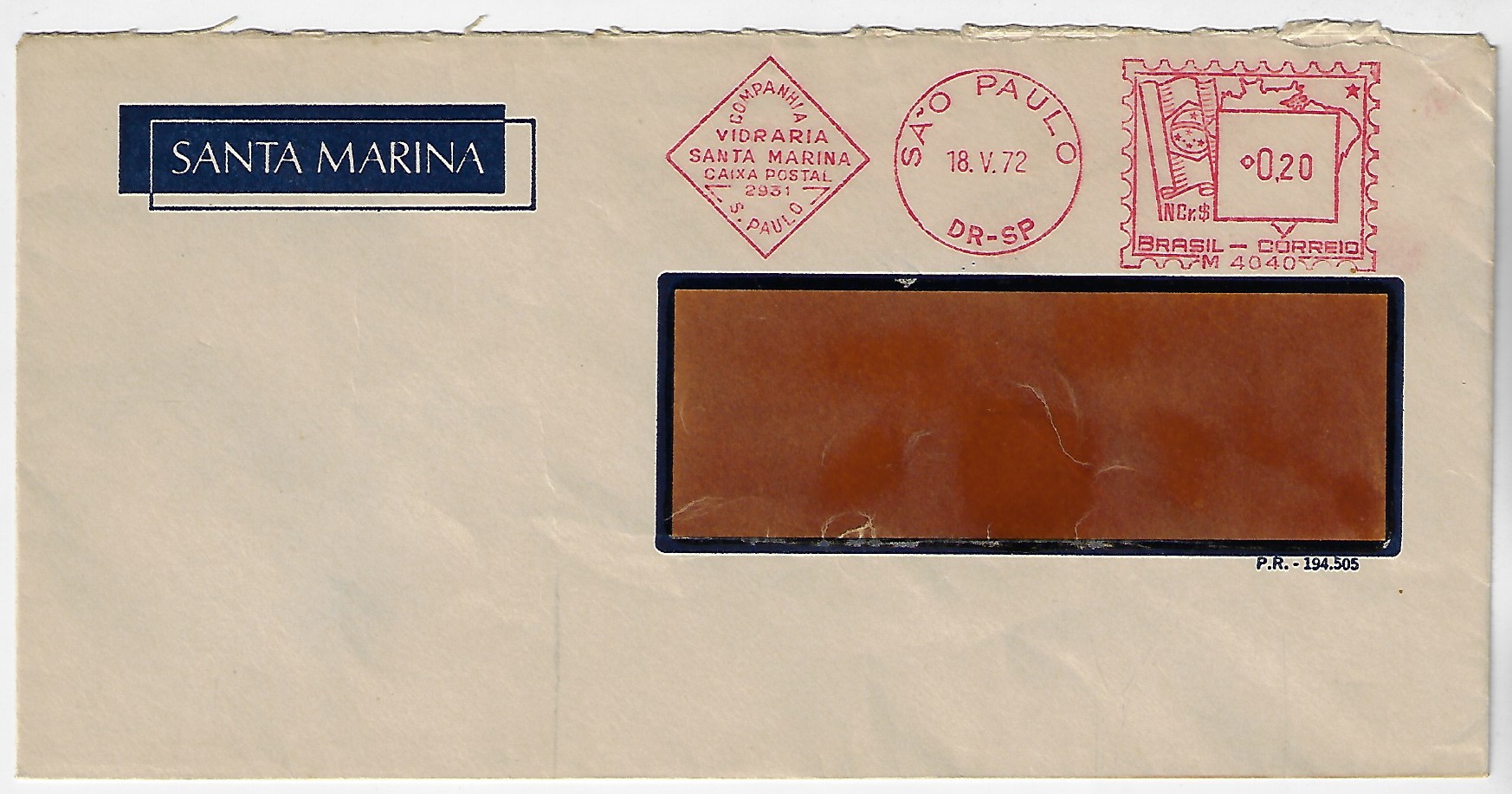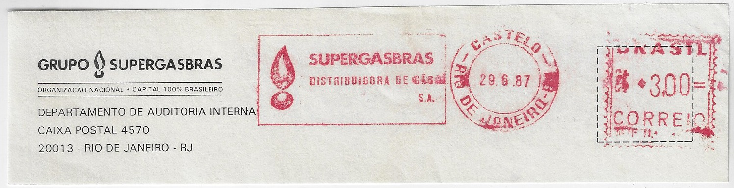 | 44452 | 2013, envelope do Rio de Janeiro para Florianópolis com porte complementado por franquia mecânica Mapa do Brasil, tipo H2.1. Pitney Bowes DM300/DM400 digital | 10,00 | Foto |