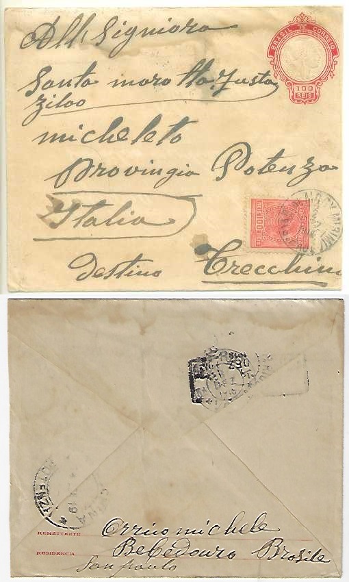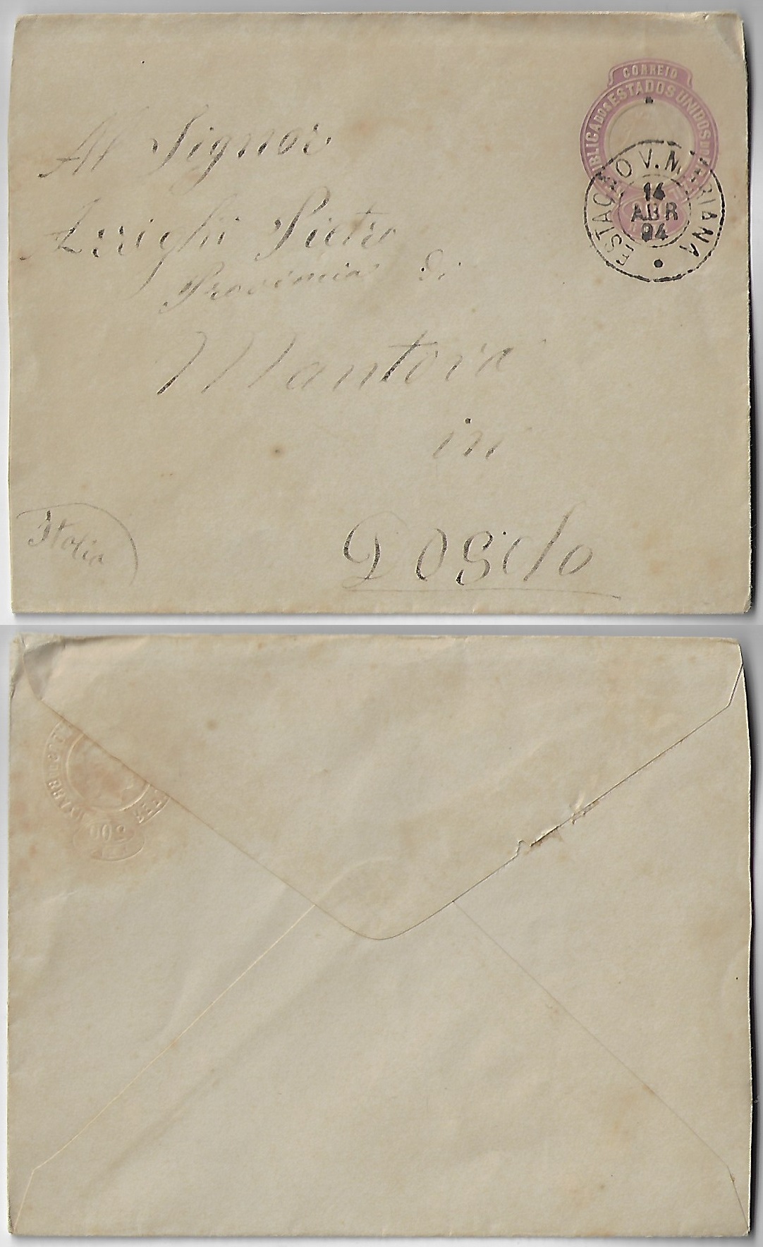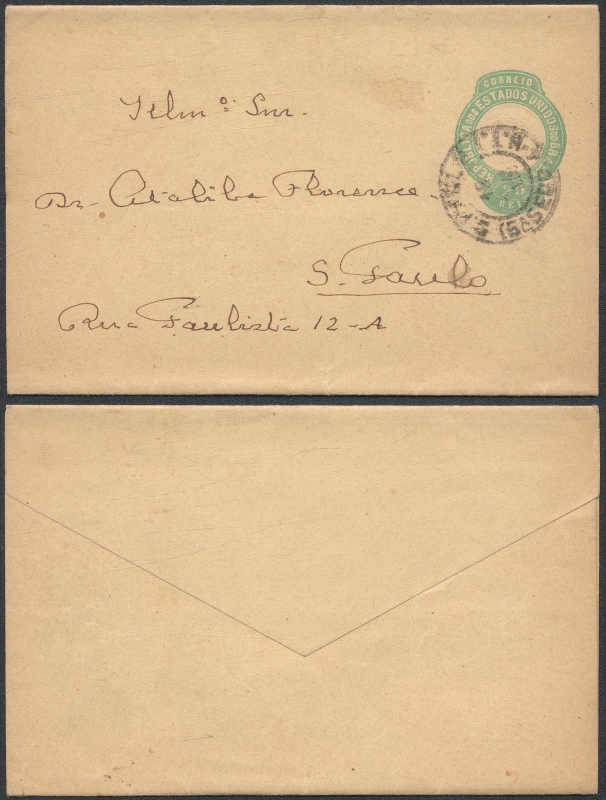 | 76449 | 1894, inteiro postal EN-43 selo impresso 200 Réis enviado de Estação Vila Mariana / São Paulo (14/4) para Dosolo / Itália | 60,00 | Foto |