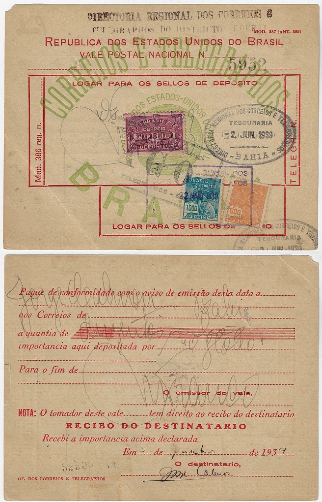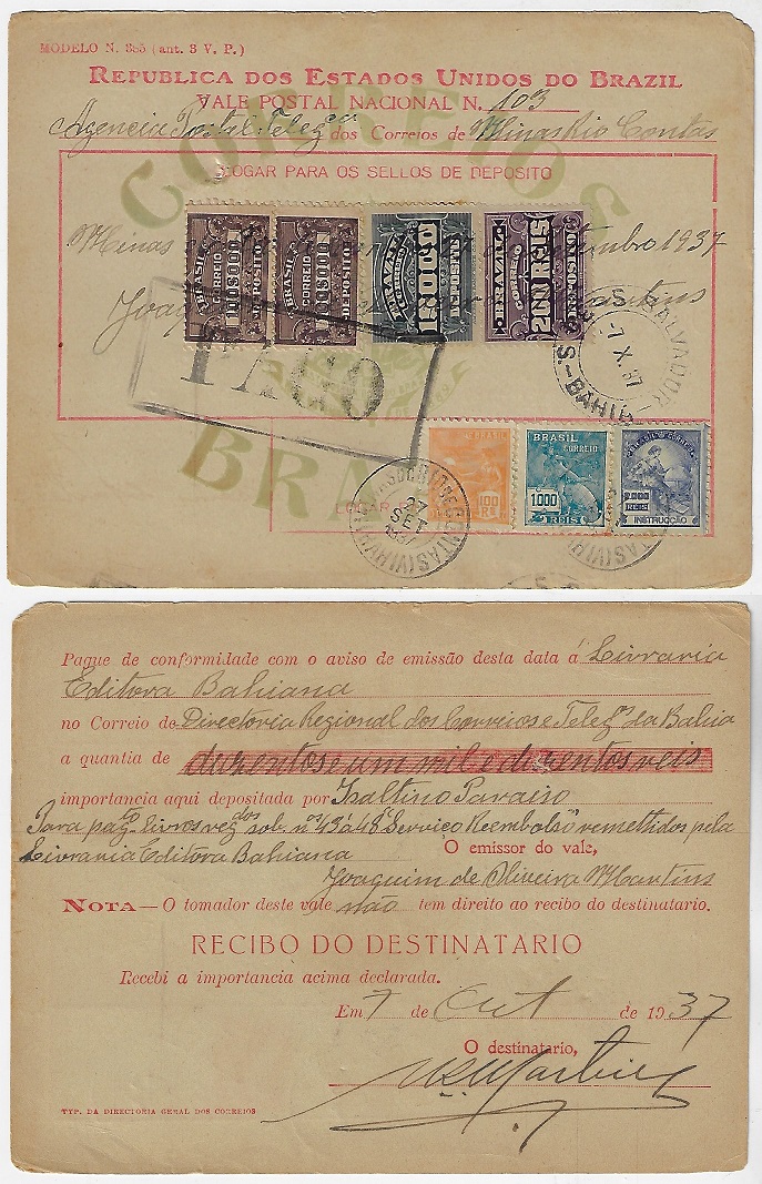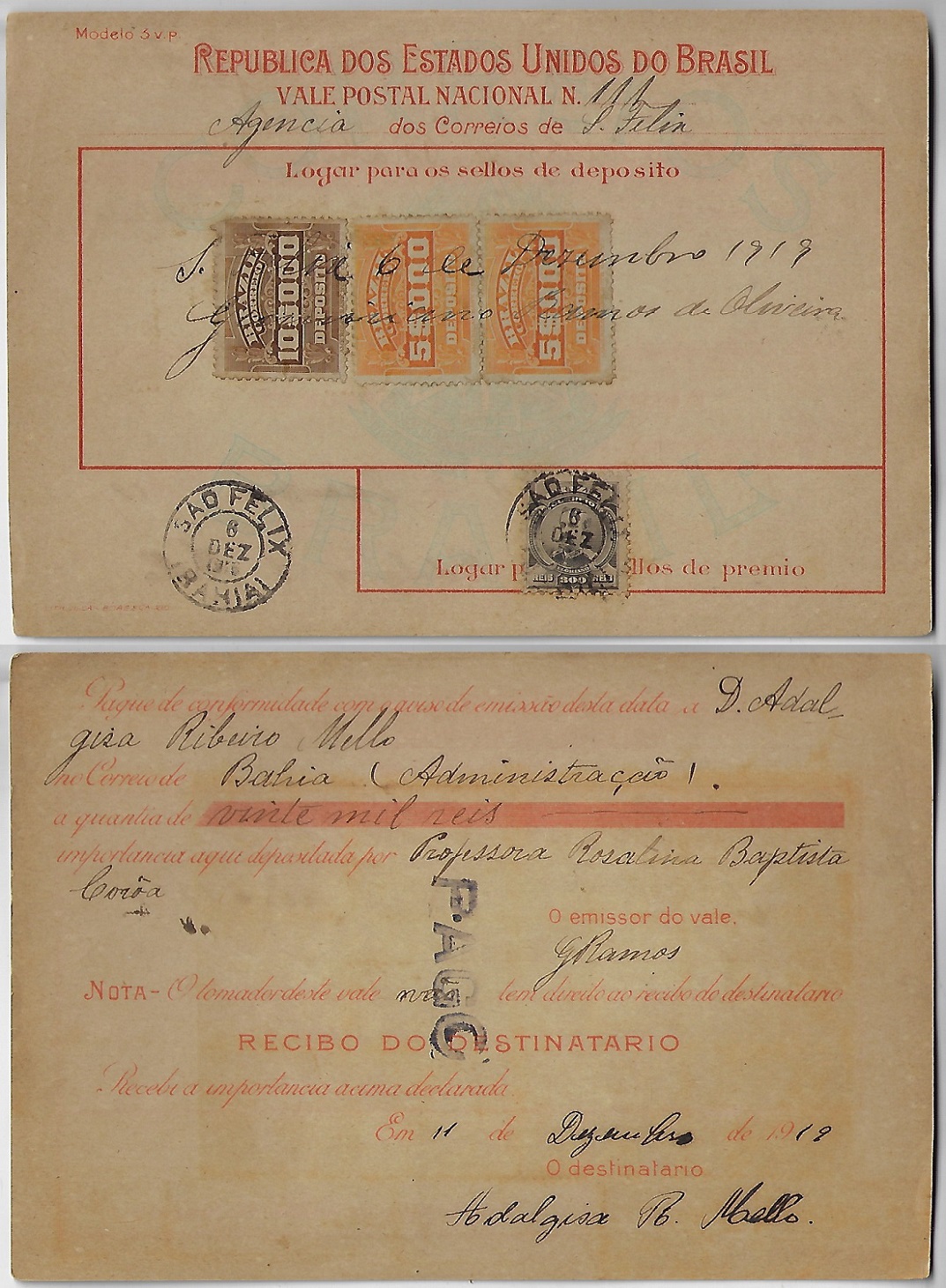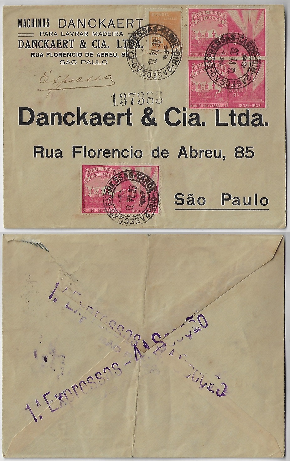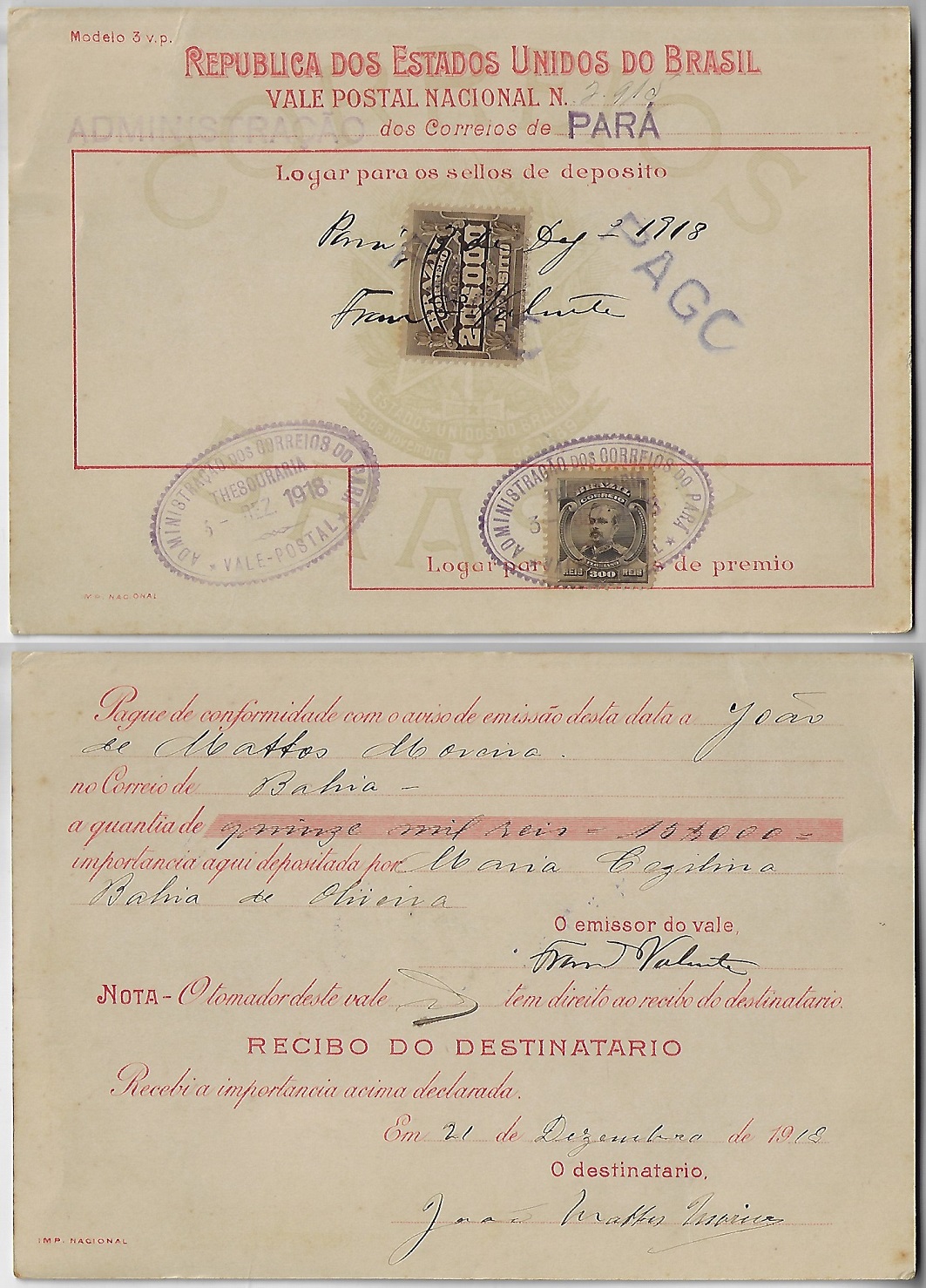 | 69599 | 1902, Inteiro postal EN-45 enviado de Bicas / MG (1/11) para São Paulo (2/11), carimbos Barra do Pirahy / RJ (1/11), "Ambe. Noturno" e "Ambte. Rio", oval aberta 1 mm, "Correio" com aproximadamente 10 mm, segundo "O" de "200" caído para esquerda (24 UF) | 33,00 | Foto |