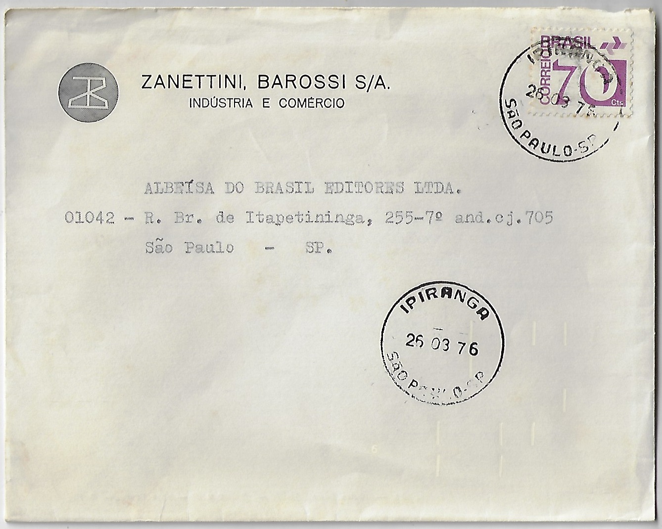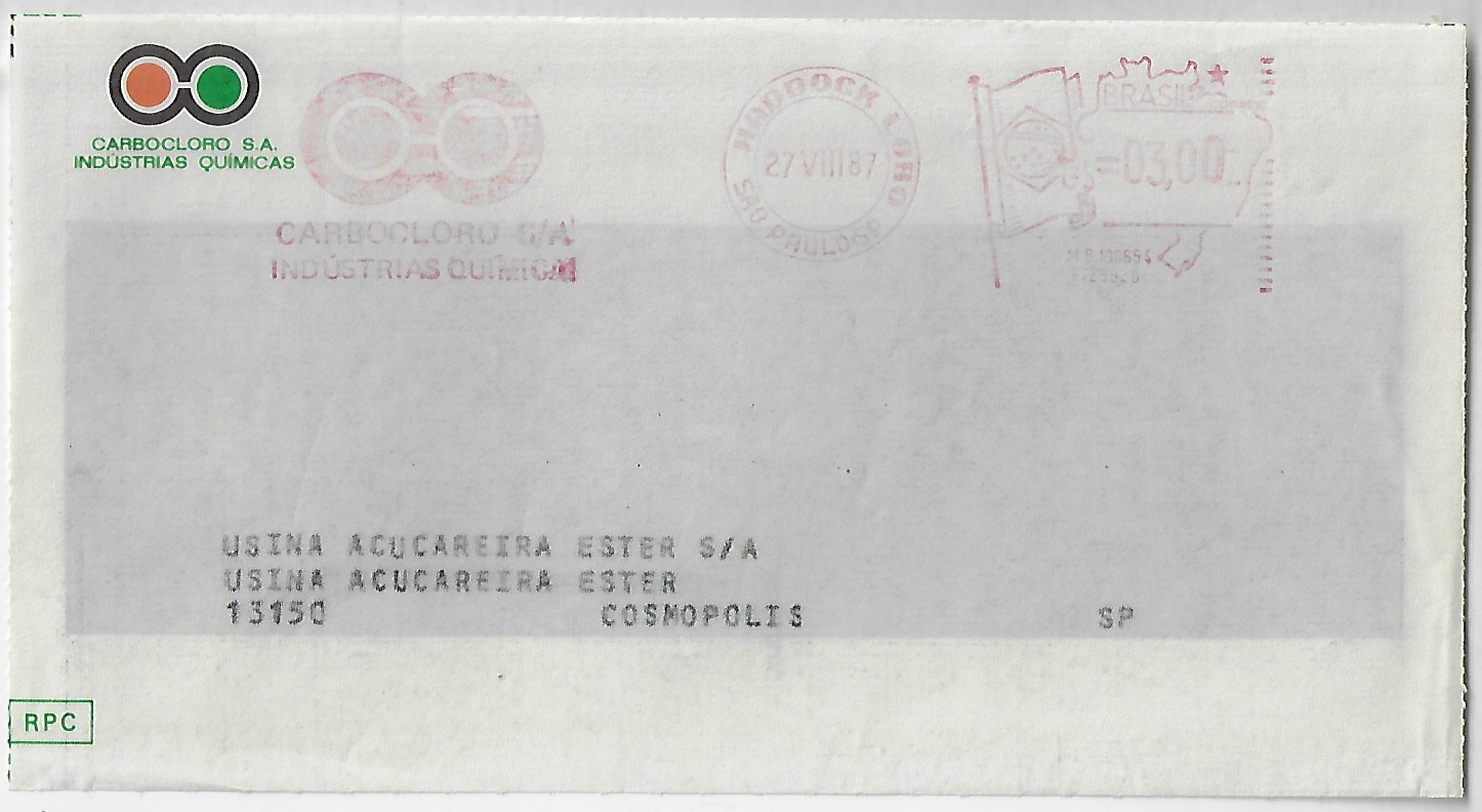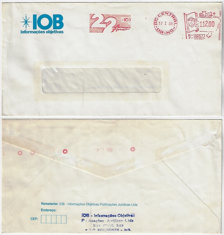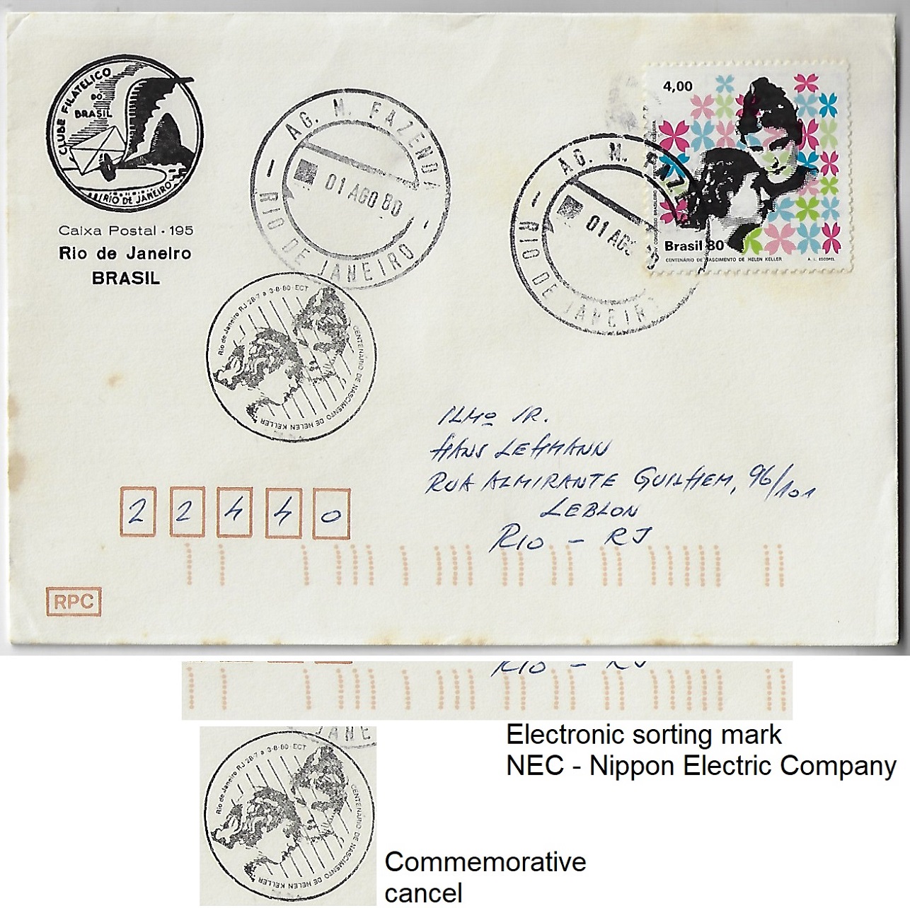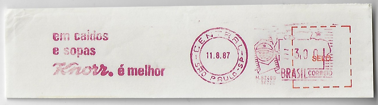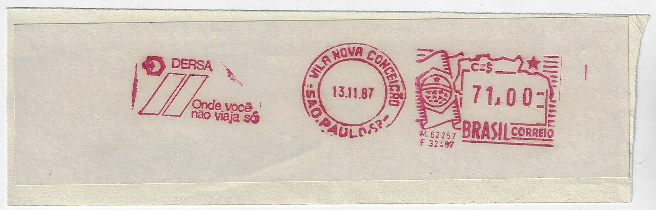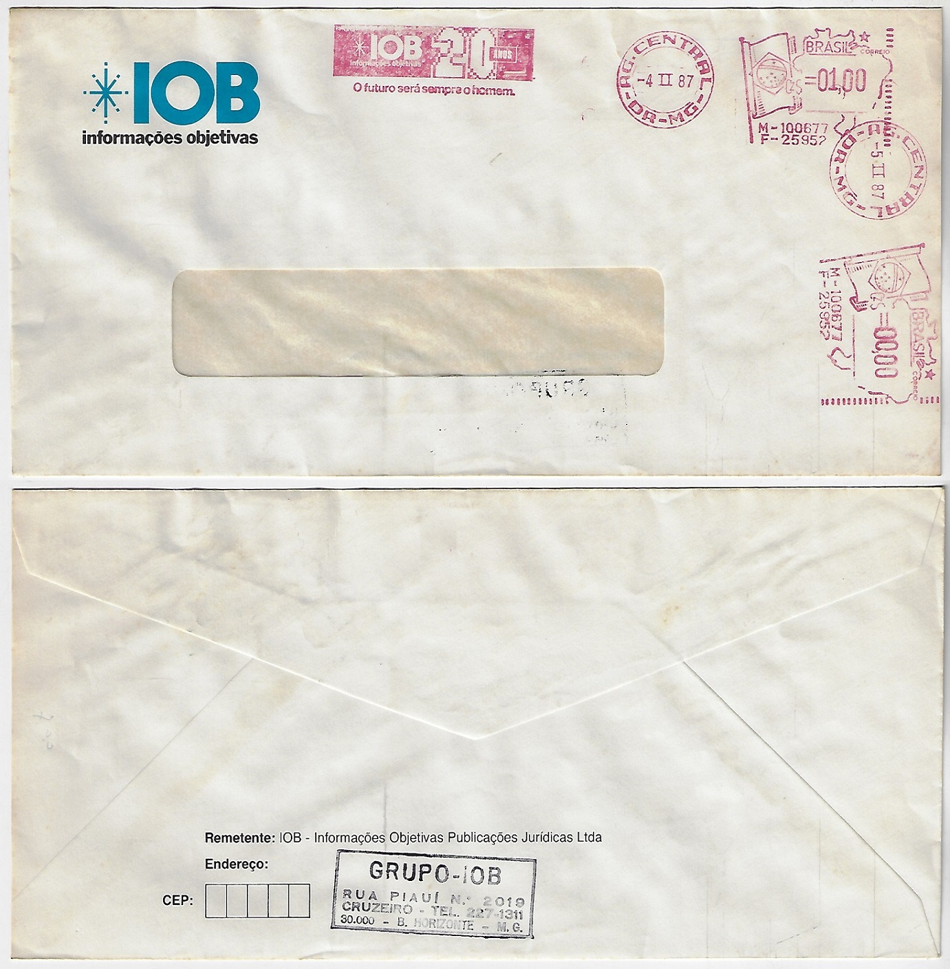 | 84782 | 2013, envelope janelado enviado de Itapevi, agência Nova Itapevi (16/2), porteado com selo Banco Postal, carimbo DH = Depois da Hora, marcas de triagem eletrônica do sistema NEC - Nippon Electric Company com postos de codificação ENSEC | 10,00 | Foto |