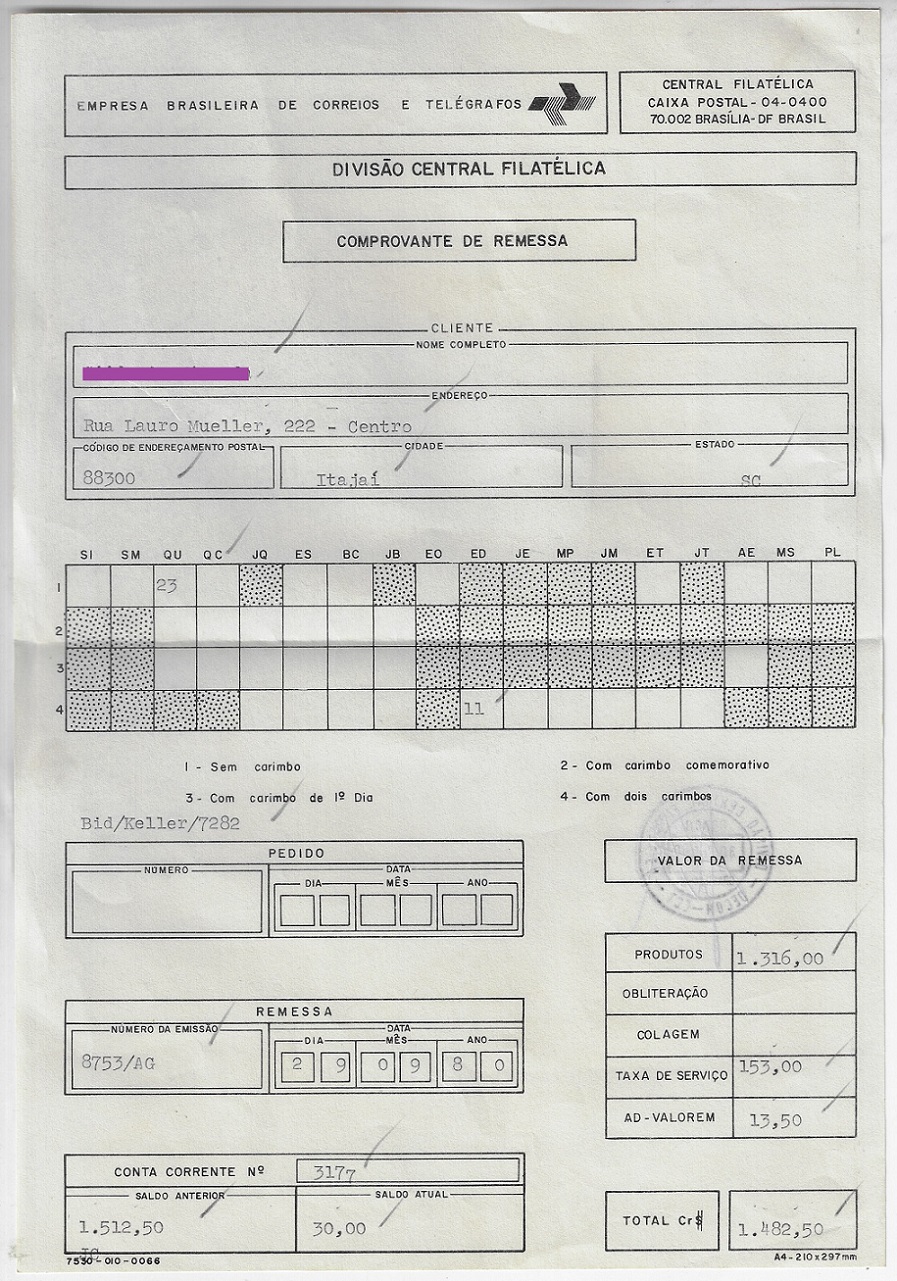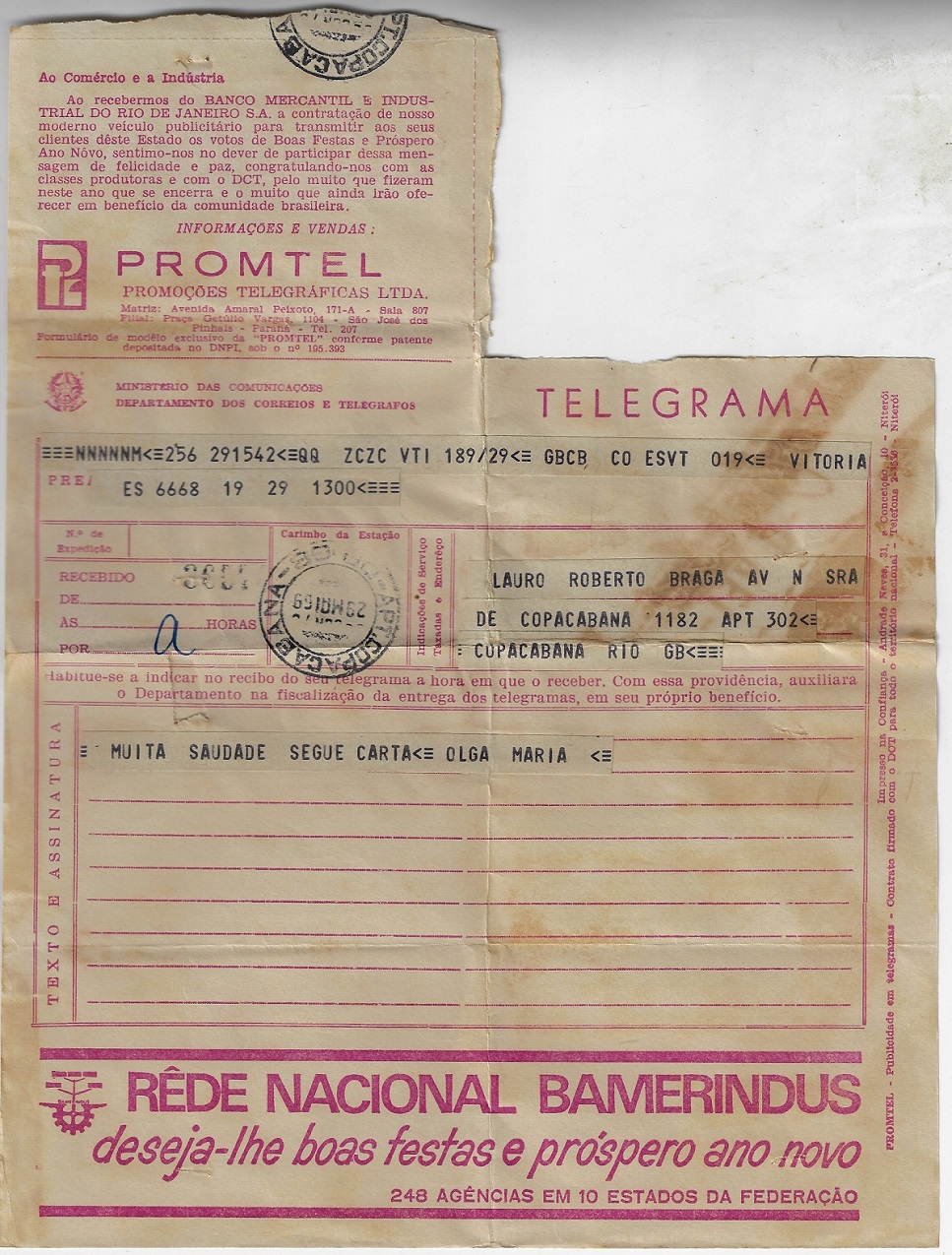 | 77252 | 2025, envelope postado como Remessa Expressa registrada, contrato com Banco do Brasil | 10,00 | Foto |