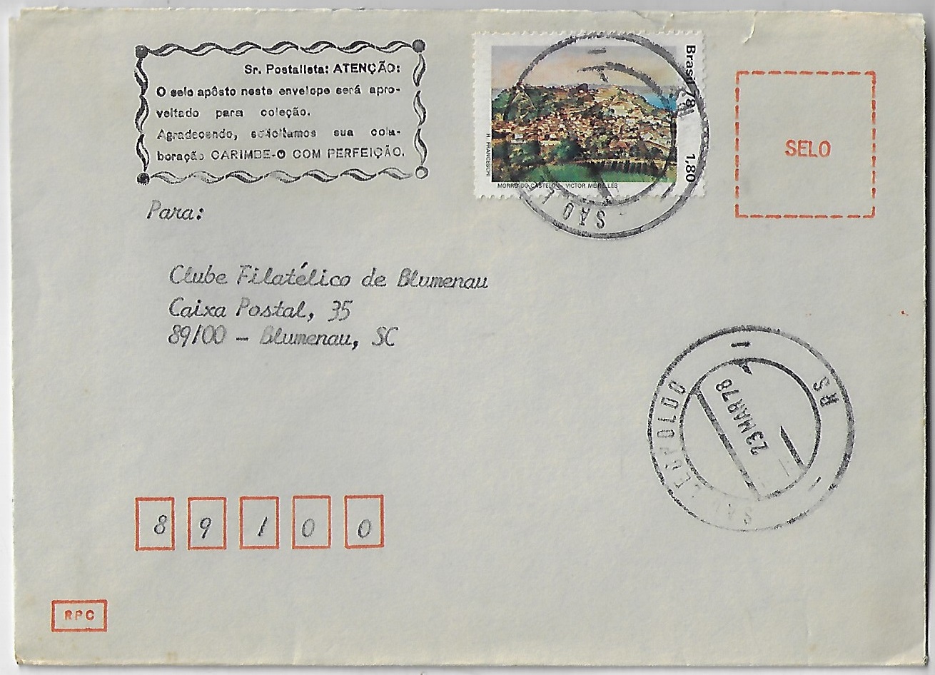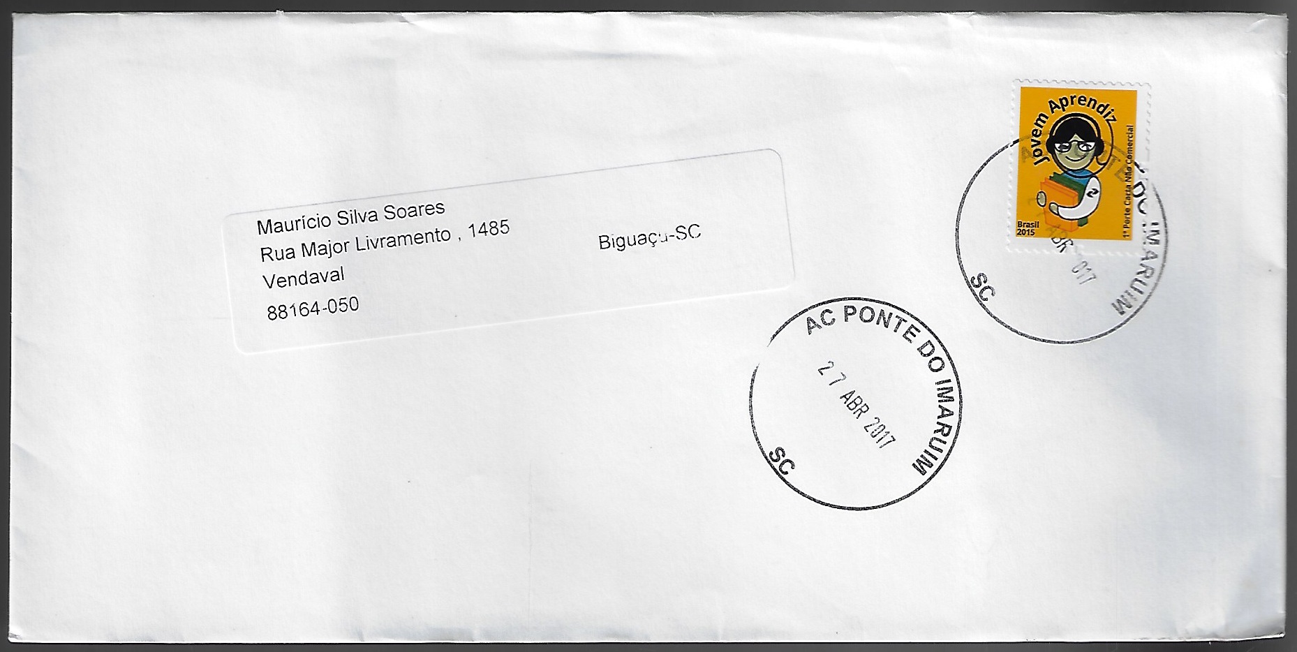 | 80021 | 2017, envelope de Chapecó (7/6) para Biguaçu, selo RHM-863, Jovem Aprendiz | 10,00 | Foto |