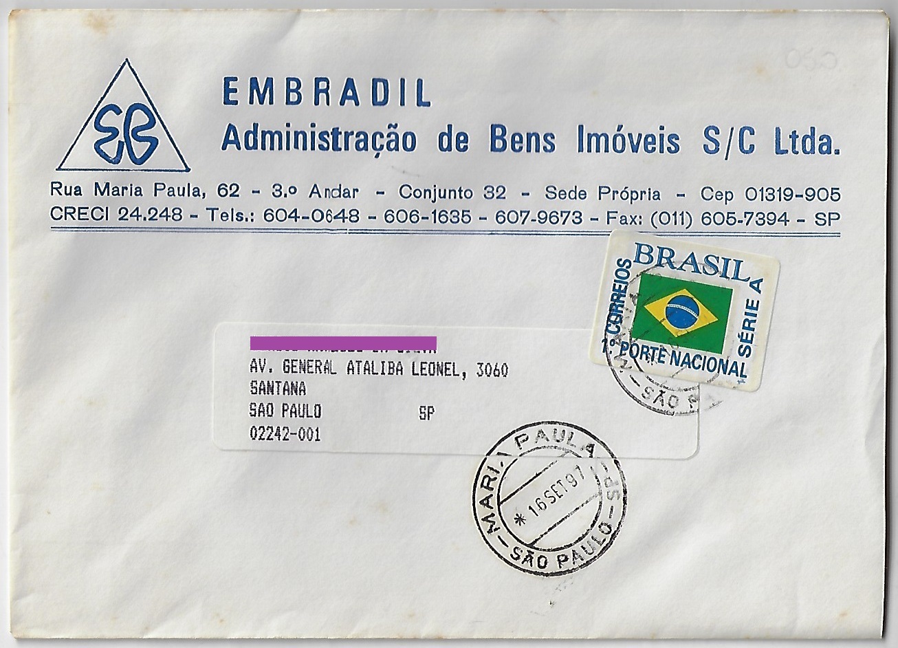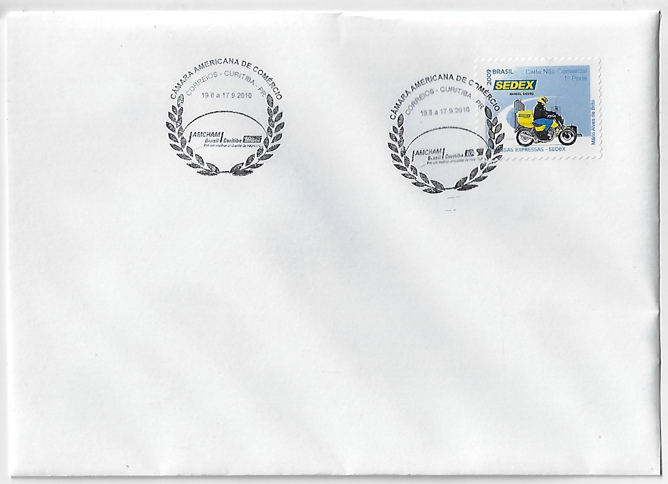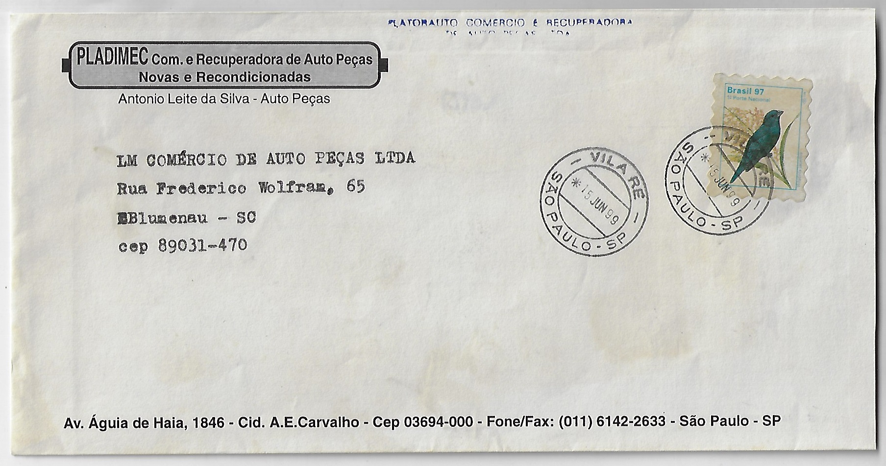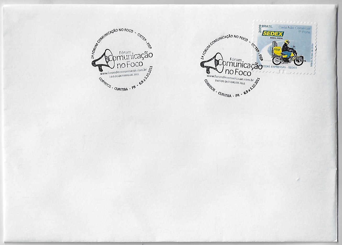 | 80355 | 2012, envelope enviado de São Paulo (10/9) para Blumenau, carimbo de ME - Mal Encaminhado para Joinville (18/9), 2 selos regulares | 10,00 | Foto |
