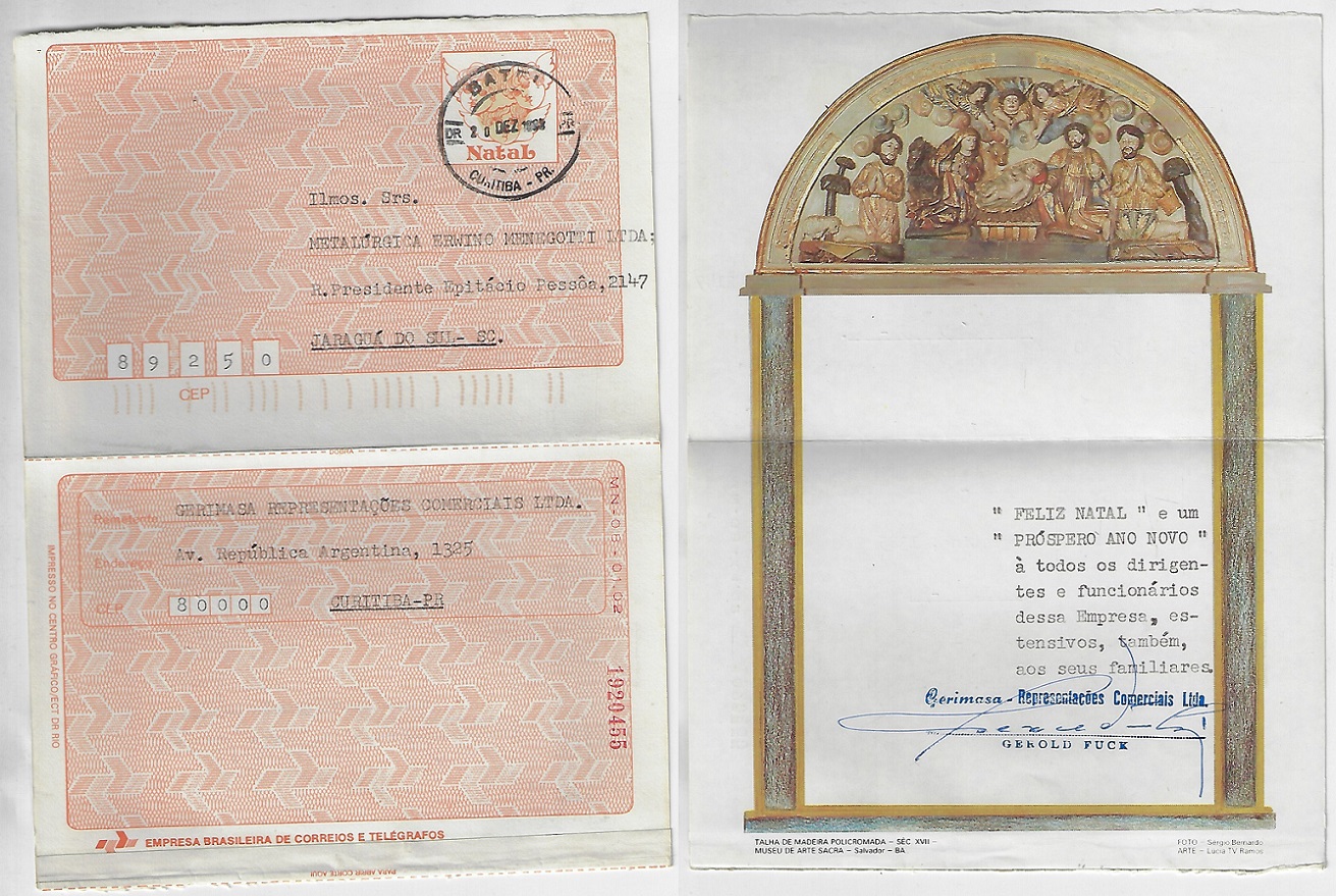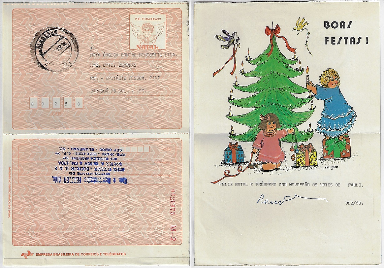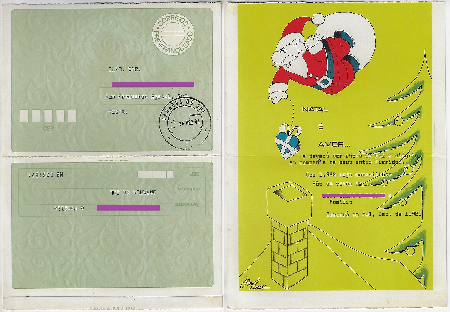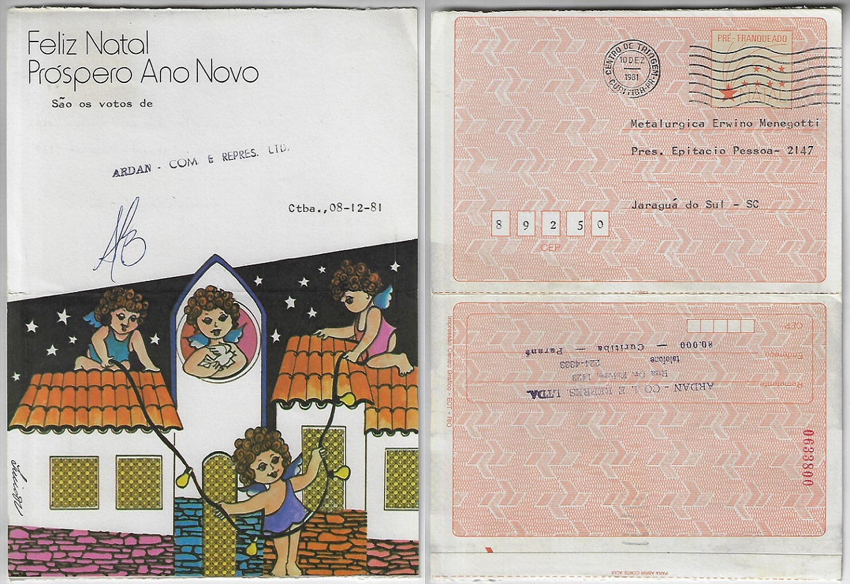 | 44447 | 2017, envelope de Natal, Agência Franqueada Centro Comercial Aluizio Bezerra Sul (26/6)para Florianópolis, porteado com franquia mecânica Mapa do Brasil, tipo H2.2. Pitney Bowes DM300/DM400 digital | 10,00 | Foto |